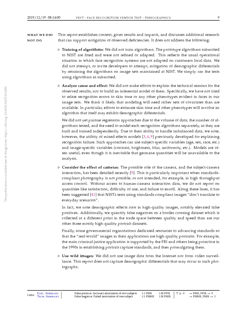 在对偏差的讨论中,报告并没有具体说明,但性能指标显示,任何一个在理论上都可能存在人口差异。一个阶段的错误通常会产生下游后果。