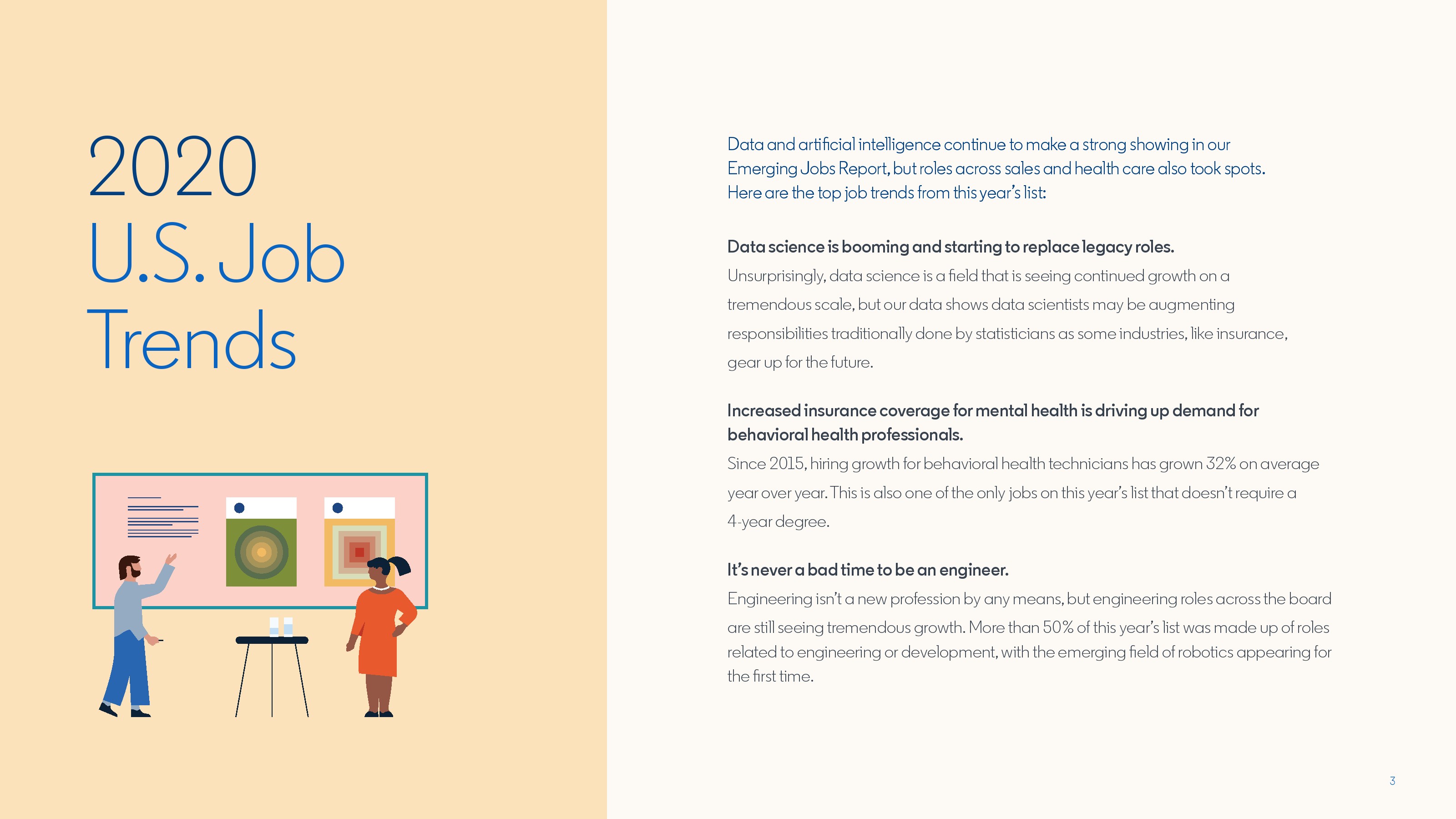 领英发布了“2020年新兴工作报告”。数据和人工智能继续表现强劲,但销售和医疗保健行业也占据了一席之地。