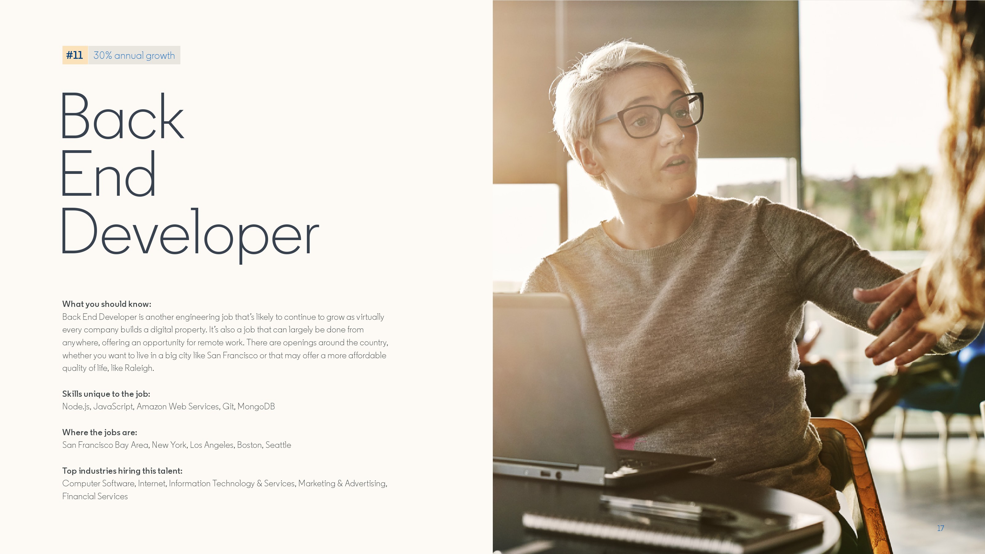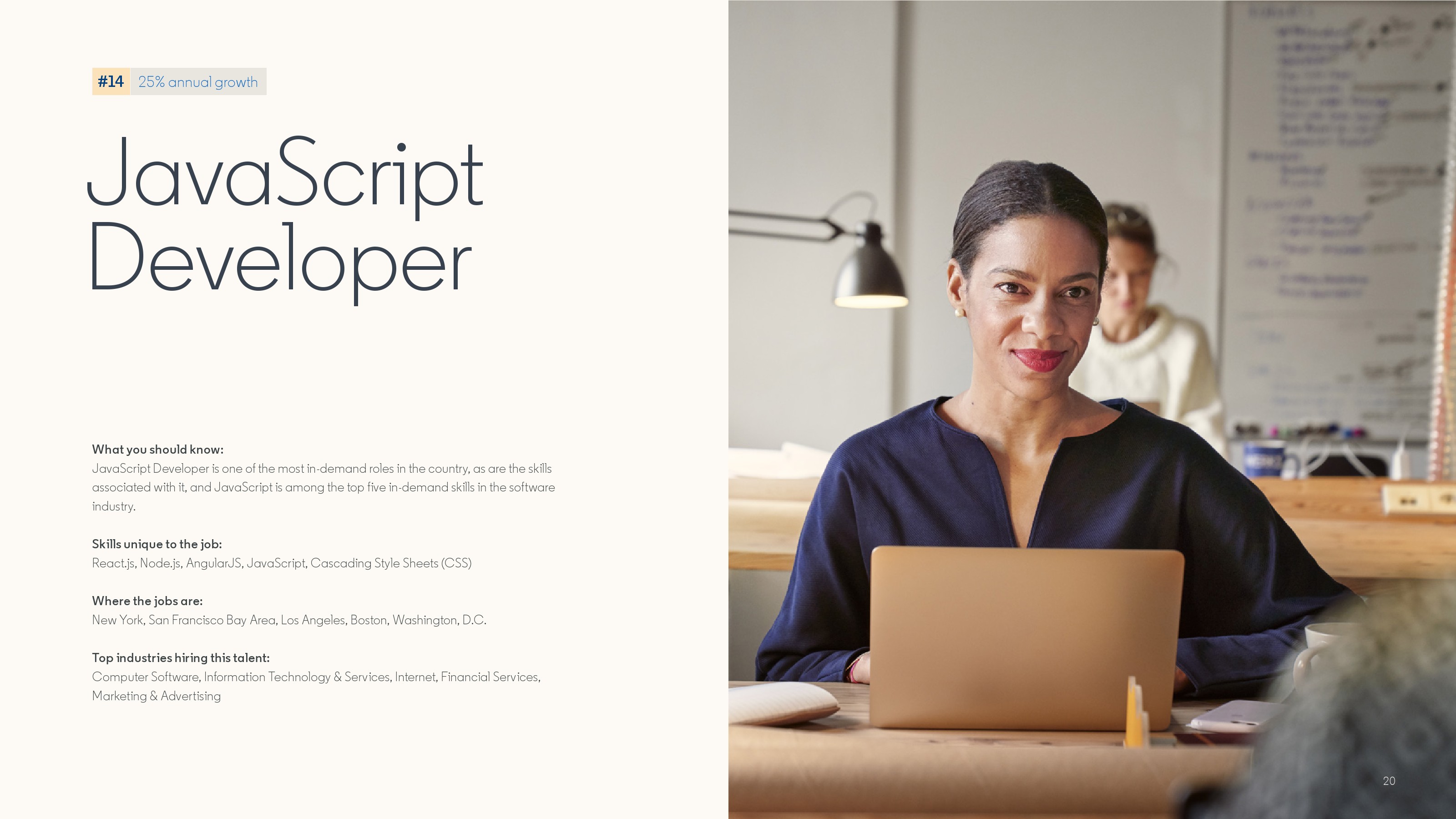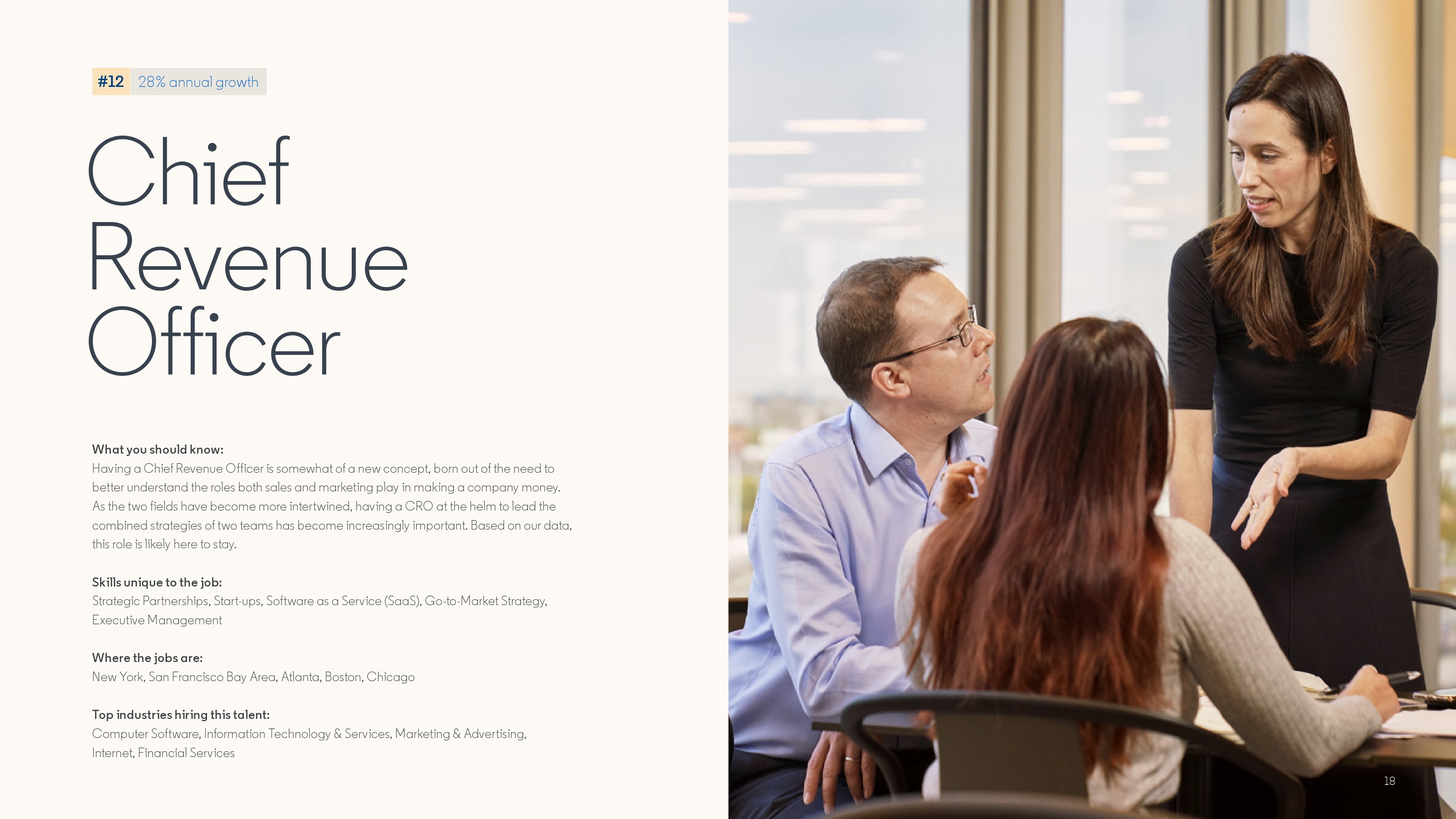 科技行业:产品负责人、客户成功专家和销售开发代表在技术行业内需求很高。像软件即服务(SaaS)这样价值2780亿美元的行业的未来将依赖于成功补充新人才的技能。