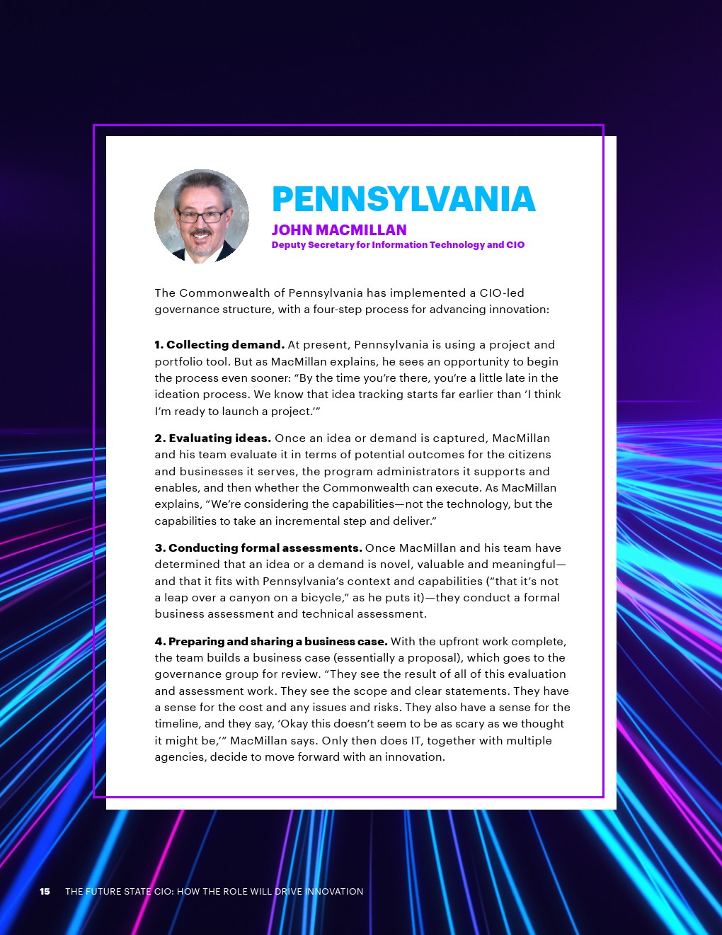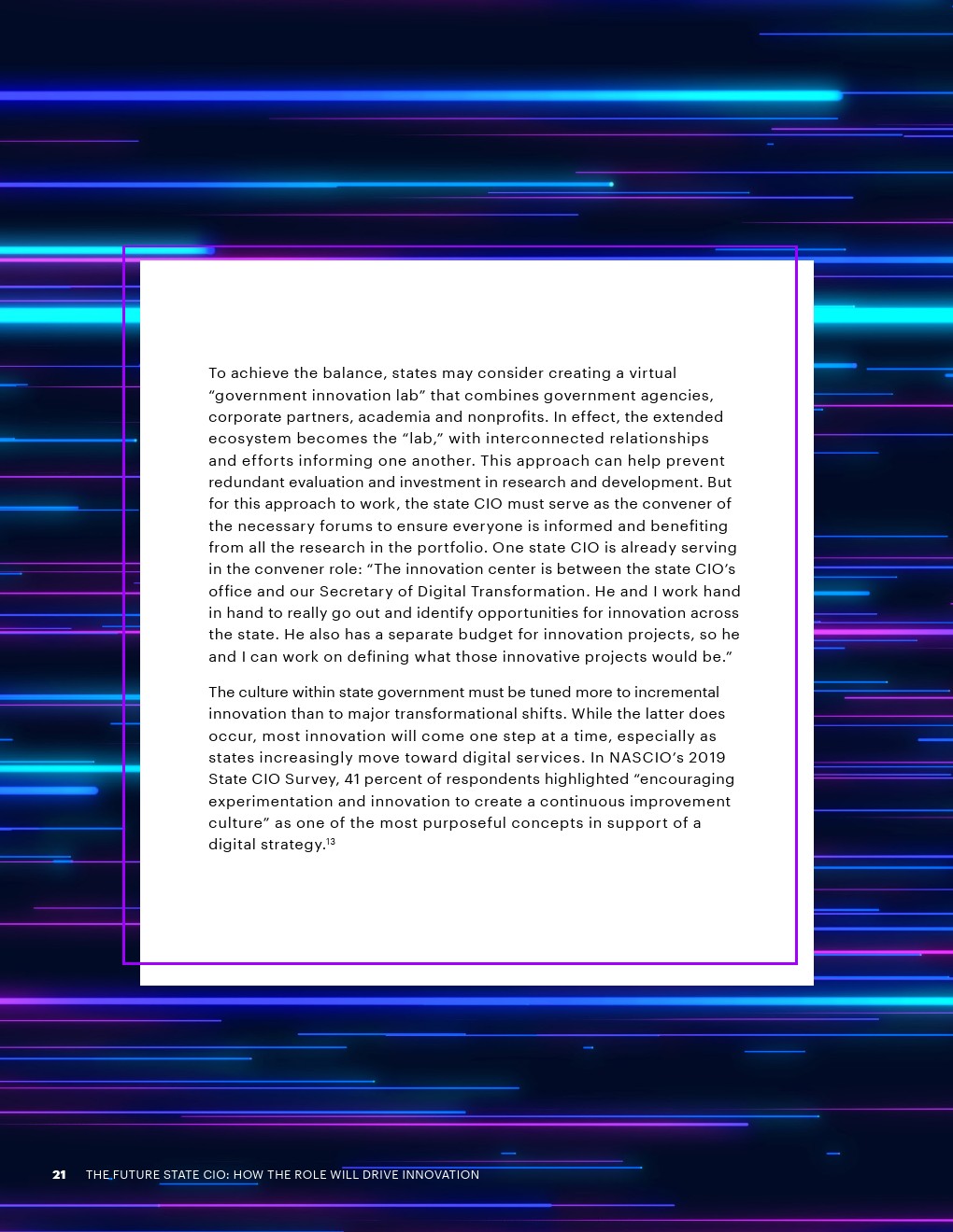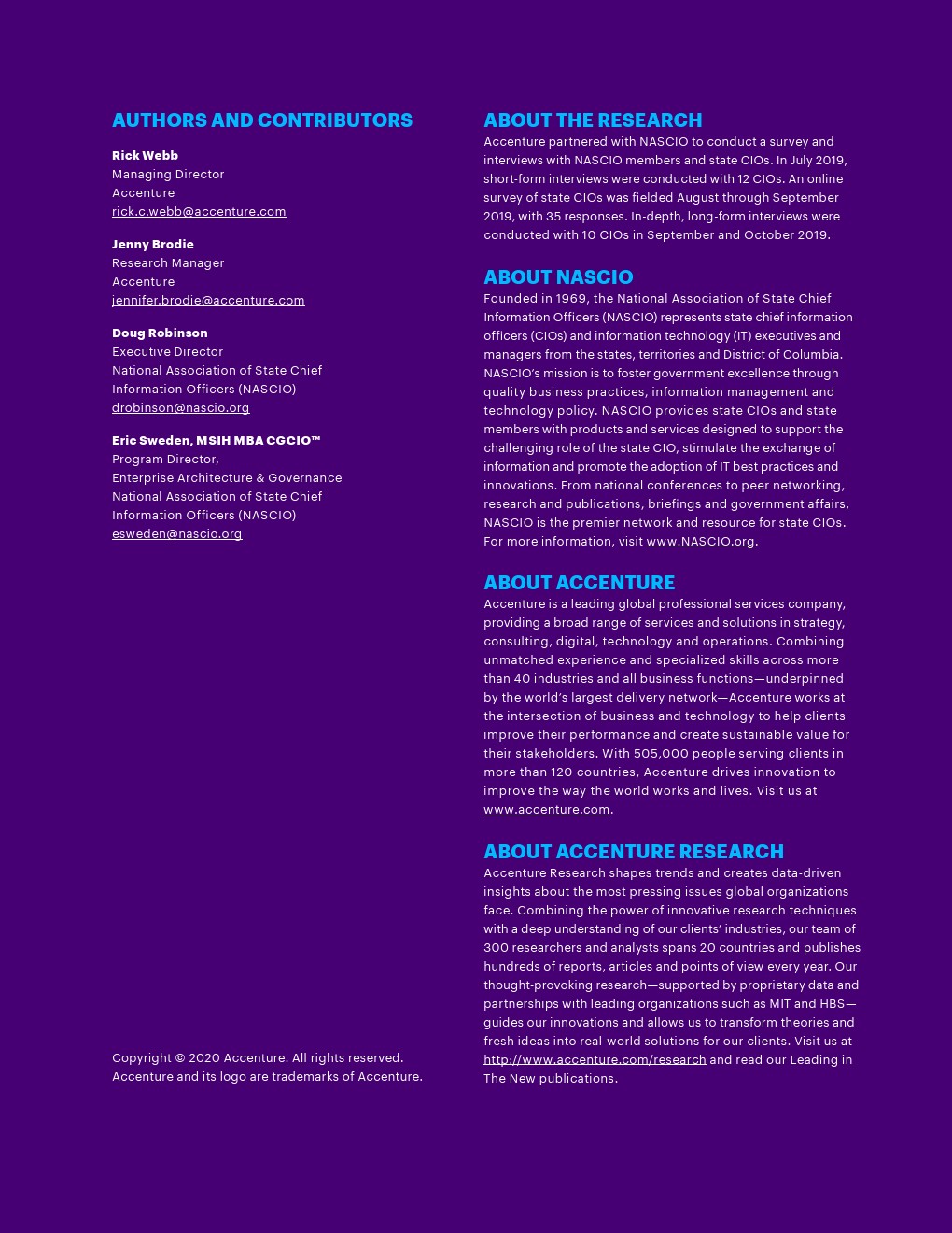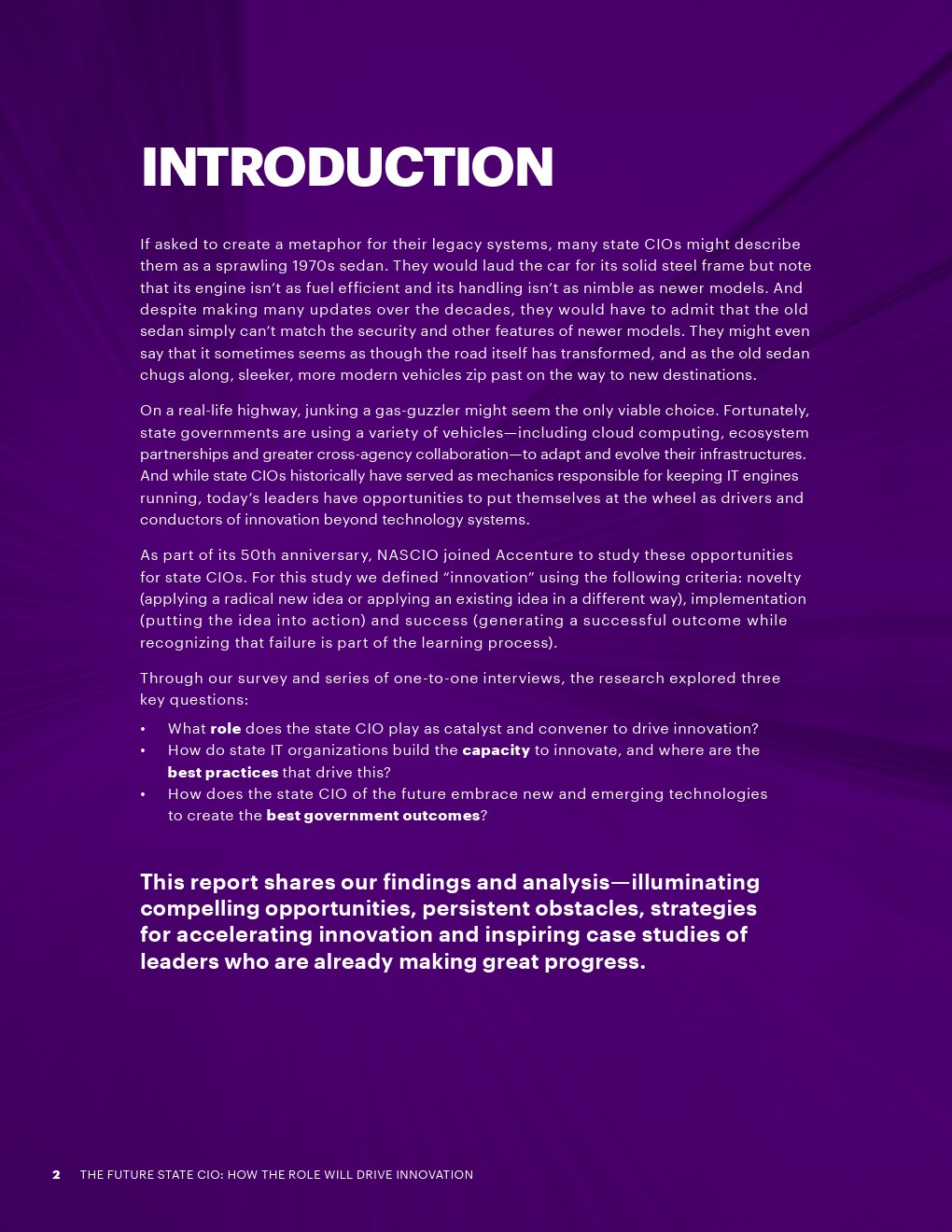 埃森哲(Accenture)和全国州首席信息官协会(NASCIO)发布了新报告“国家首席信息官的未来”,强调了可以推动创新实践的方法和成功因素。