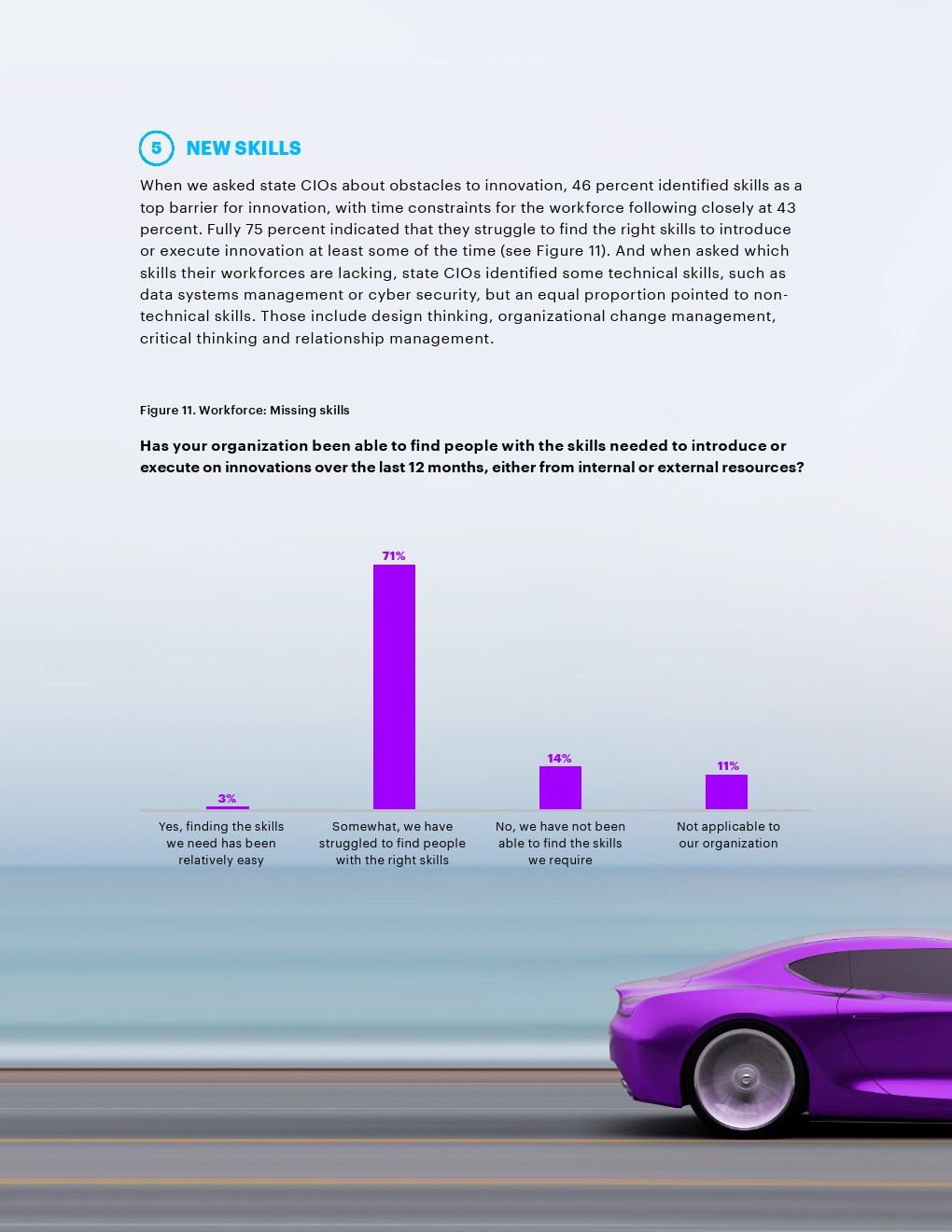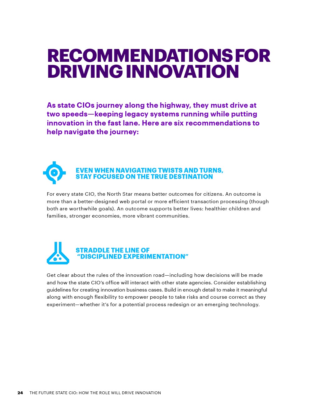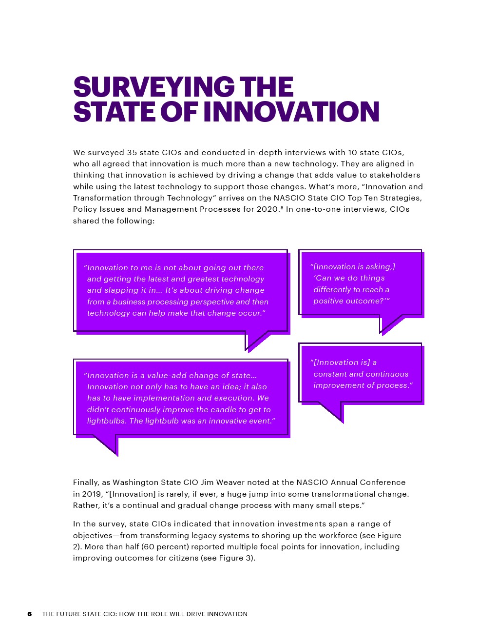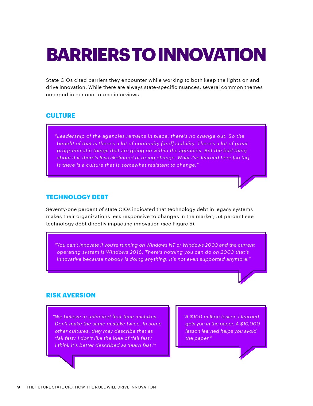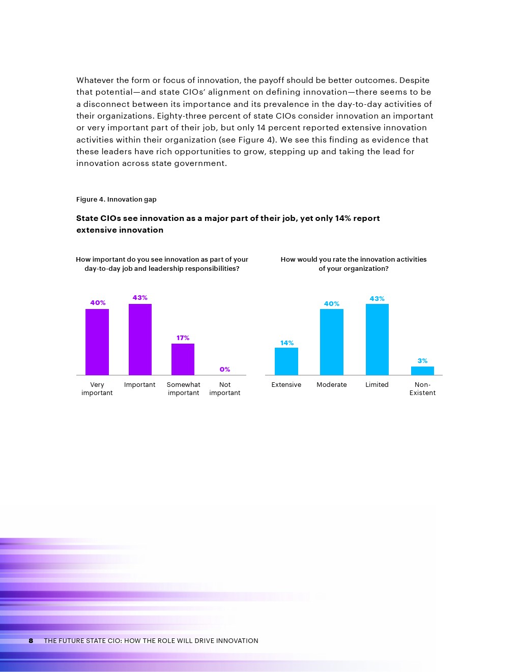 对各州首席信息官的调查集中于确定当前的做法及其对创新的障碍。最值得注意的是: