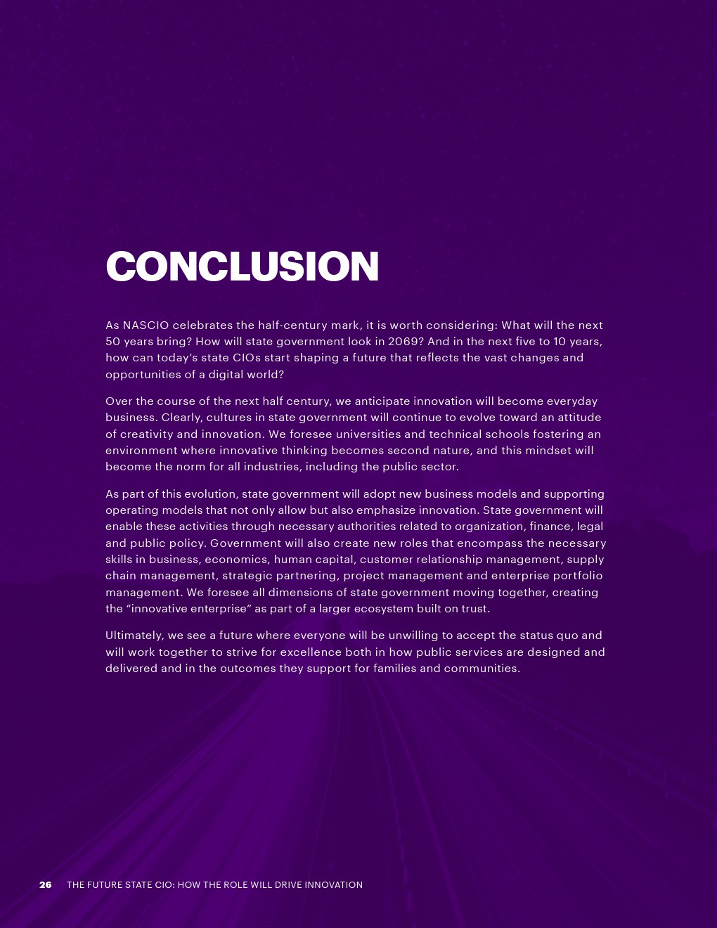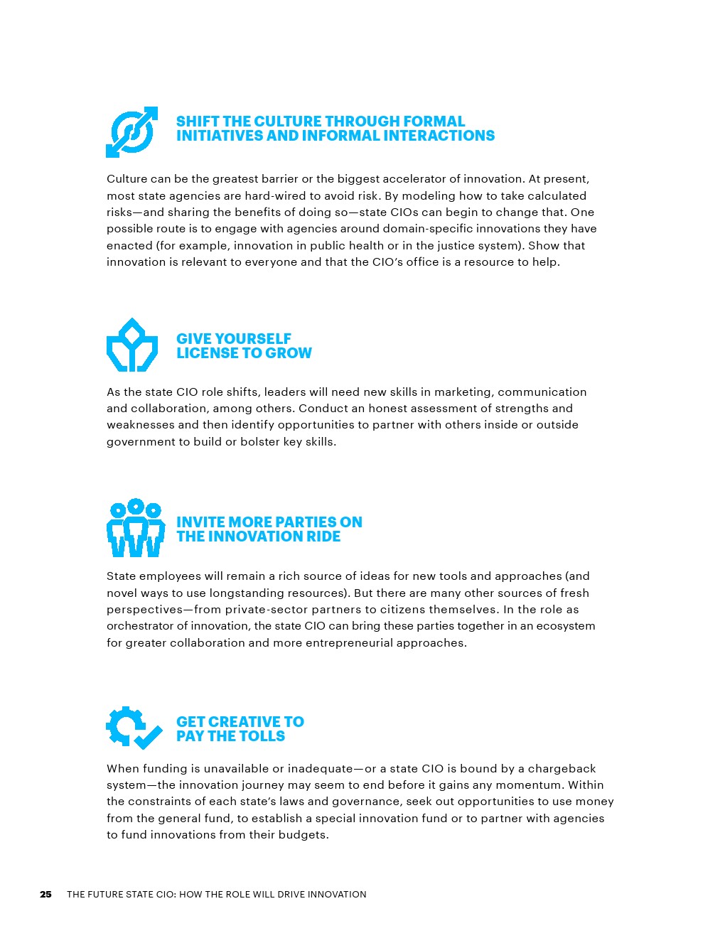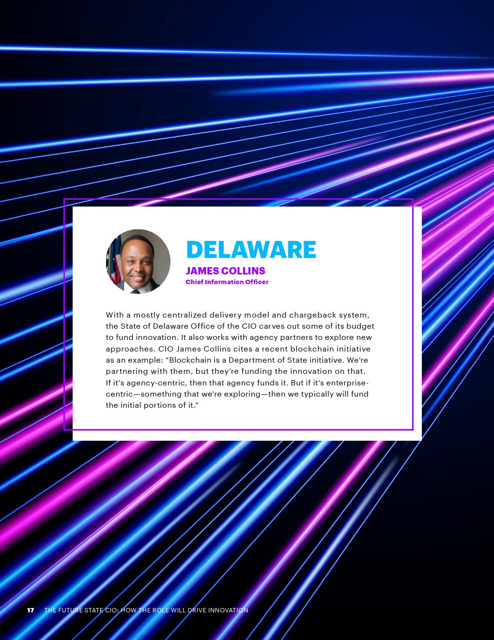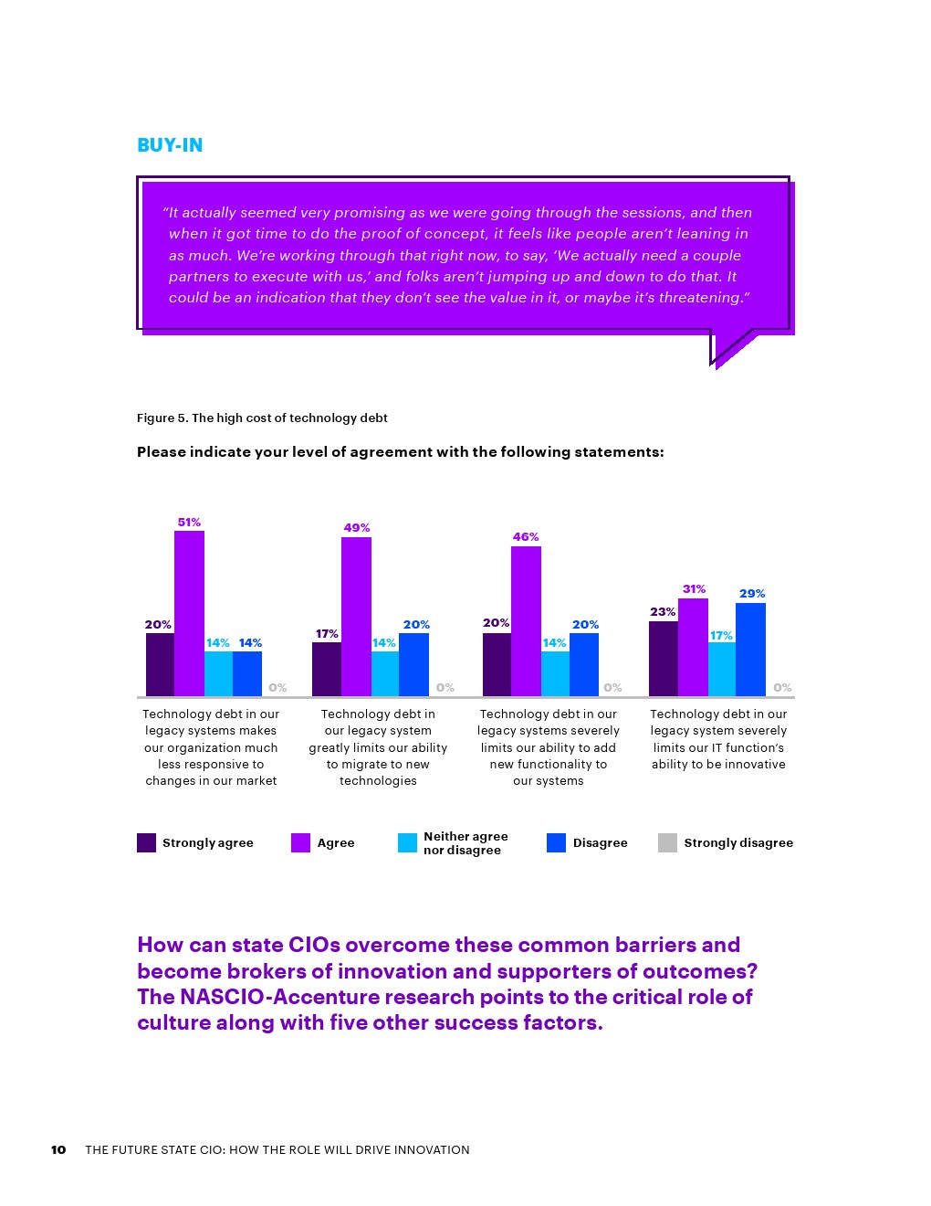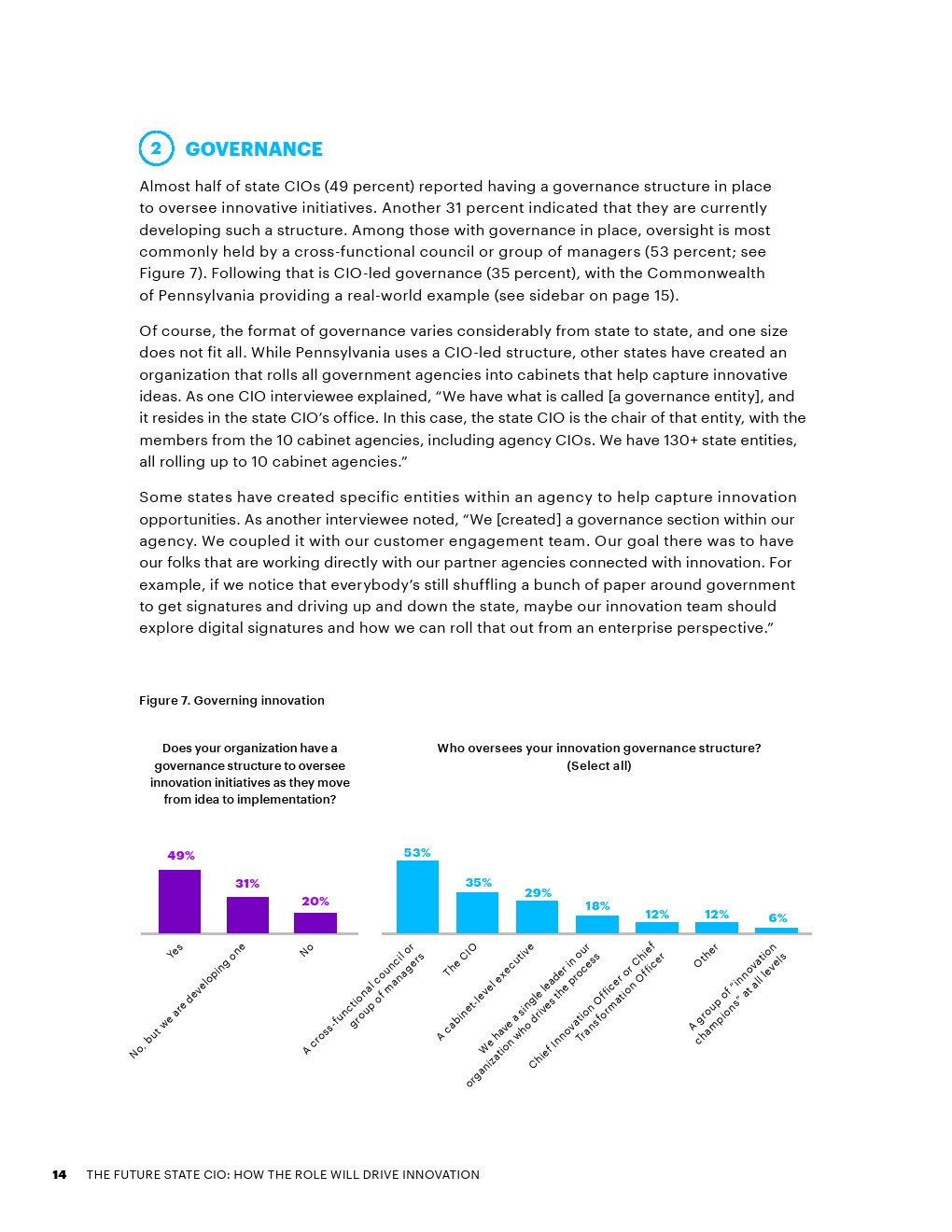 对各州首席信息官的调查集中于确定当前的做法及其对创新的障碍。最值得注意的是: