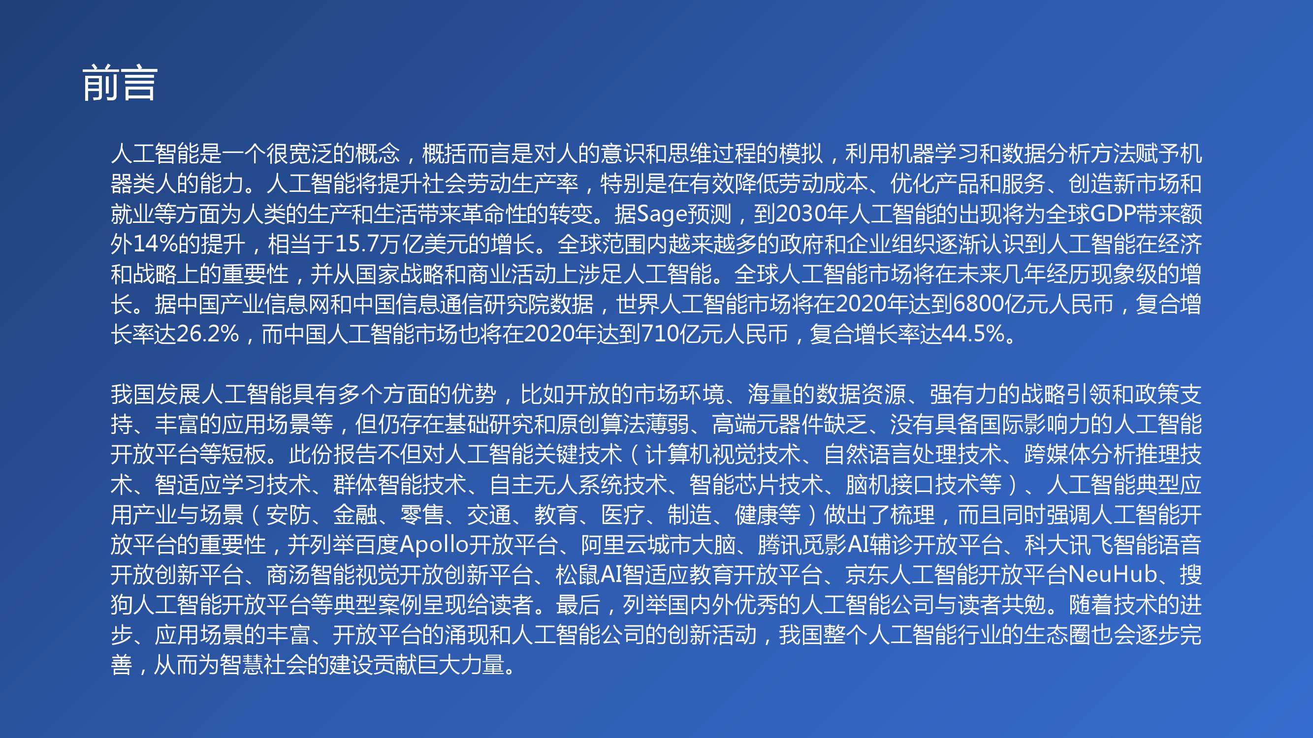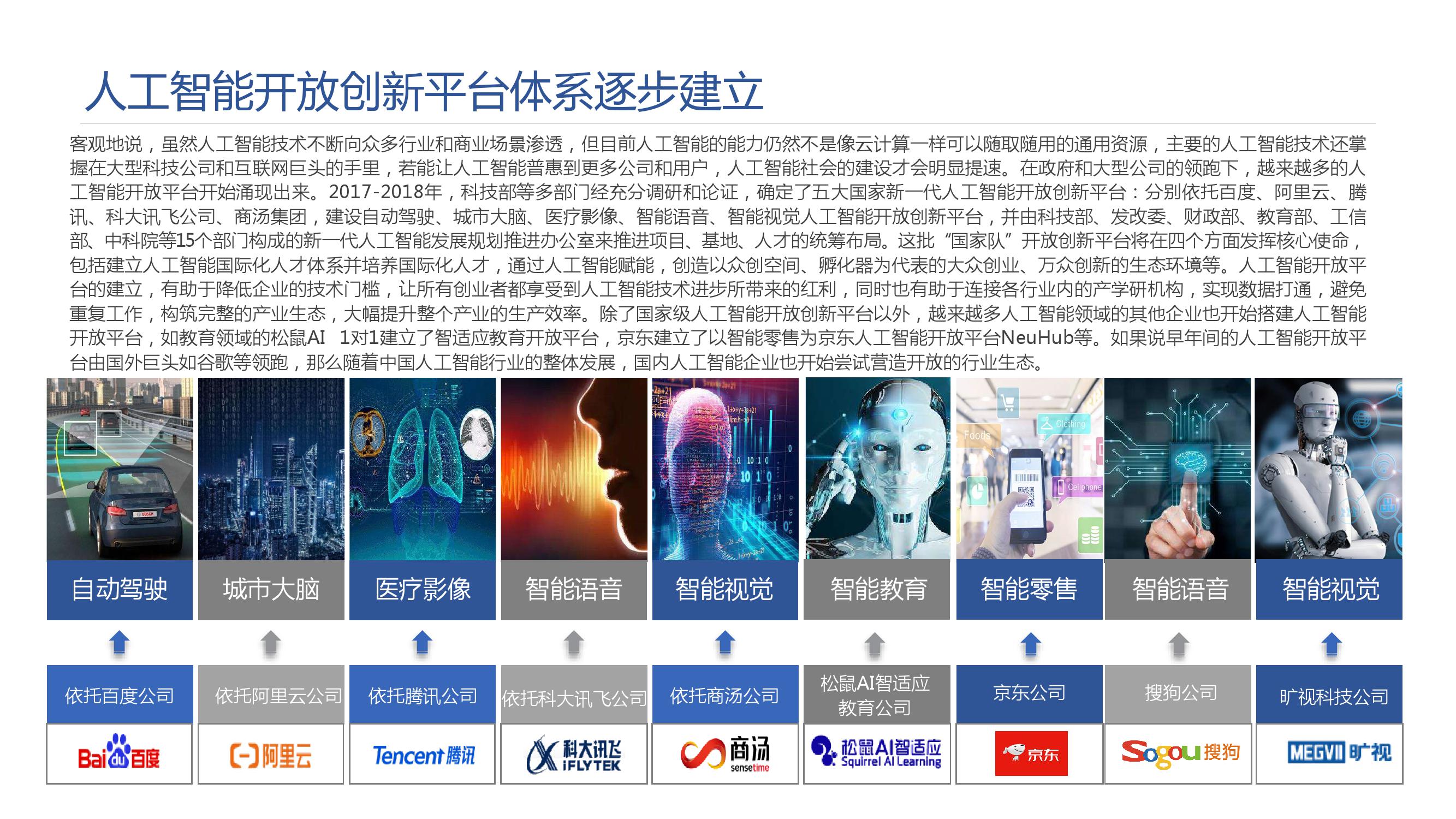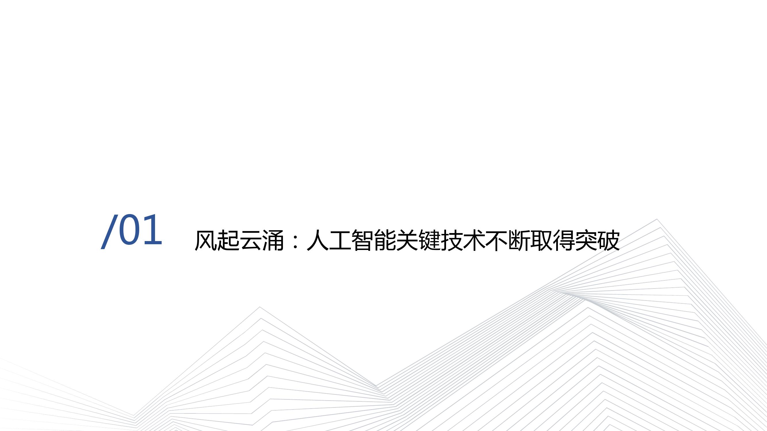 人工智能正在全球范围内引领新一轮科技革命和产业变革升级。自2006年深度学习算法被提出、2012年开始大数据爆发式增长以来,人工智能领域的各项技术分支也在不断发展,人工智能相关的产业化落地方案和商业化模式逐渐清晰,人工智能的细分领域技术分支的代表性企业及其竞争格局也逐渐形成。此白皮书内相关数据根据调研数据分析而成,不做商业评判,仅做学术探讨和参考。