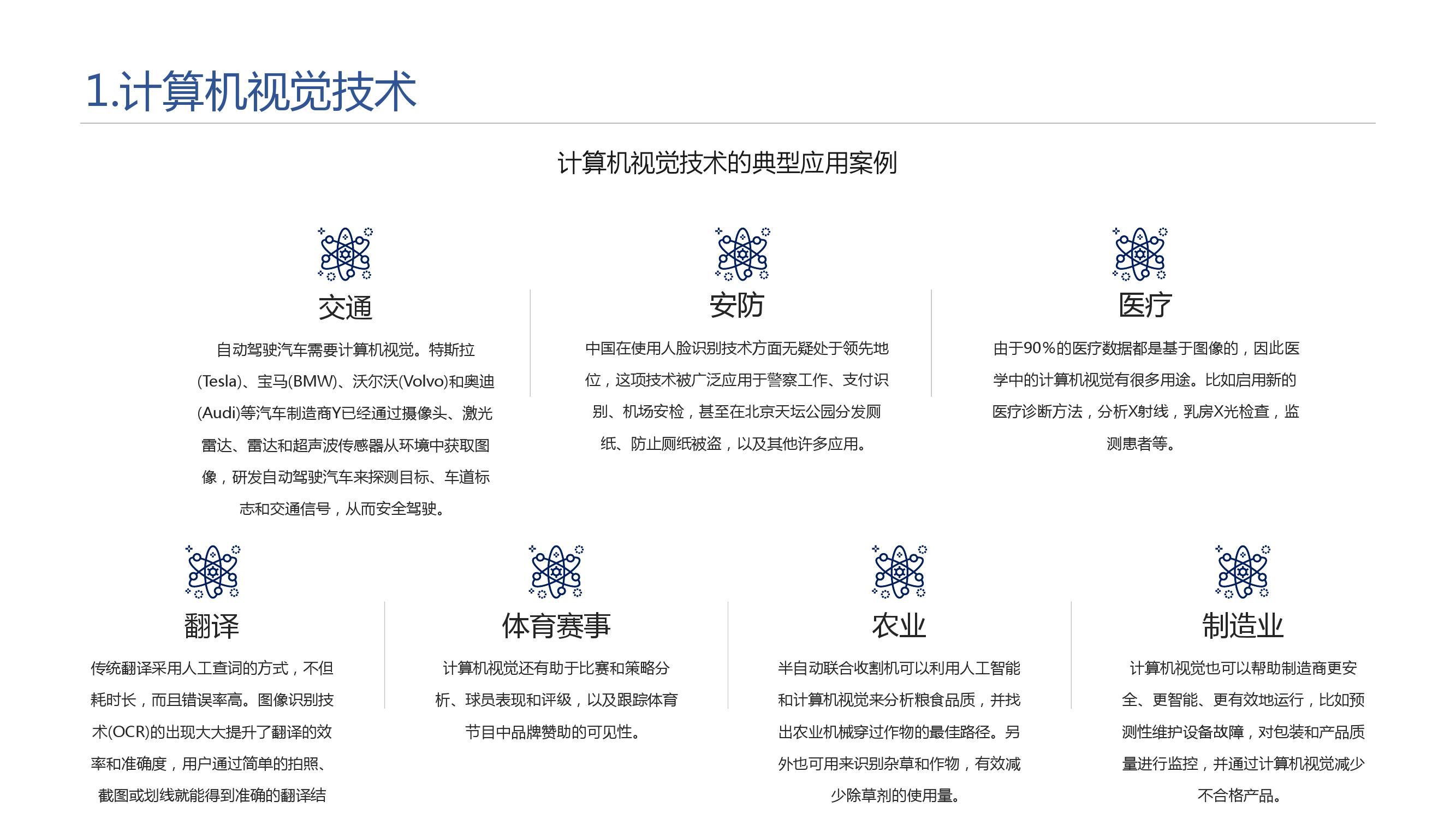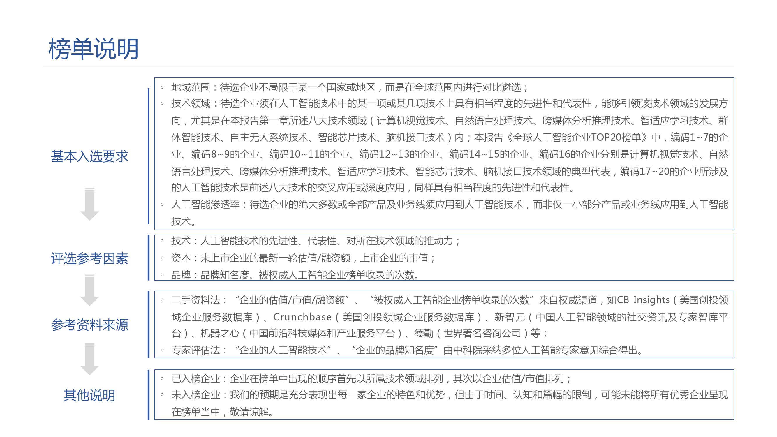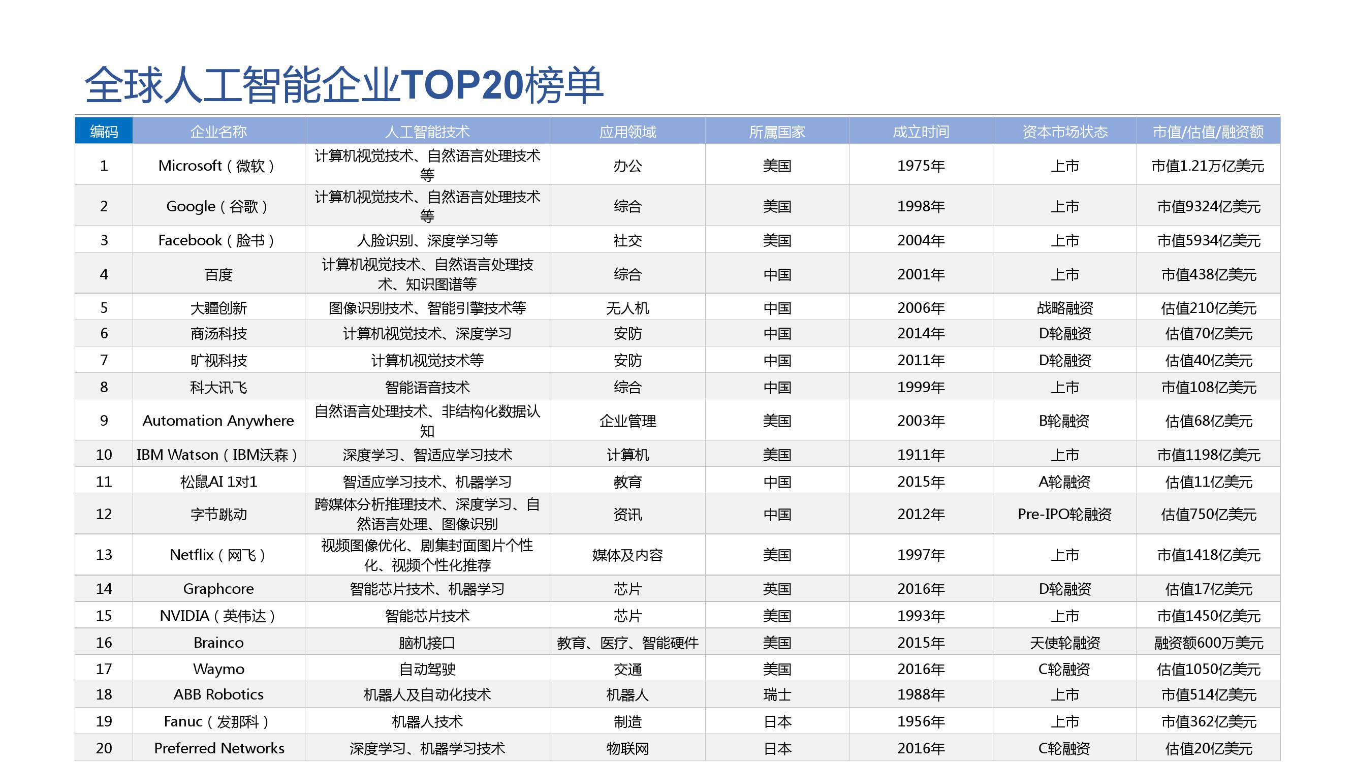 人工智能正在全球范围内引领新一轮科技革命和产业变革升级。自2006年深度学习算法被提出、2012年开始大数据爆发式增长以来,人工智能领域的各项技术分支也在不断发展,人工智能相关的产业化落地方案和商业化模式逐渐清晰,人工智能的细分领域技术分支的代表性企业及其竞争格局也逐渐形成。此白皮书内相关数据根据调研数据分析而成,不做商业评判,仅做学术探讨和参考。