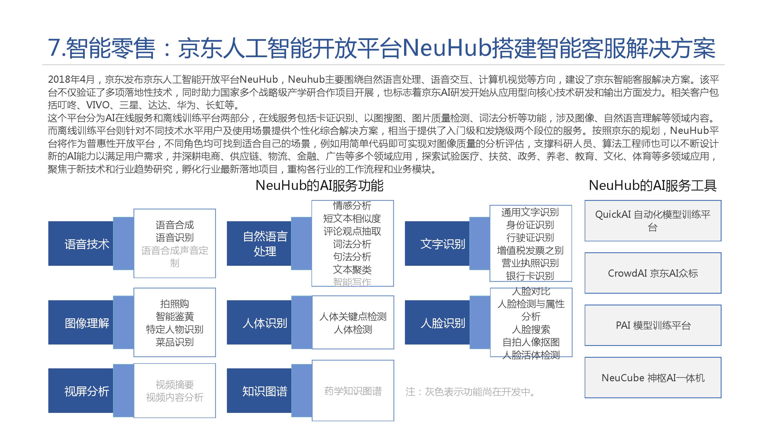 中国科学院大数据挖掘与知识管理重点实验室发布了《2019年人工智能发展白皮书》,白皮书重点分析了人工智能各个细分领域的关键技术和产业应用,白皮书指出计算机视觉技术、自然语言处理技术、跨媒体分析推理技术、智适应学习技术等八大技术是目前人工智能领域的关键技术,安防、金融、零售、交通、教育等产业中蕴含着人工智能的典型应用场景,肯定了人工智能开放创新平台对于全行业的重要推动价值,并推出全球人工智能企业TOP20榜单。