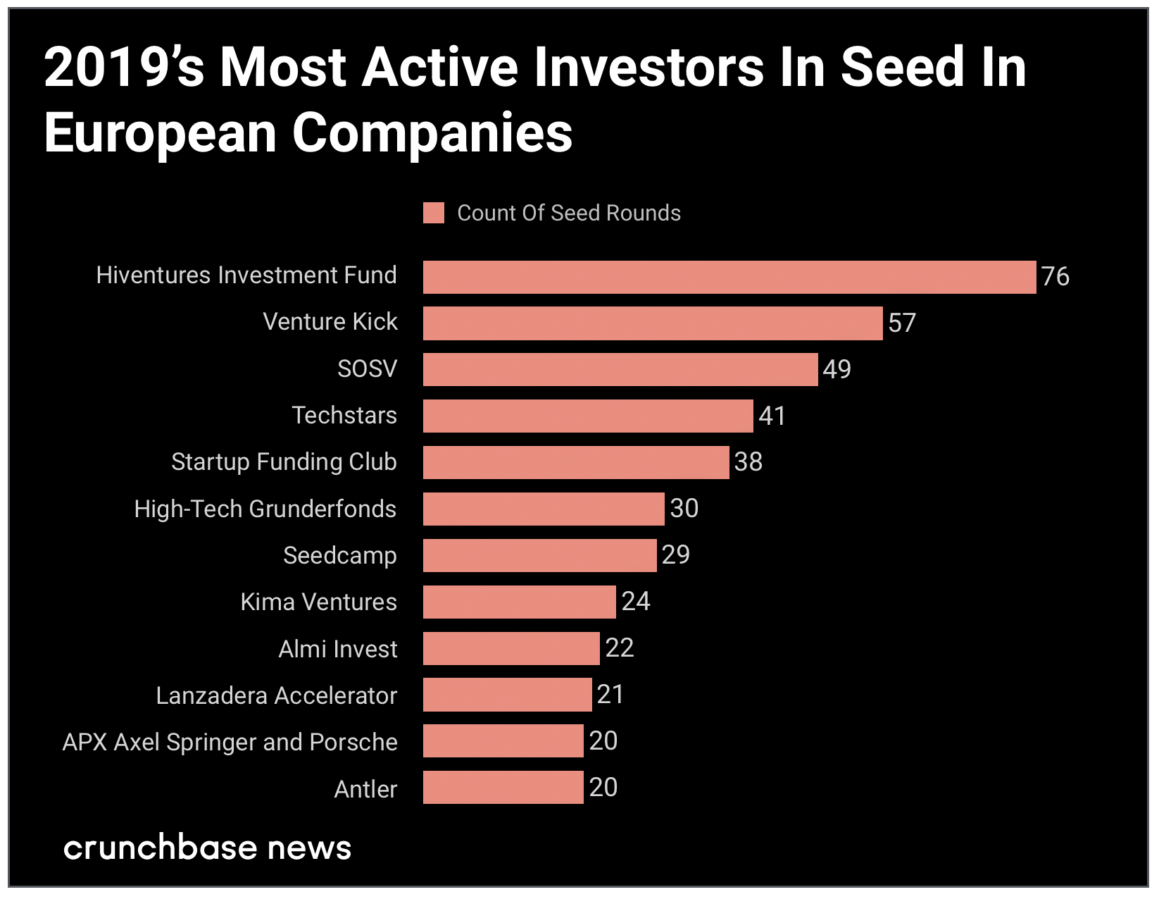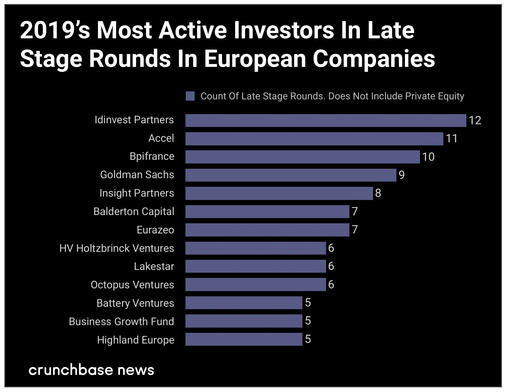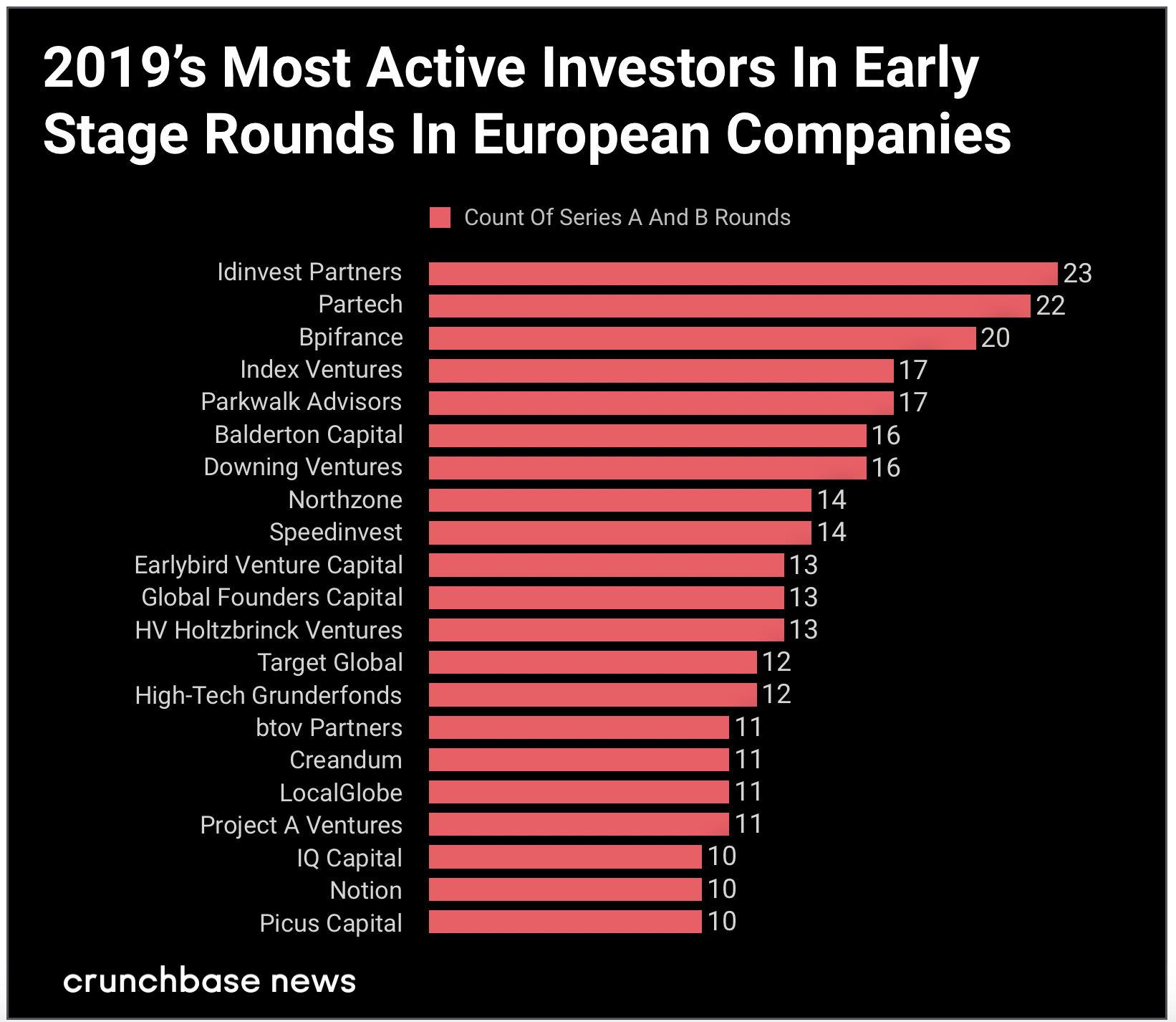 下图(种子、早期和后期风险投资)显示了最活跃的投资者。