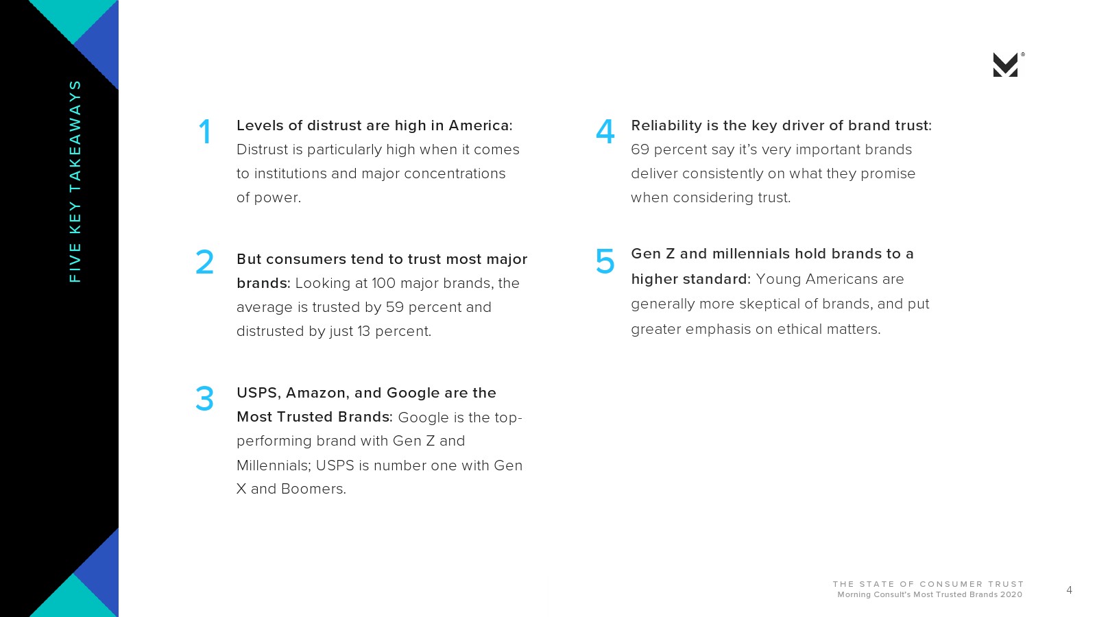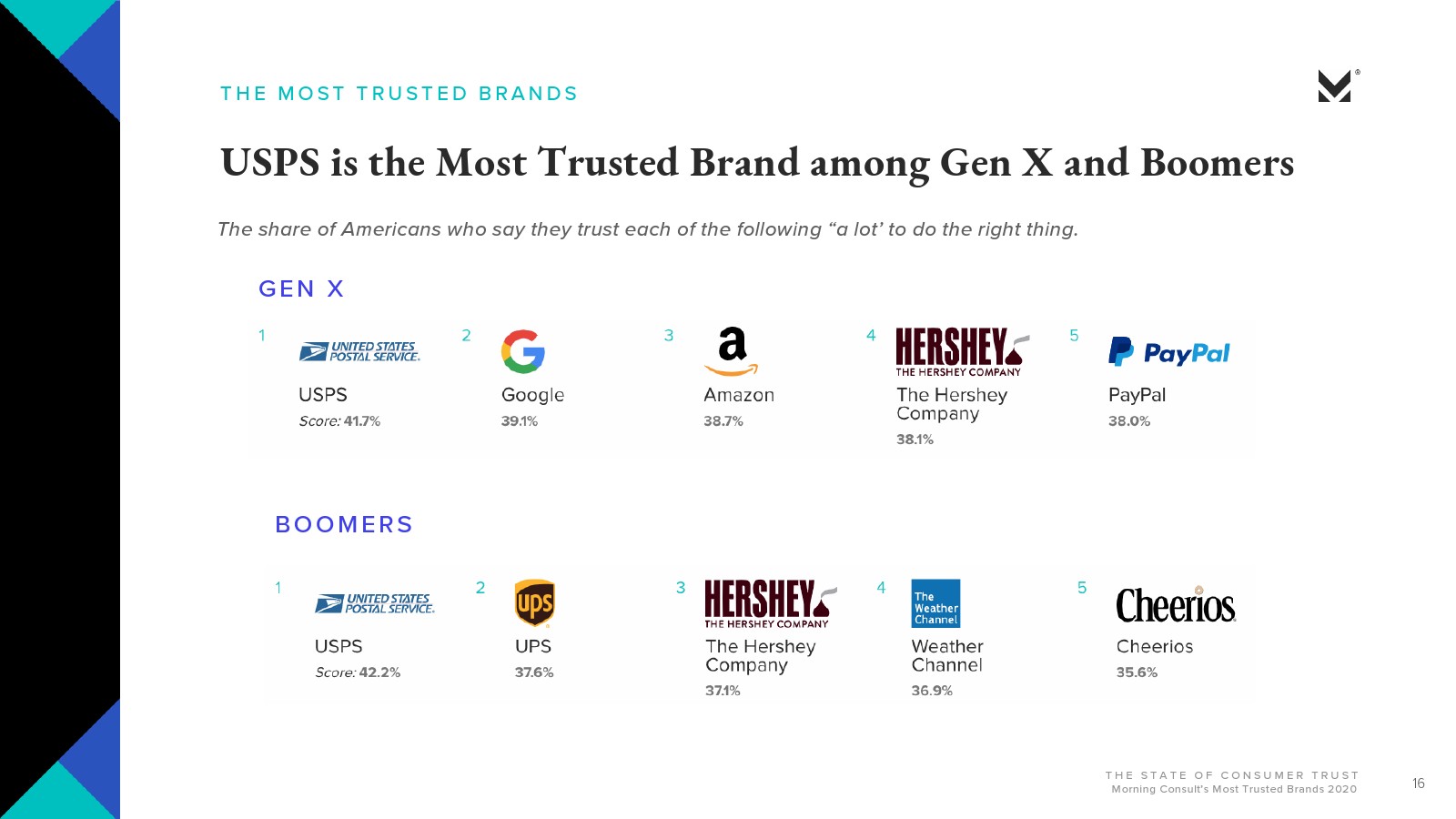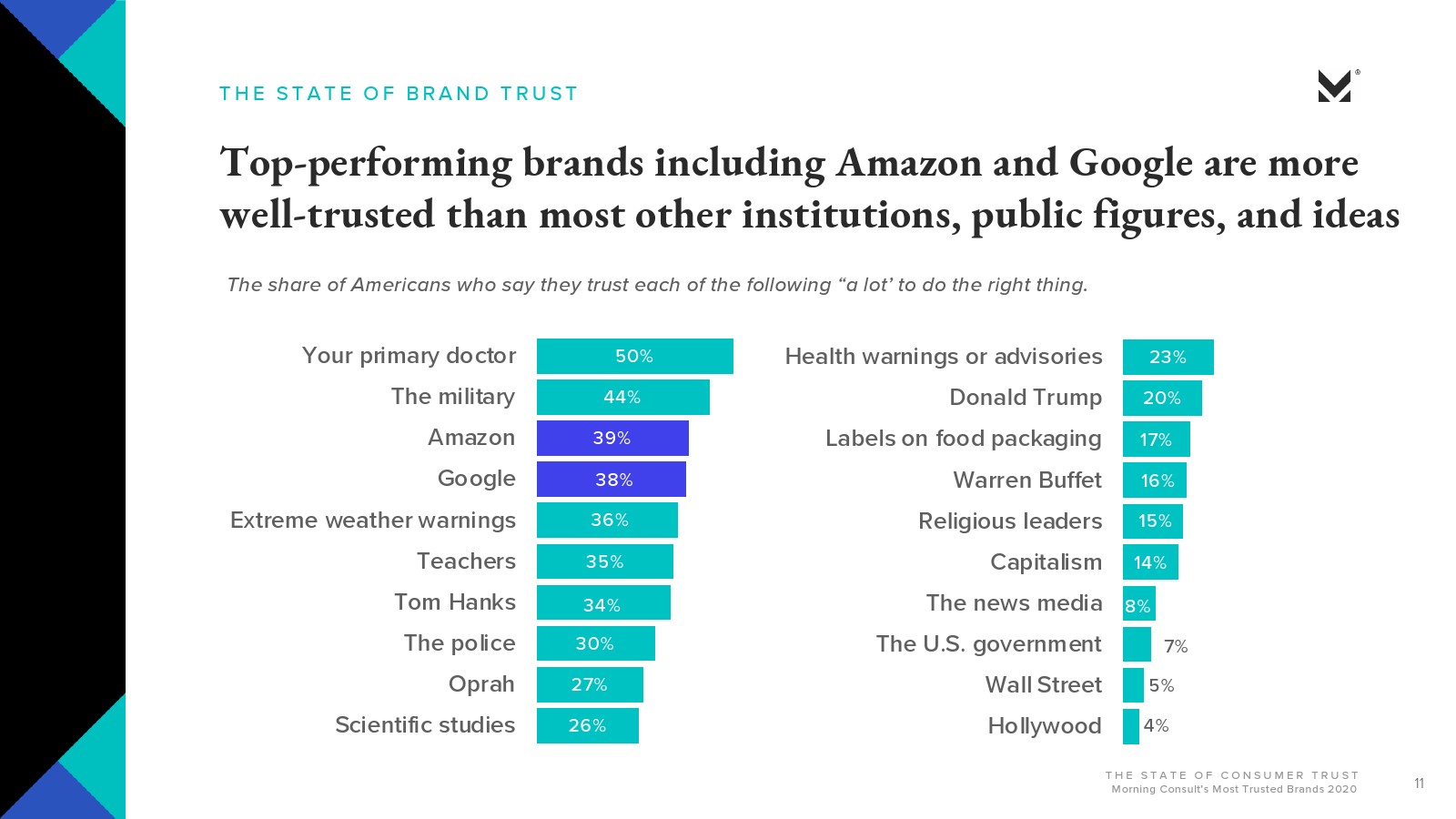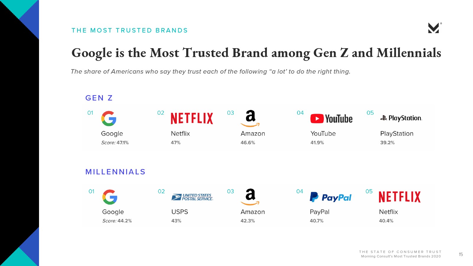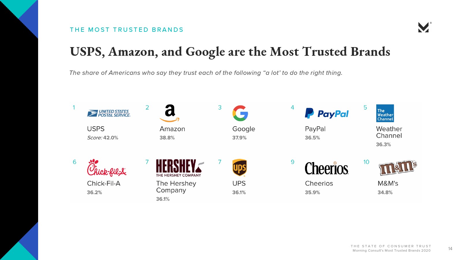 Morning Consult的报告还研究了美国最受信赖的品牌,五强包括: