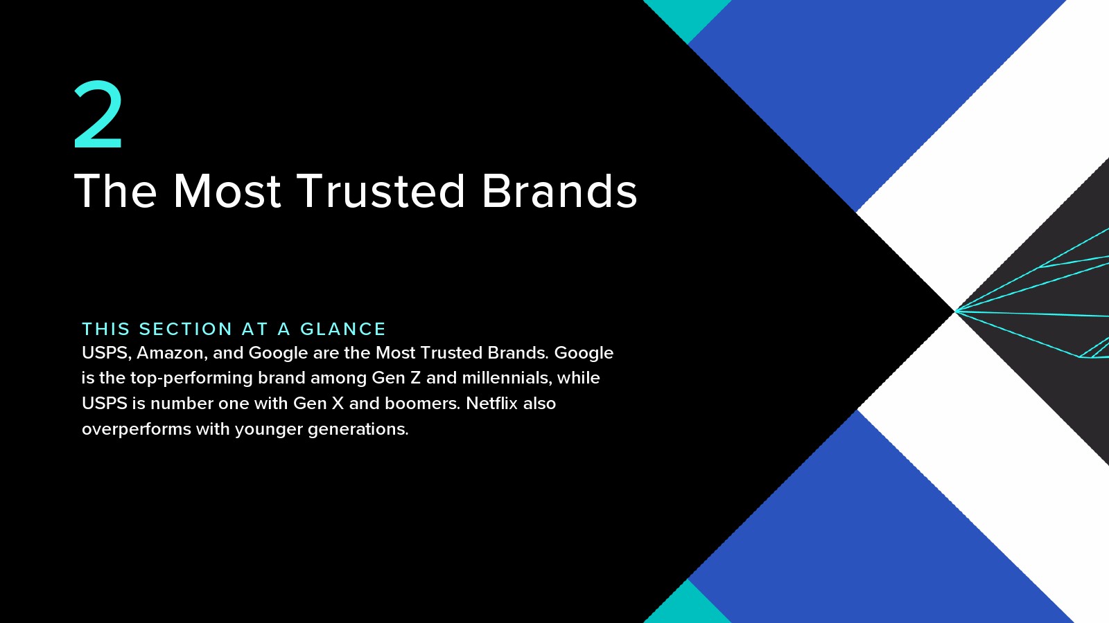 值得注意的是,尽管Netflix是美国最受欢迎的品牌之一,但它并没有进入最受信任的公司的前10名。它确实获得了年轻人的高度信任,在Z代中排名第二,在千禧一代中排名第五。
