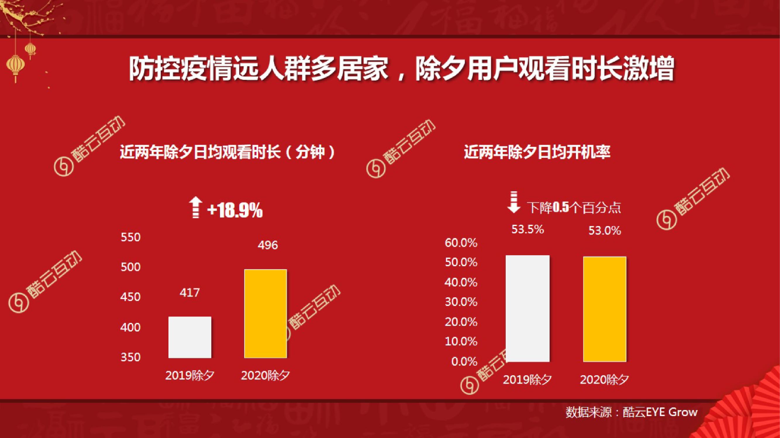 酷云互动:2020中央广播电视总台春节联欢晚会关注表现报告 PDF版本将分享到199IT交流群,支持我们发展可加入! 更多阅读:酷云互动:疫情下文娱行业自救指南酷云互动:2020卫视春晚盘点报告酷云互动&秒针:2019年12月-2020年1月智能电视广告投放月度风向标酷云互动:甜宠剧分析报告酷云互动:疫情下的用户大屏触媒洞察分析报告(二)酷云互动:中国电视用户家庭差异洞察报告酷云互动:70周年献礼剧洞察报告酷云互动:关于电视,那些颠覆“三观”的认知报告氪体&酷云互动:2019体育赛事电视大屏风向标报告酷云互动:泛北京电视用户行为指南酷云互动:2020年7-8月智能电视全场景月度风向标酷云互动:2020年4-5月智能电视广告投放月度风向标酷云互动:2020年1-4月明星影响力洞察报告酷云互动:2019年3月智能电视广告投放月度风向标酷云互动&秒针:2020年2月-2020年3月智能电视广告投放月度风向标