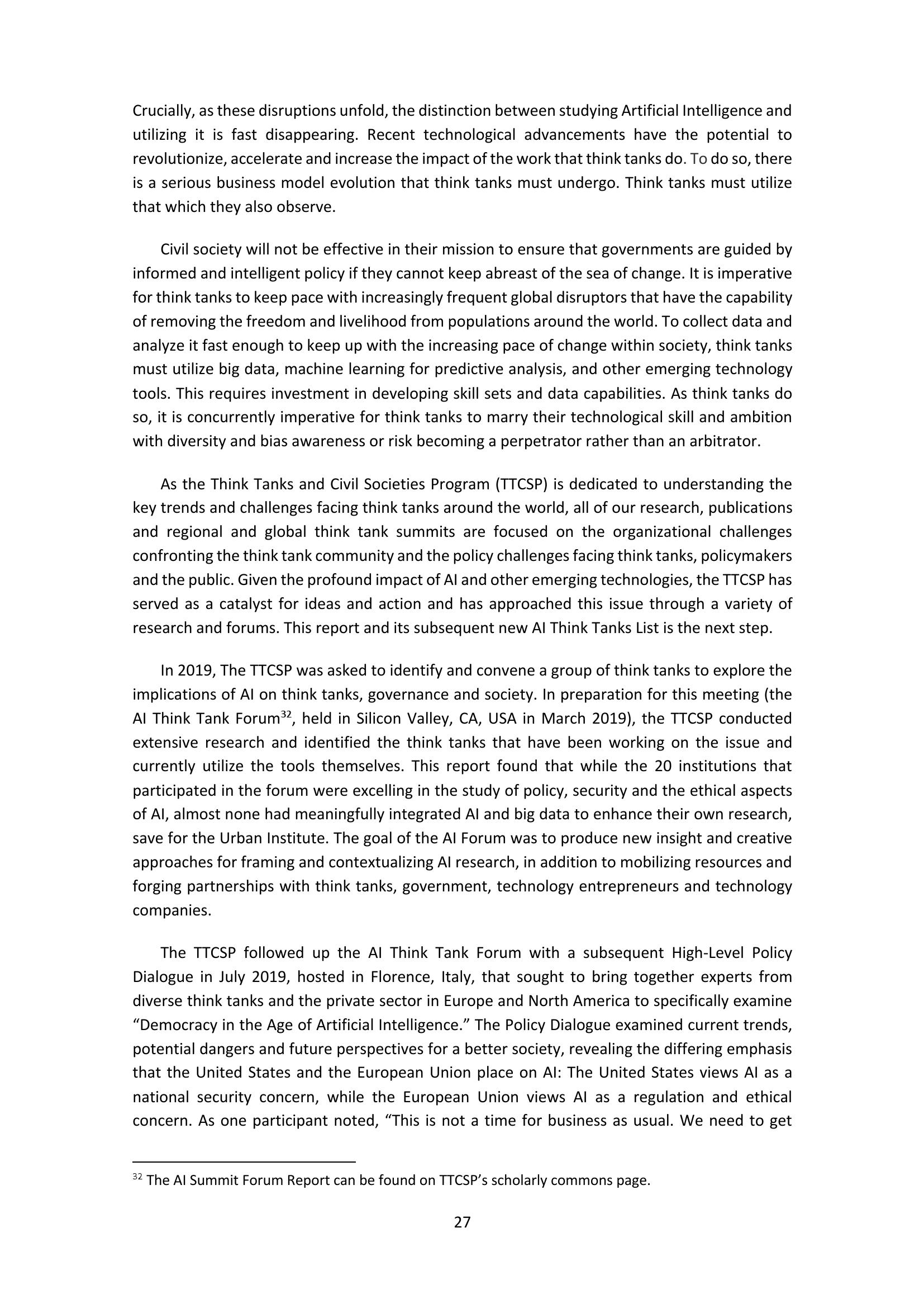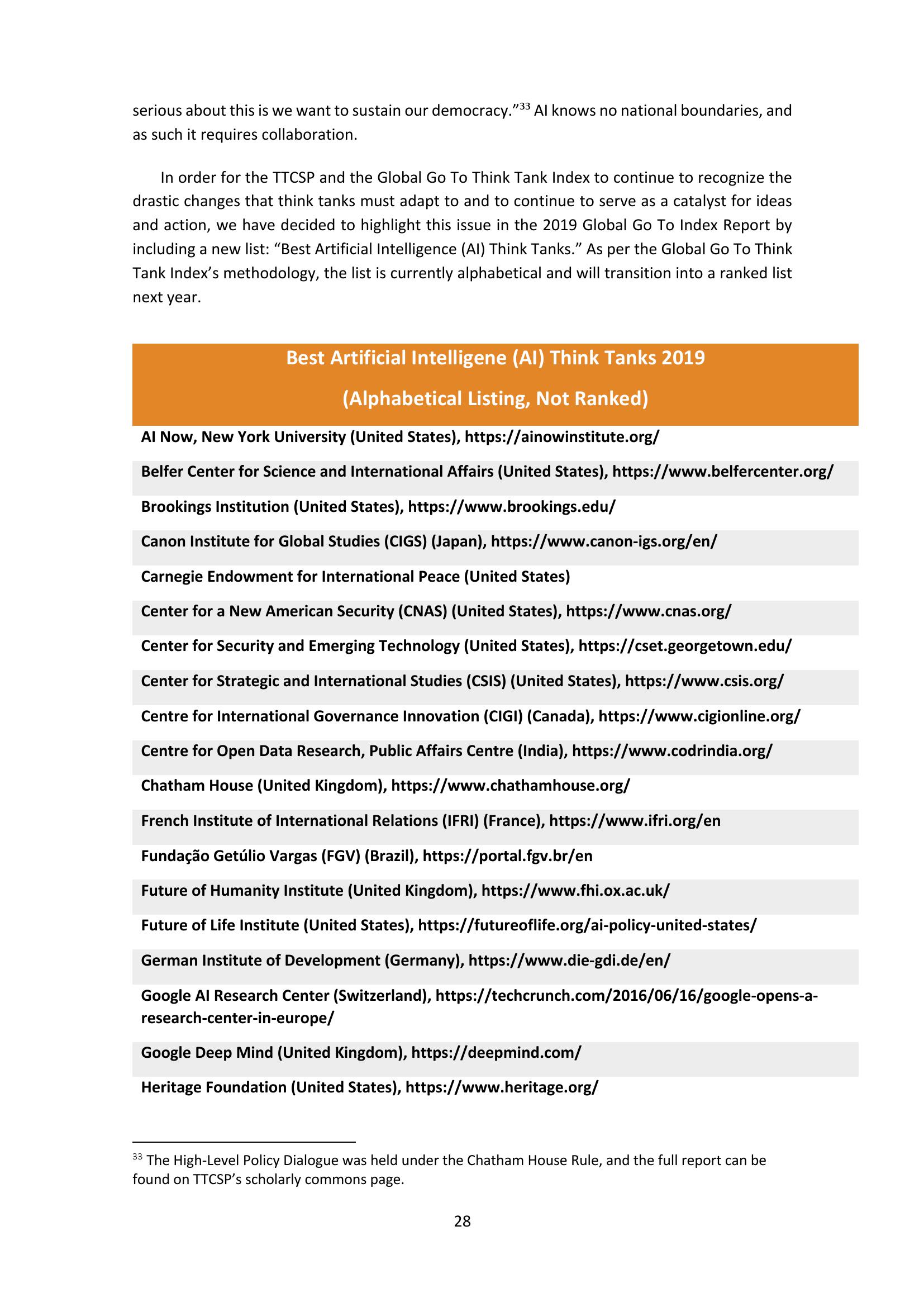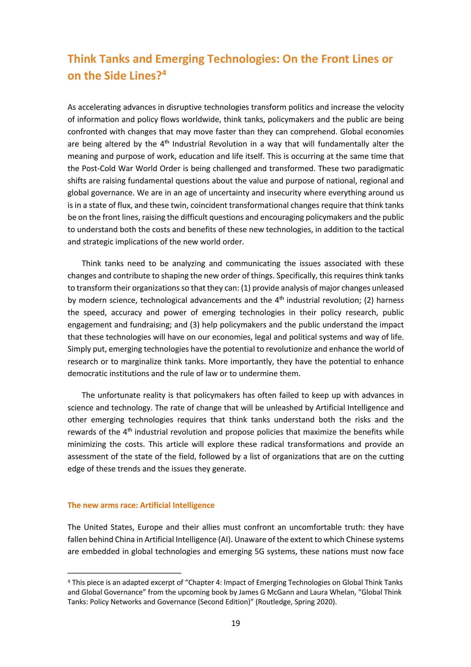 《报告》指出,第四次工业革命已经开始,人工智能(AI)等新兴科技正在改变着世界的政治、经济、社会生活等各个领域,给全球智库发展带来新机遇的同时也带来了新的挑战,这对智库提出了转型要求。