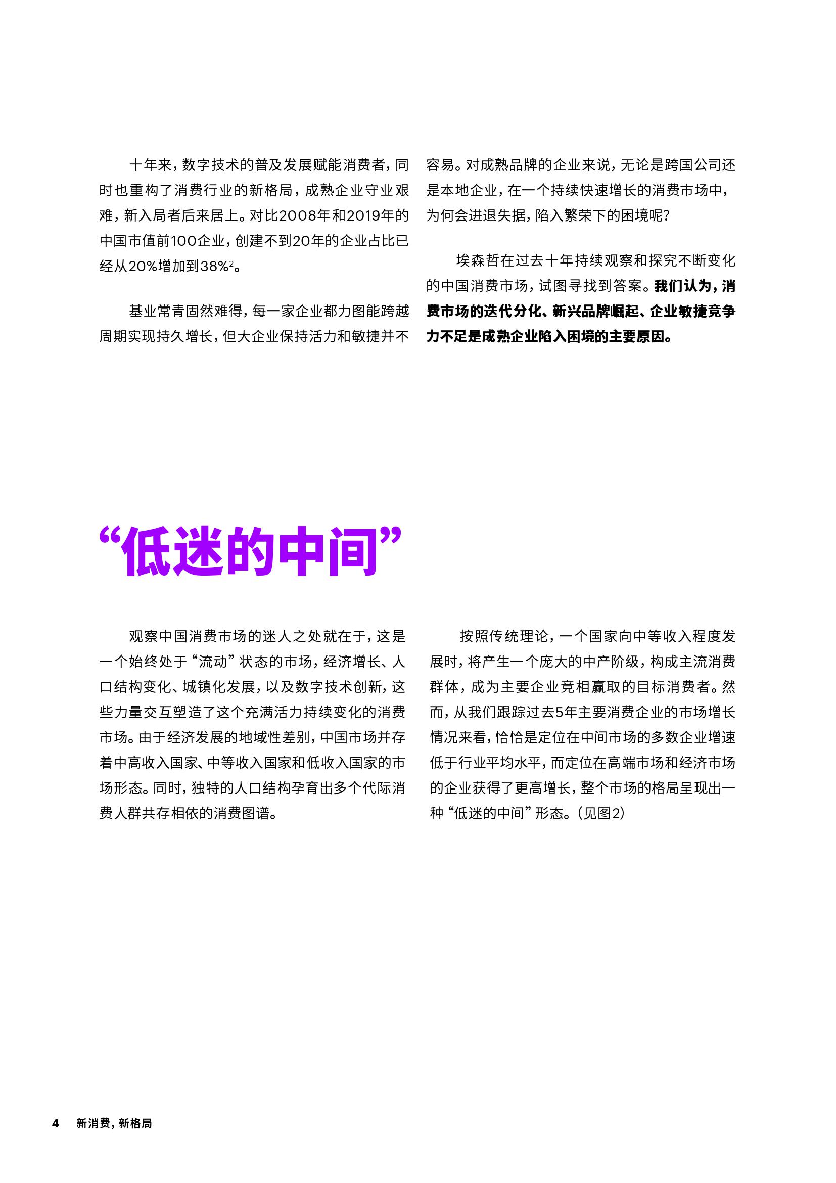在消费升级的前半程,外资背景的全球品牌、奋发图强的国货精品和网红潮牌收获了皆大欢喜的增长。但埃森哲的最新调研成果却给出一个令人吃惊的洞察:未来消费升级的力量并非人人可乘的顺风车,中国主要消费品行业的增长格局正在悄然发生变化,并且呈现出一种“低迷的中间”形态。