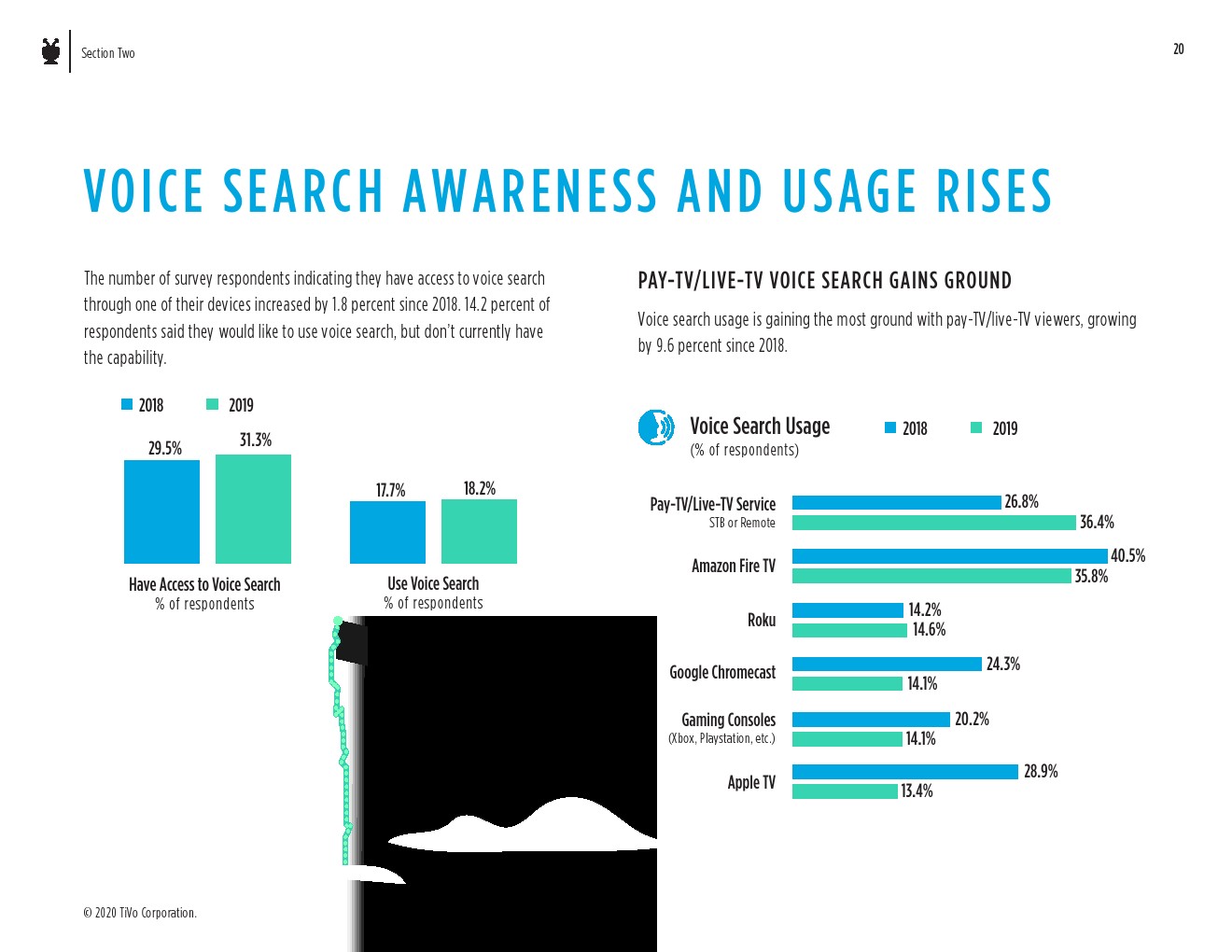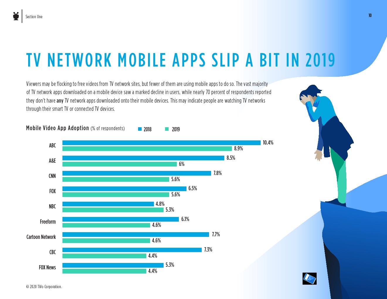 与此同时,观众也以更快的速度转向Facebook(2019年第四季度为62.3%,高于2018年底的43.9%)和来自网站或应用的免费视频(分别为45.3%和13.4%);Snapchat也获得了观众,从2018年低的29.3%增长到18.1%。The Trade Desk的研究表明,1/3的消费者表示,他们更喜欢观看由广告资助的免费服务,或者为包括一些广告的订阅支付更低的价格。