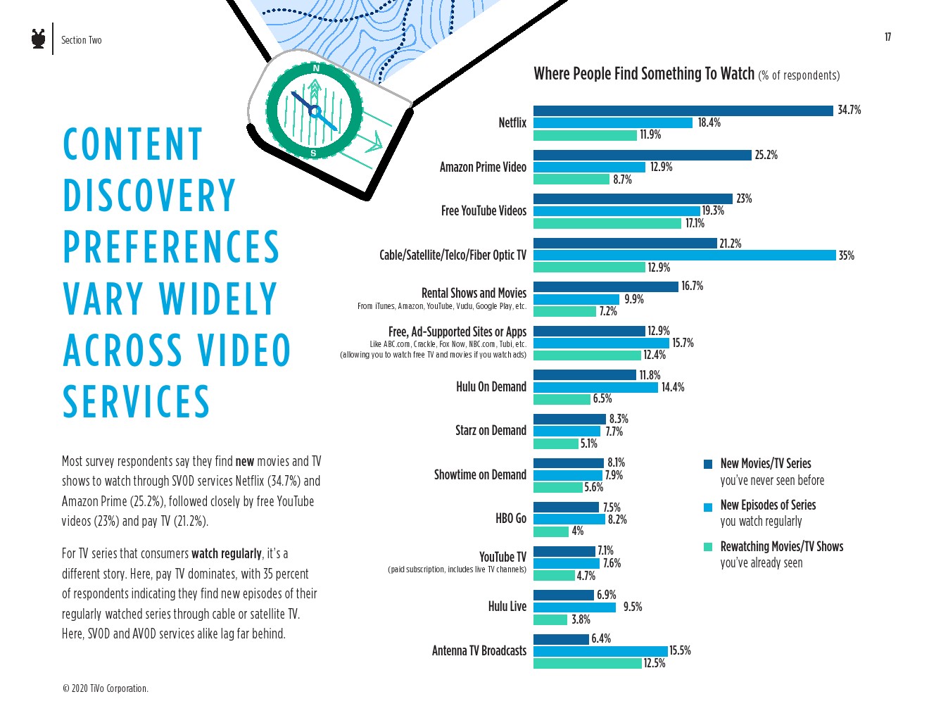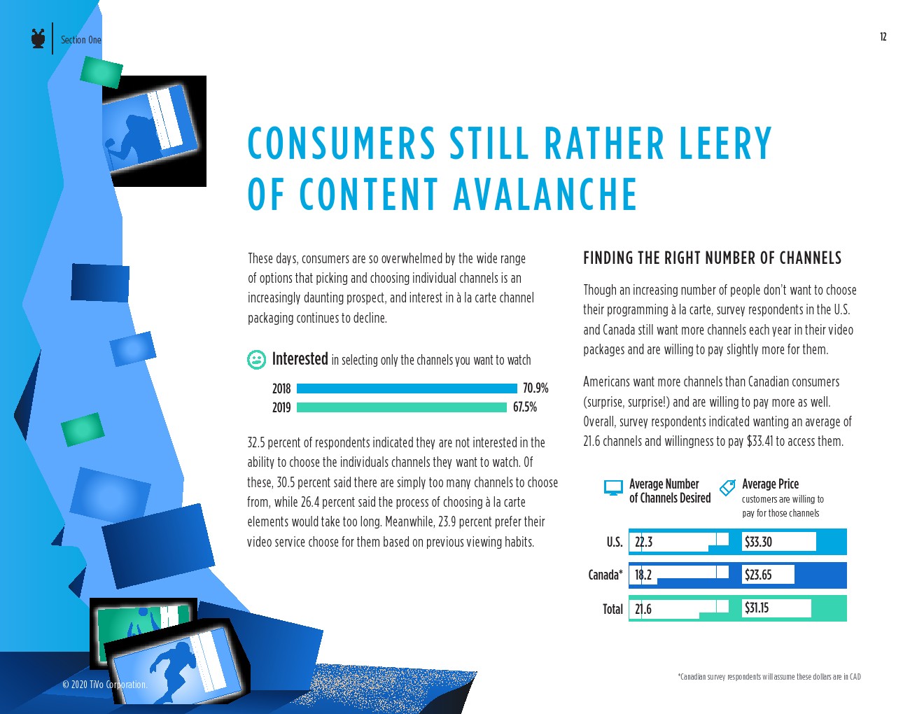 - 内容可能太多了:1/3的受访者对选择单个频道不感兴趣,31%的受访者说有太多的频道可供选择。