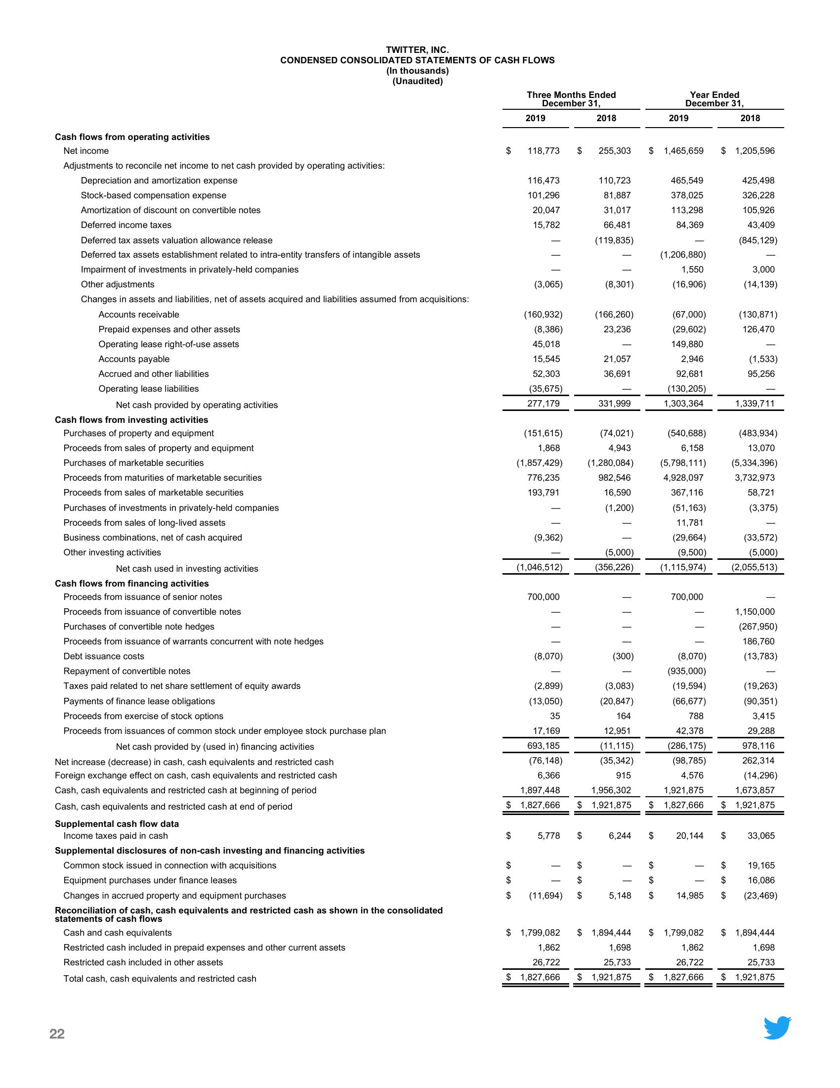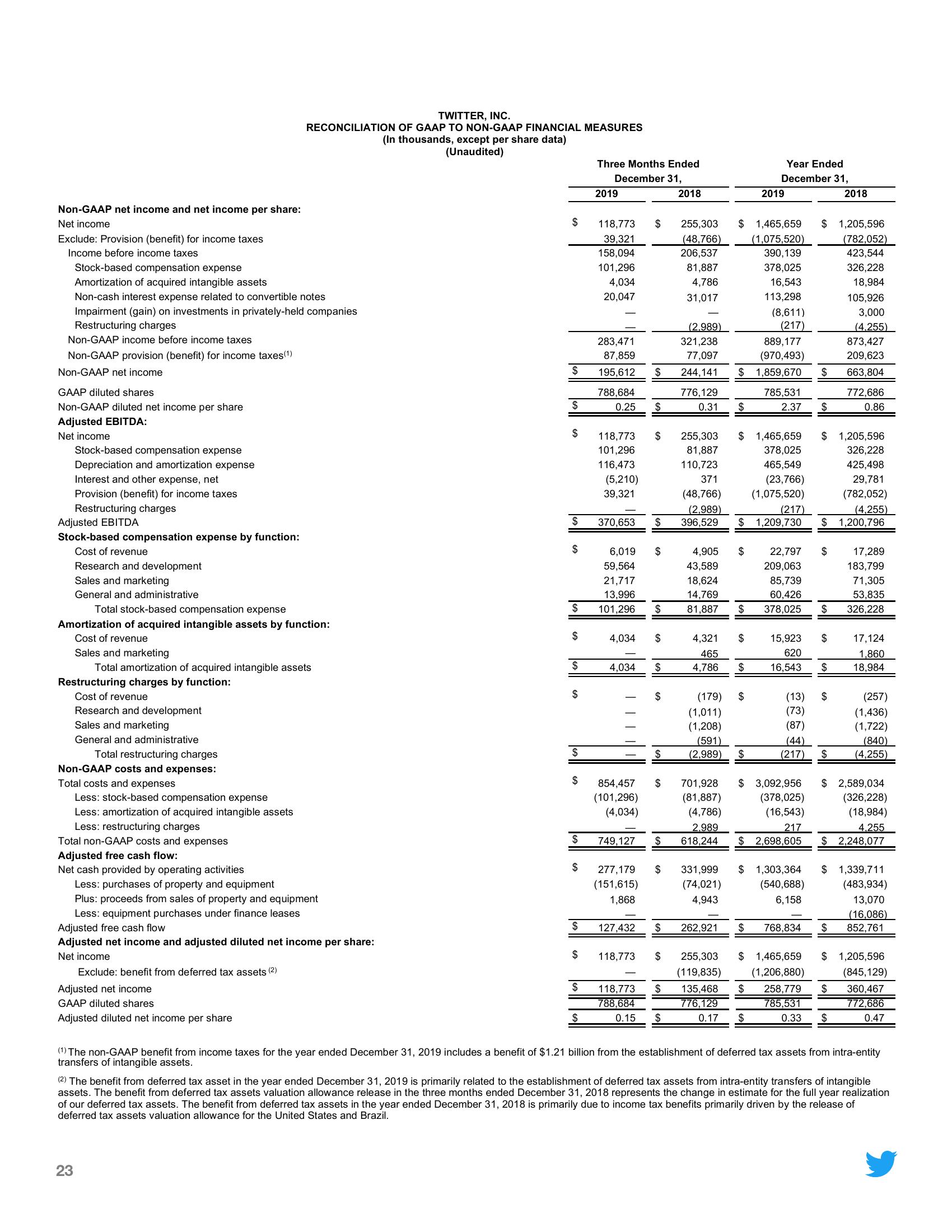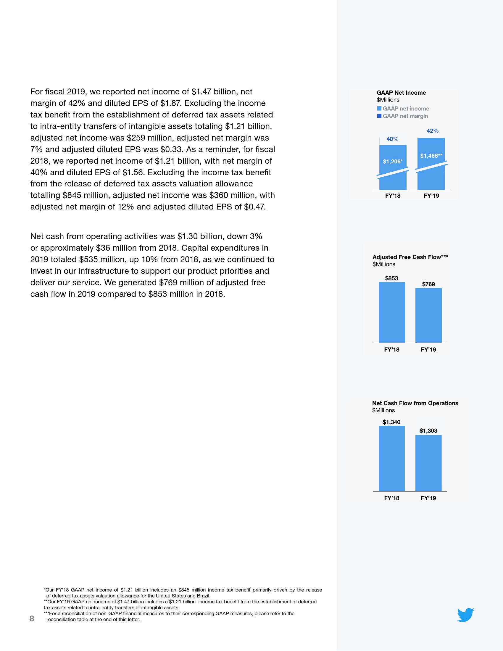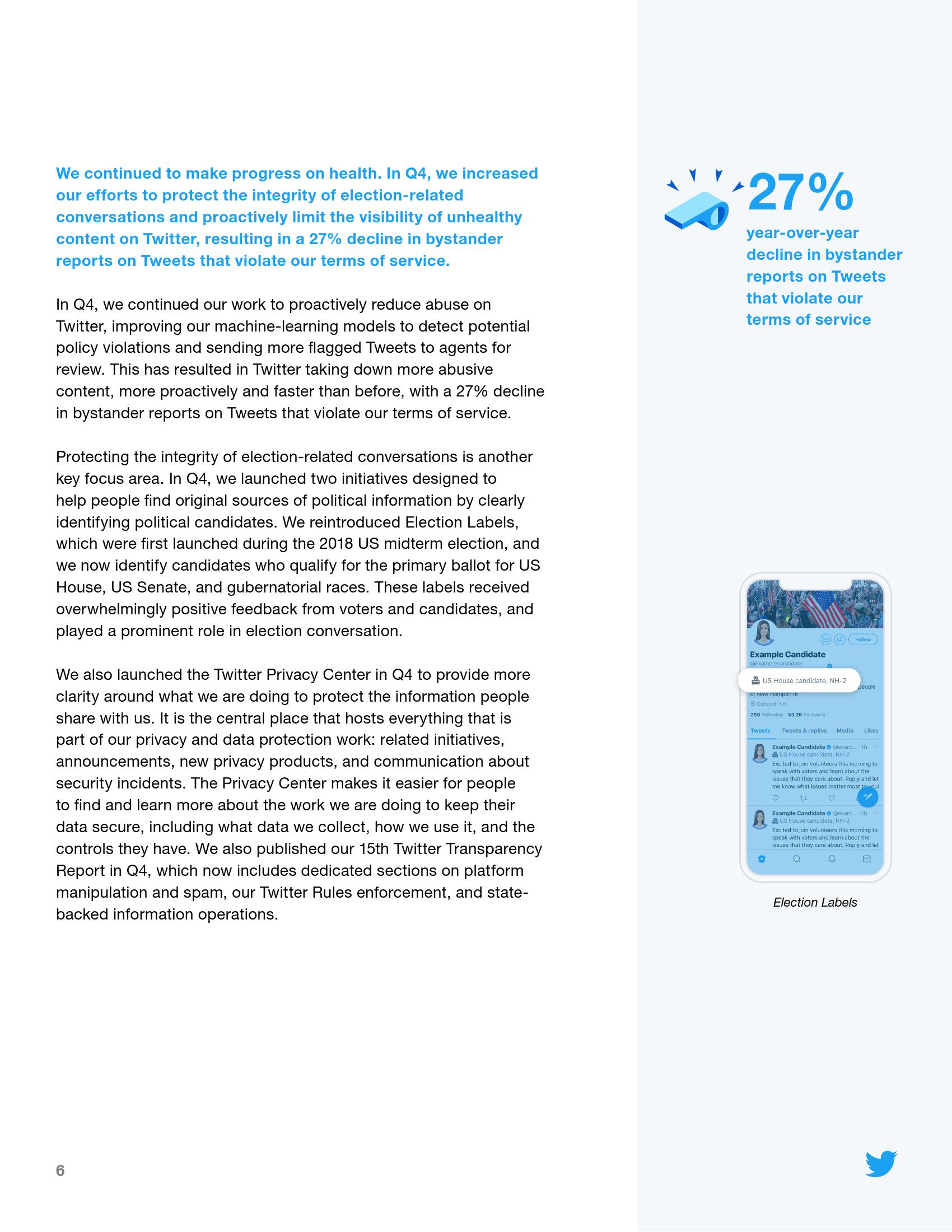 Twitter财报显示,该公司2019年第四季度营收10.1亿美元,同比增长11%;净利润为1.19亿美元,上年同期为2.55亿美元。2019年全年营收34.6亿美元,同比增长14%;净利润为14.7亿美元,上年为12.1亿美元。