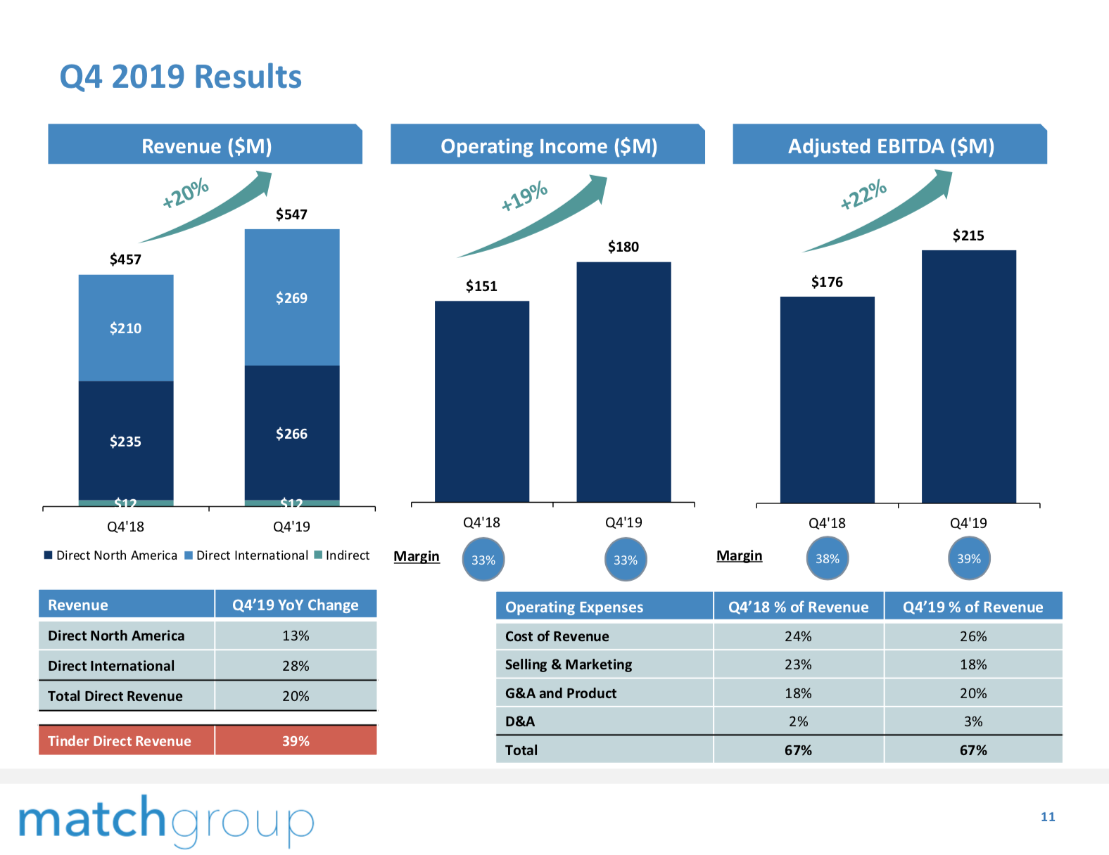 三是增长:Q4 Tinder用户增长在各个地区仍然保持两位数;收入增长方面,尝试la carte (按条收费)功能的拉动,按条付费功能已经占到tinder直接收入的25%,潜力仍然很大;在亚洲市场,会员订阅不是流行模式,app内购和按条收费可能机会更大,公司将会重点探索。