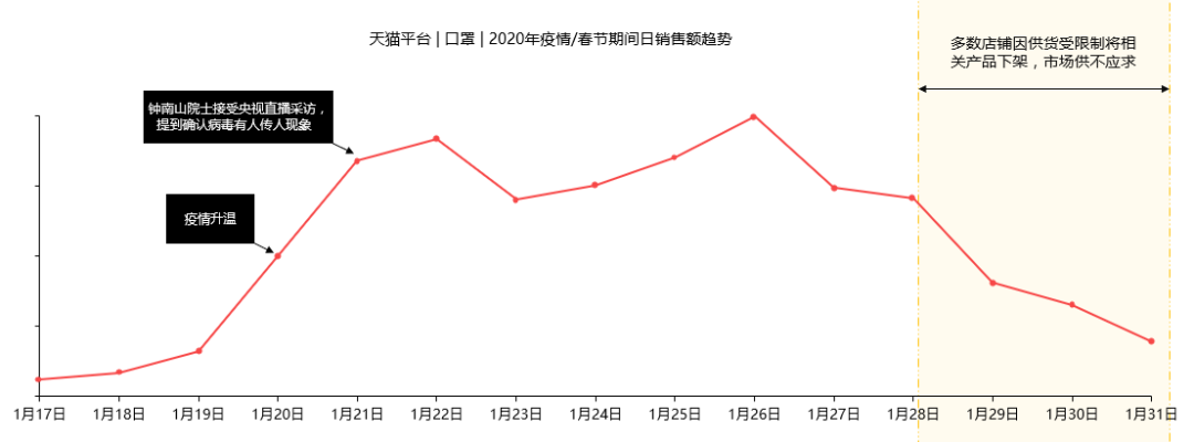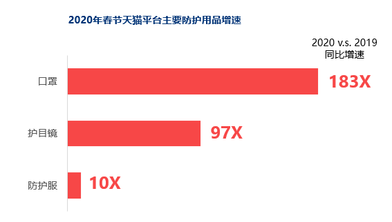 以口罩、护目镜、防护服为代表的自我防护类目,销售额爆量增长,抗疫期间一罩难求的困境也是目前供需市场里面最迫切待解的问题。