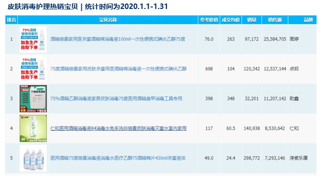 除了外出必备的口罩产品之外,随着疫情升温,消费者对于居家消毒产品的需求也逐渐升温。不管是家居清洁行业下的洗手液、消毒液,或是属于医疗器械下的皮肤消毒护理产品(75%酒精喷雾剂、消毒液)增速均明显上扬。