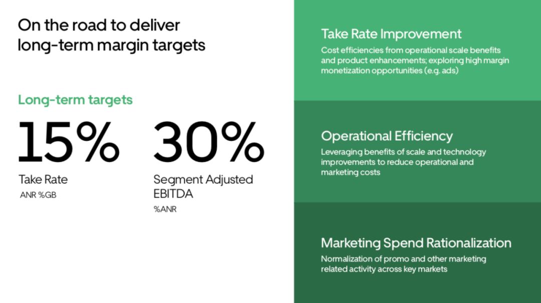 公司外卖业务的长期佣金率目标为15%,调整后的EBITDA利润率为30%。
