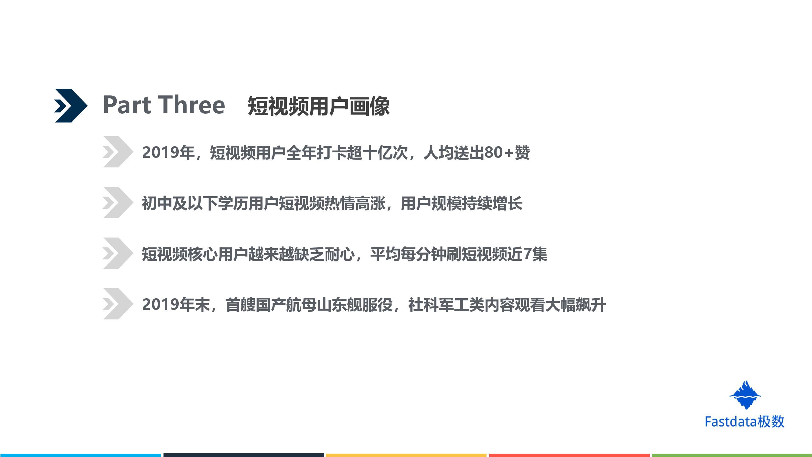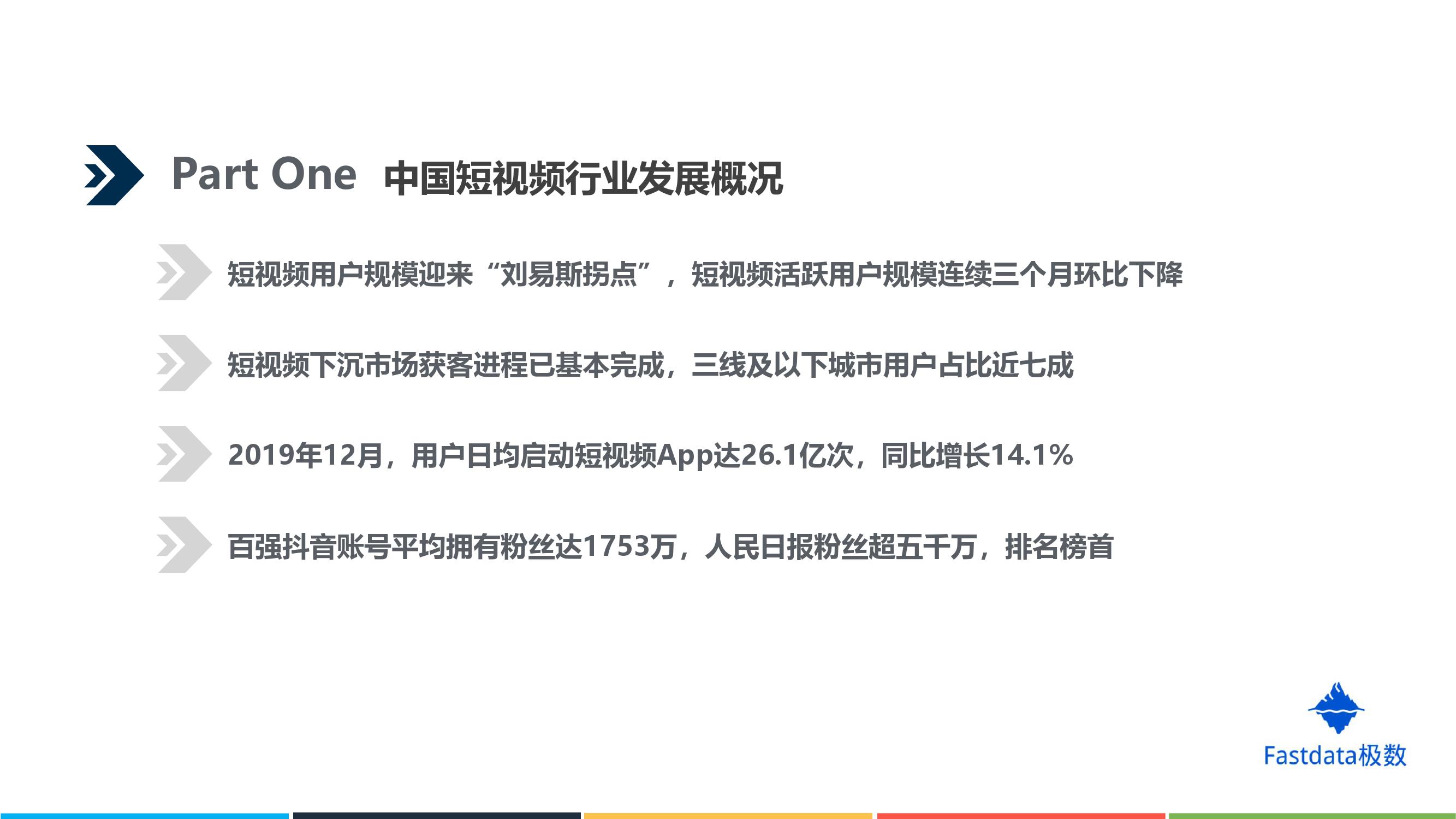 Fastdata极数:2019年中国短视频行业发展趋势报告 PDF版本将分享到199IT交流群,支持我们发展可加入! 更多阅读:Fastdata极数:2020年中国互联网家装行业报告SensorTower:2019年1月席卷海外的中国短视频/直播应用 TOP20中国演出行业协会:2022-2023年直播与短视频行业发展报告微播易:2020年5月短视频大数据行业洞察微播易:2020年1月短视频行业动态报告卡思数据:2019年Q2短视频KOL红人深度分析报告Fastdata极数:2020年中国互联网租车报告Fastdata极数:2020年中国互联网发展趋势报告Fastdata极数:2019年中国长租公寓行业发展分析报告Fastdata极数:2019年上半年中国同城货运网约车行业趋势报告Canalys:2025年第二季度中国PC出货量达到1020万台 同比增长12%QuestMobile:2025年9月短视频月活11.29亿,抖音主APP达9.36亿Omdia:2025年第三季度中国智能手机市场同比下降3%QuestMobile:2025年8月中国互联网企业去重用户量腾讯12.66亿居首Niko Partners:2025年中国视频游戏支出507亿美元