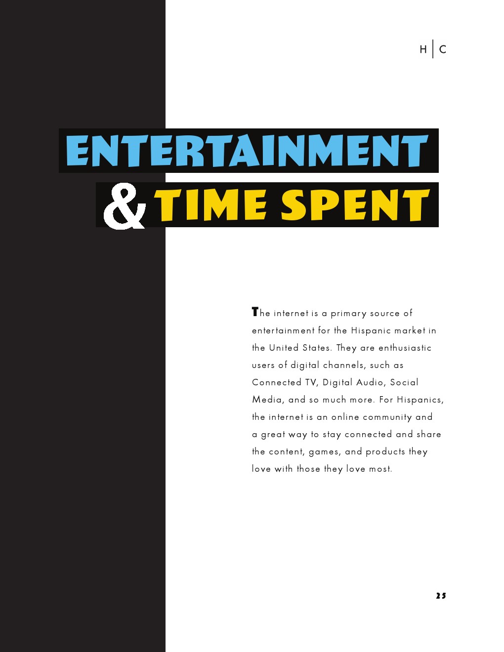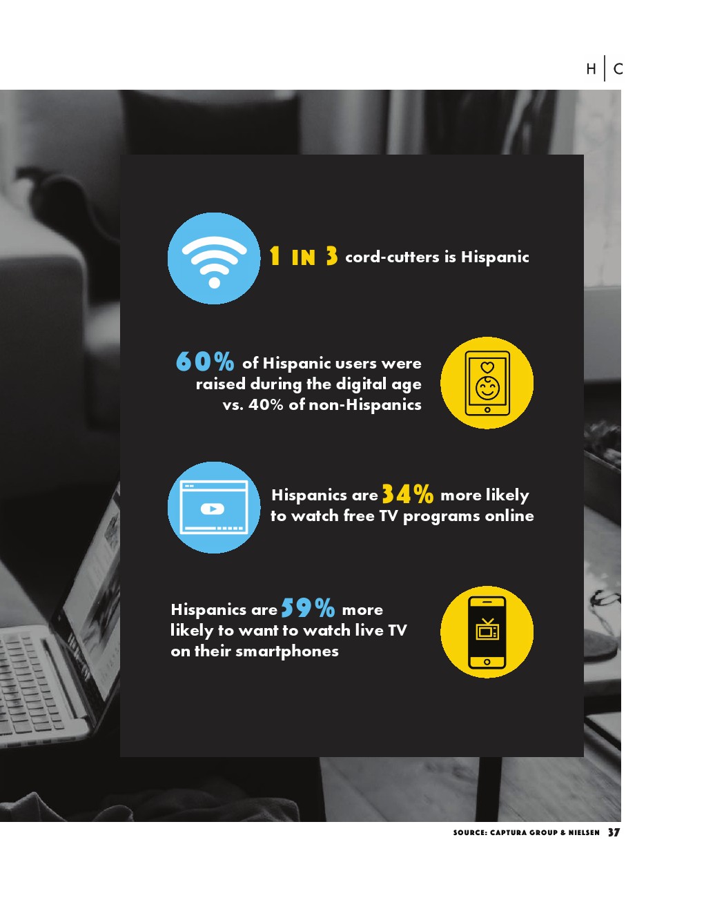 根据对美国1000多名拉美裔消费者(英语和西班牙语)的调查, 42%的受访者表示,他们每周至少花6个小时收听数字音频和观看数字视频。