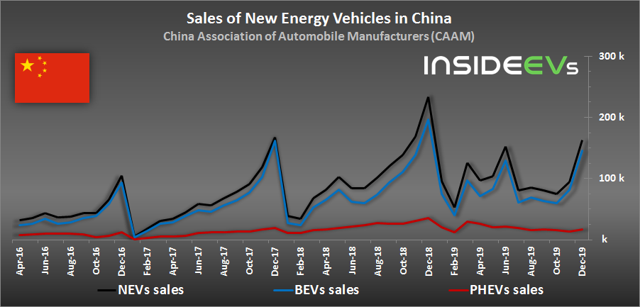电动汽车销售博客(EV Sales Blog)报告称,12月份的销量接近15万辆,比去年同期下降了22%(整体汽车市场仅下降了1%)。市场占有率达6.8%。两种类型的插电式电动汽车和插电式混合动力汽车都出现了下降,电动汽车下降了17%,插电式混合动力汽车下降了45%。