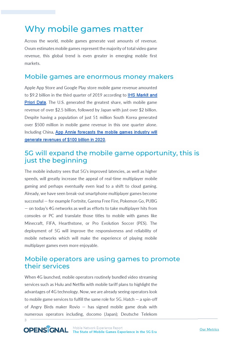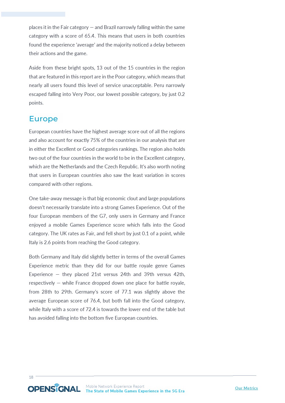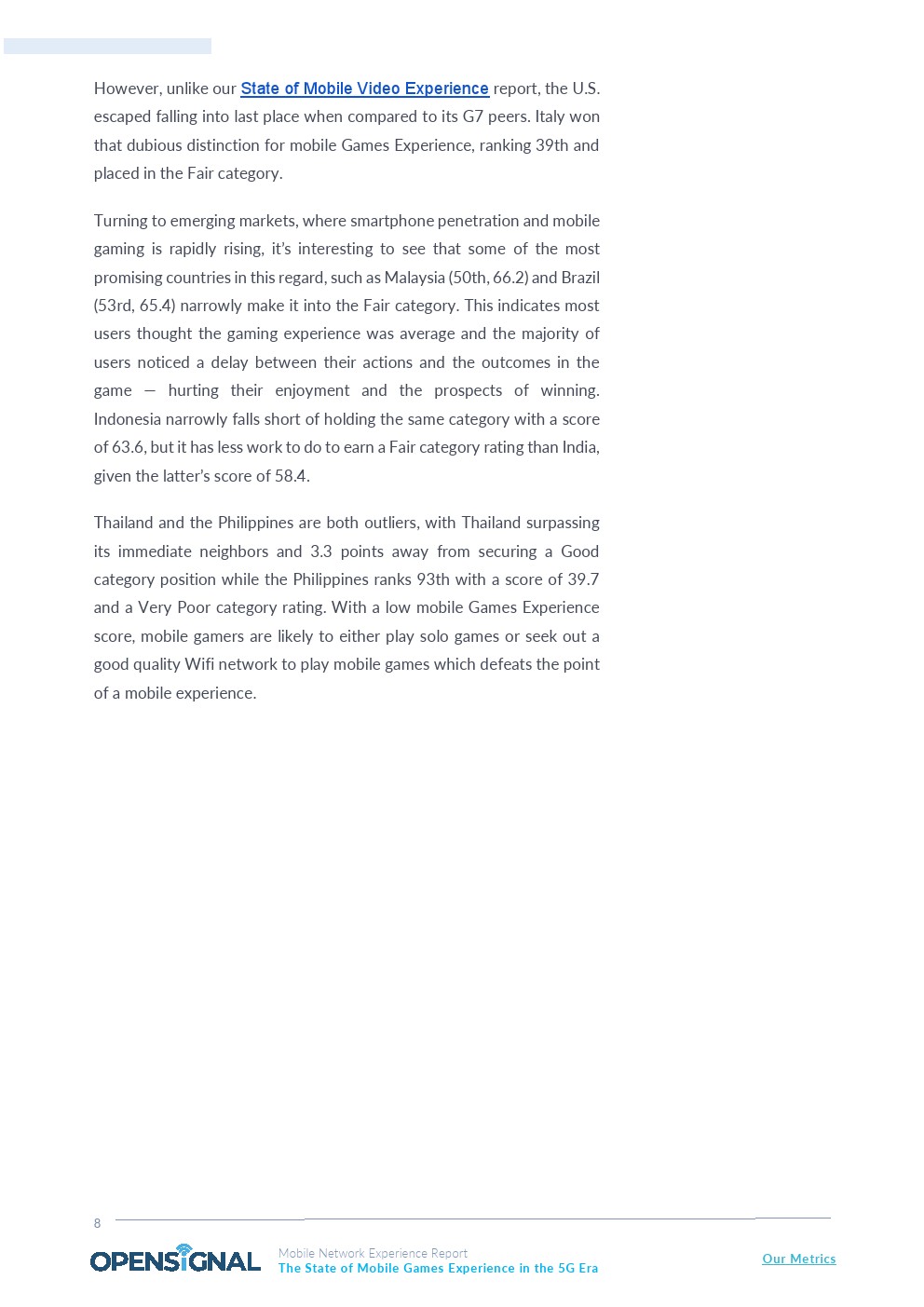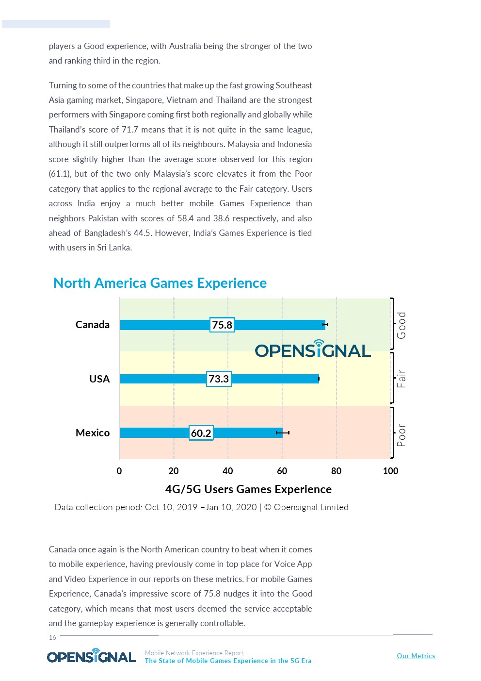 Opensignal发布了新报告“5G时代的移动游戏体验”。根据其手游体验新标准,新加坡以85.5分排在首位。