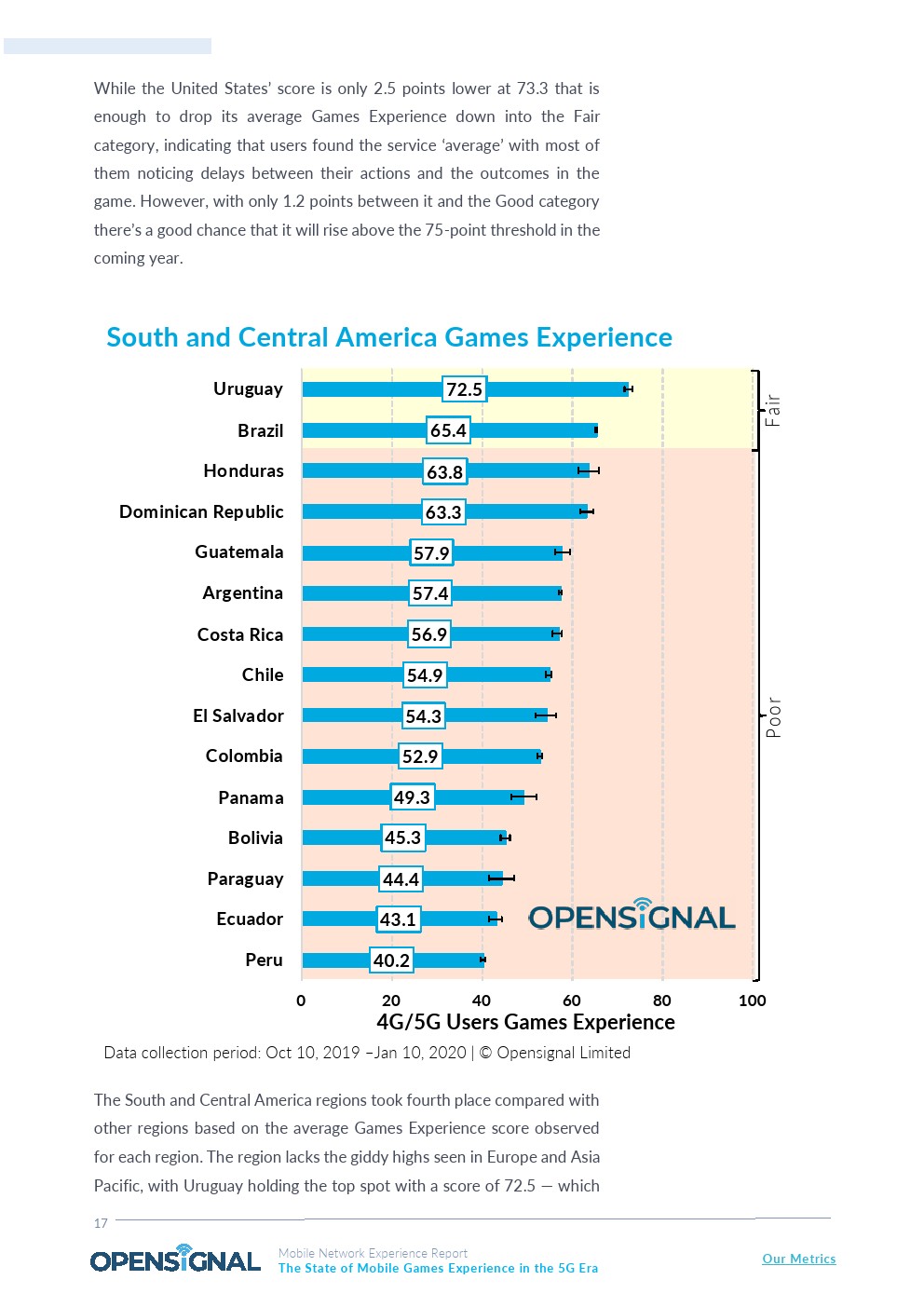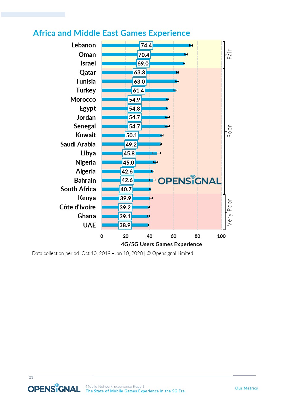 在分析的100个国家中有28个获得了“优秀的手机游戏体验”。