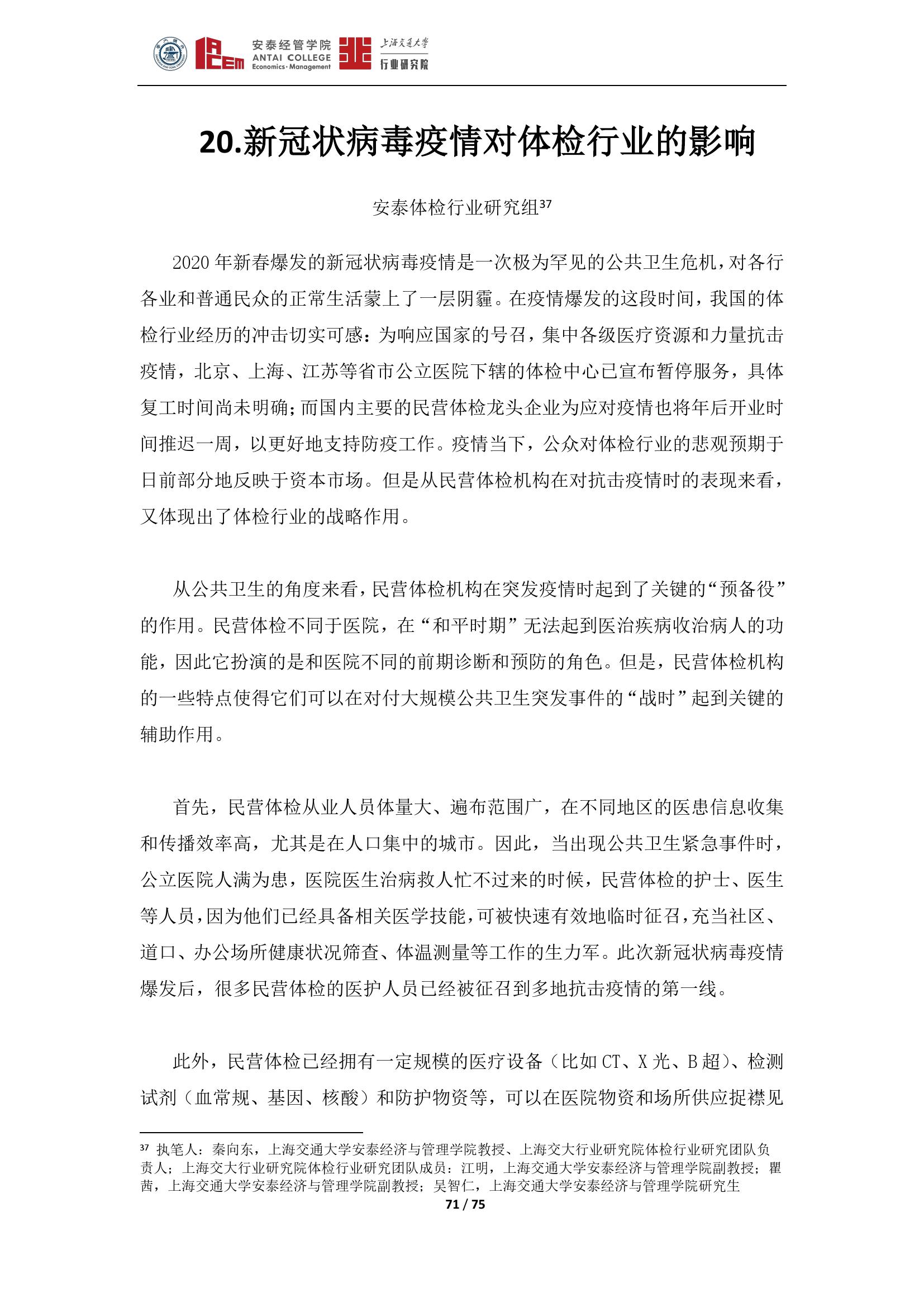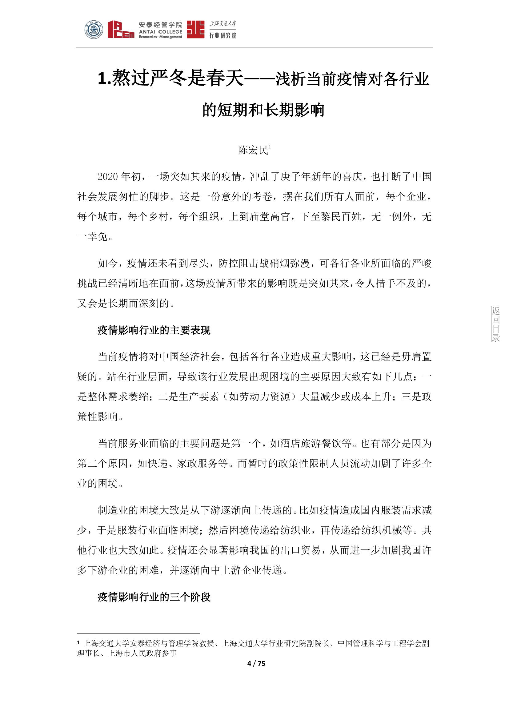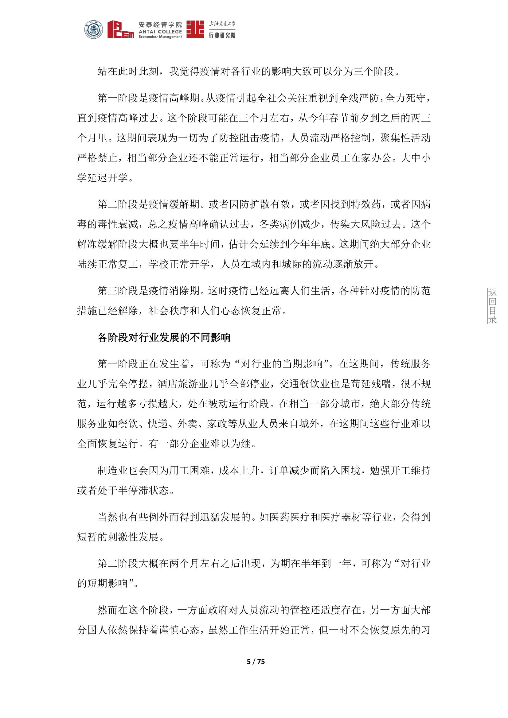 日前,由上海交通大学行业研究院院长、安泰经管学院院长陈方若带头,上海交通大学行业研究院发布了囊括19个行业的《新冠肺炎疫情对若干行业的影响分析》。该观点集展现了此次疫情对各行业的影响和一些应对策略,希望对疫后经济发展有所帮助。