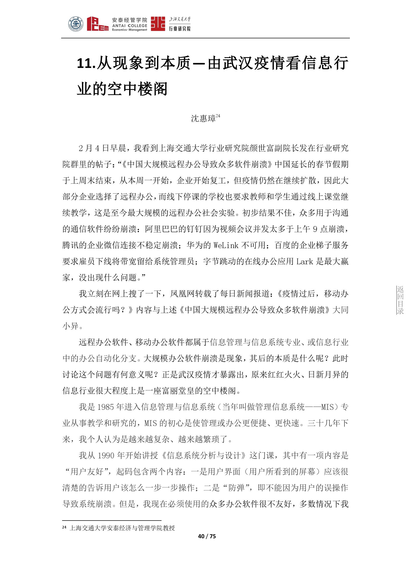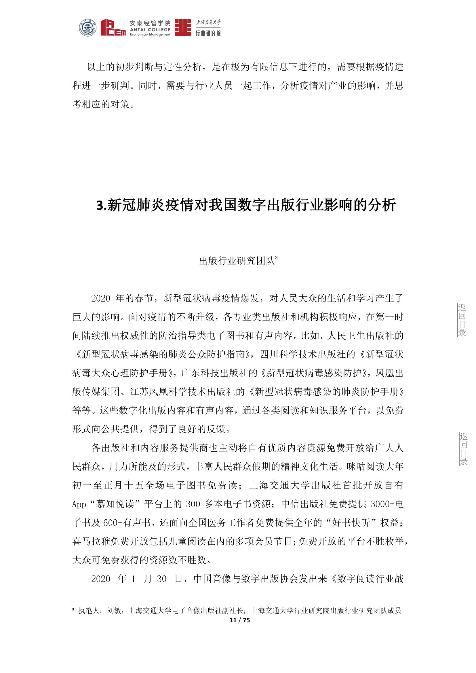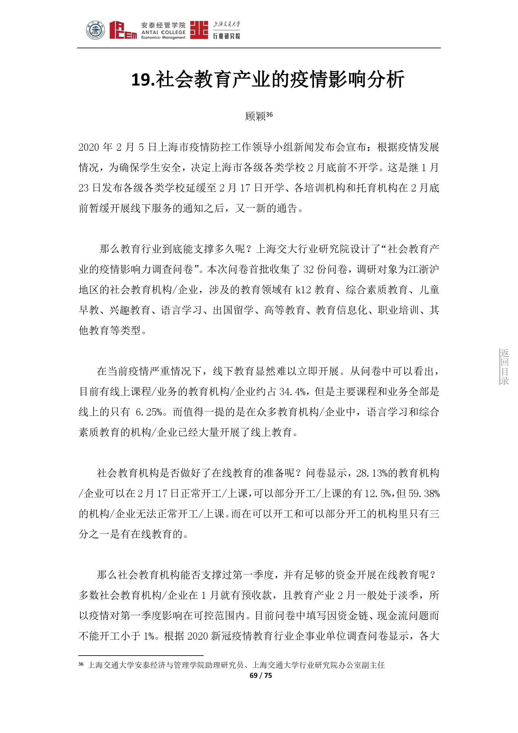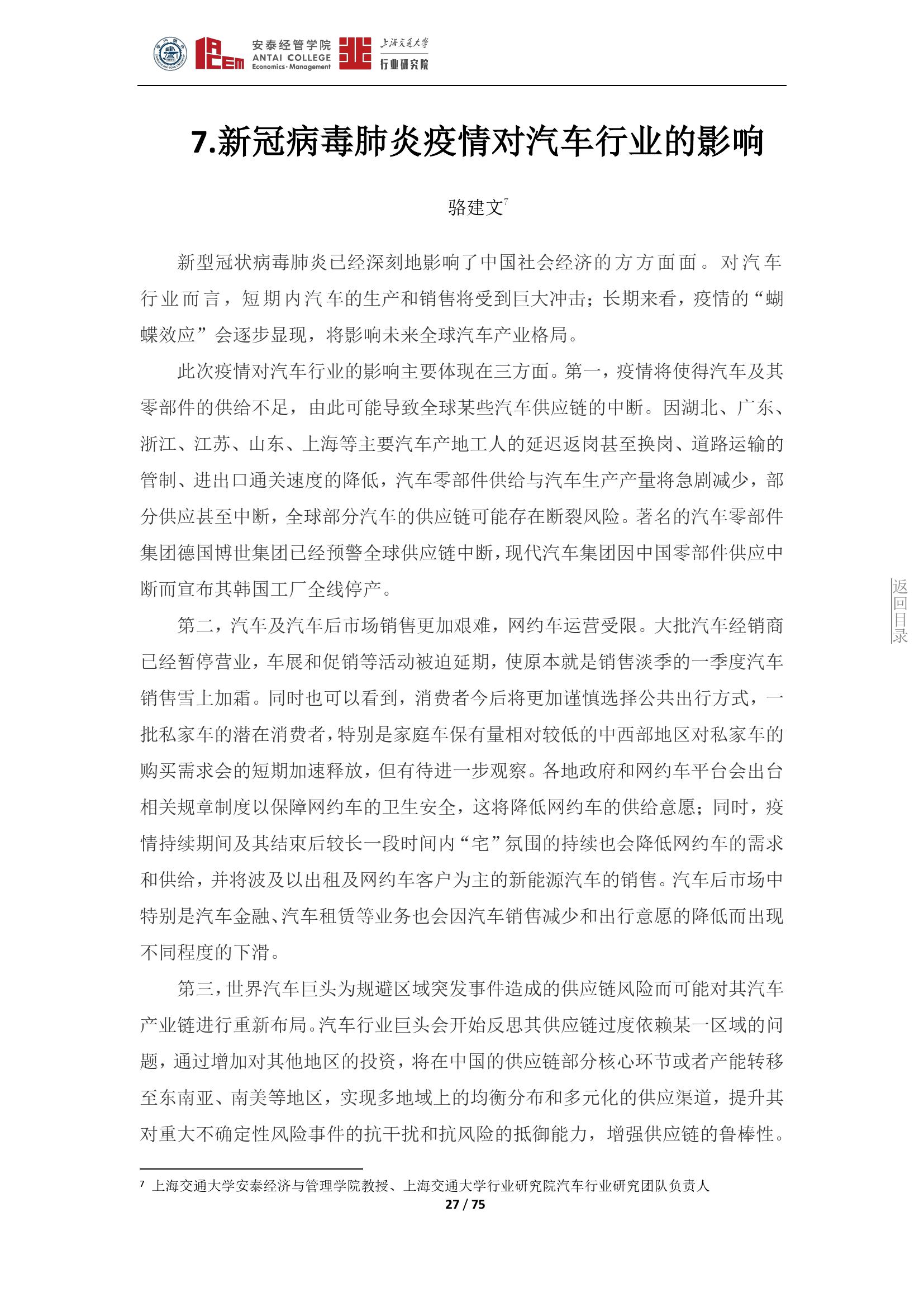日前,由上海交通大学行业研究院院长、安泰经管学院院长陈方若带头,上海交通大学行业研究院发布了囊括19个行业的《新冠肺炎疫情对若干行业的影响分析》。该观点集展现了此次疫情对各行业的影响和一些应对策略,希望对疫后经济发展有所帮助。