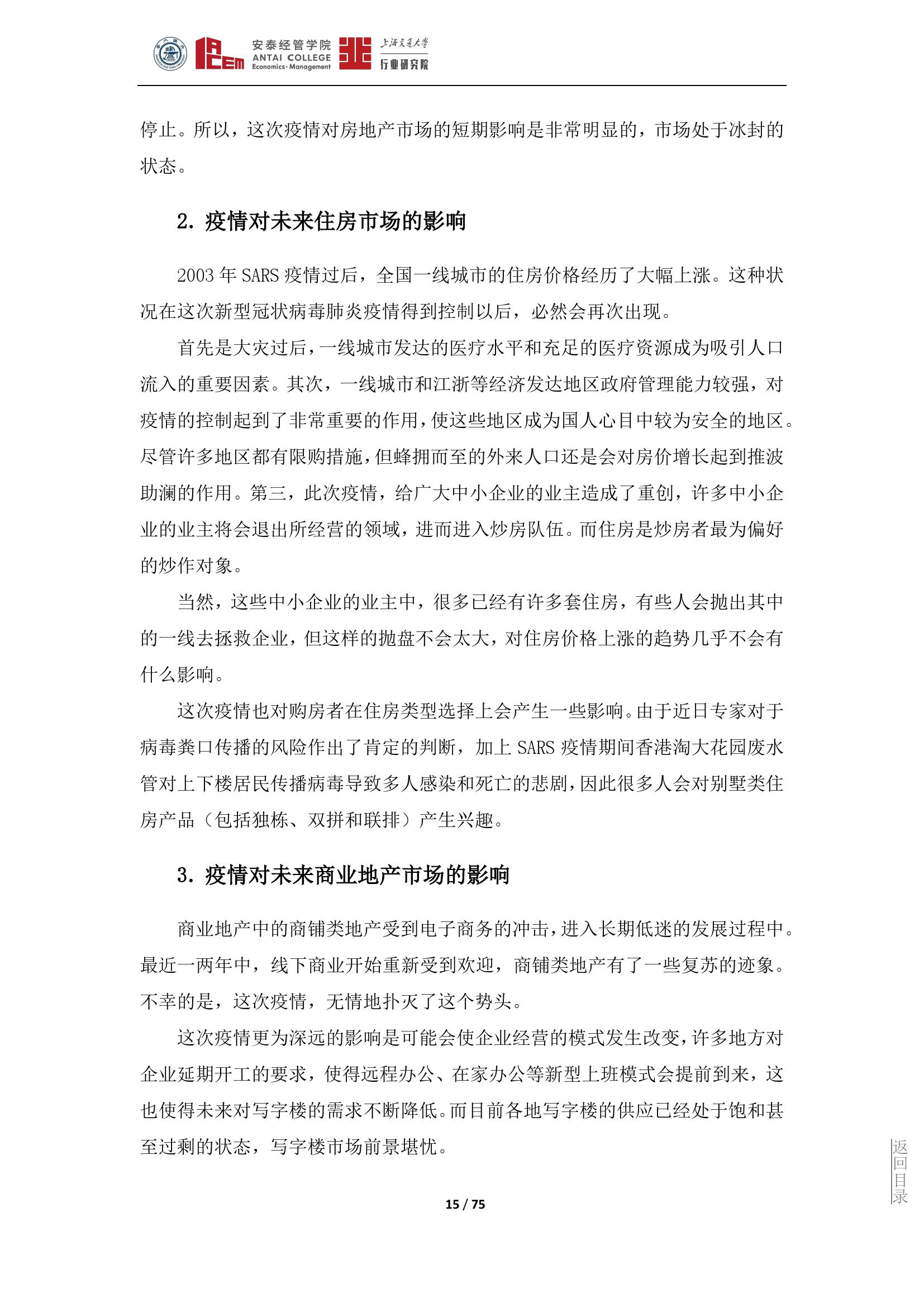 这次疫情更为深远的影响是可能会使企业经营的模式发生改变。再加上这次疫情中,中小企业受到的重大冲击,许多经营者退出了所经营的领域,全社会的商业活跃度会有所降低,对商业地产的需求也会下降。这些因素叠加在一起,必然会给商业地产市场的前景蒙上阴影。