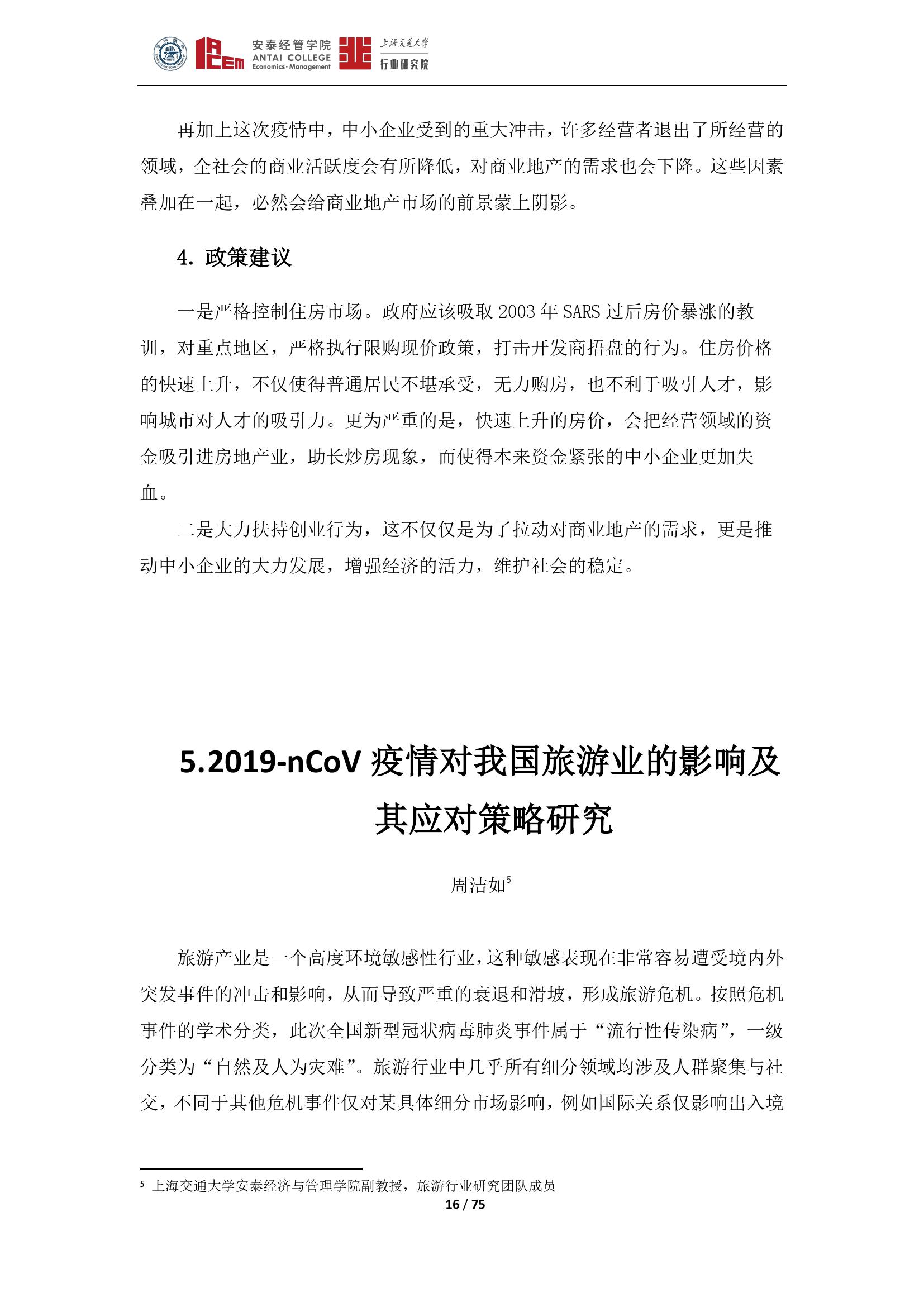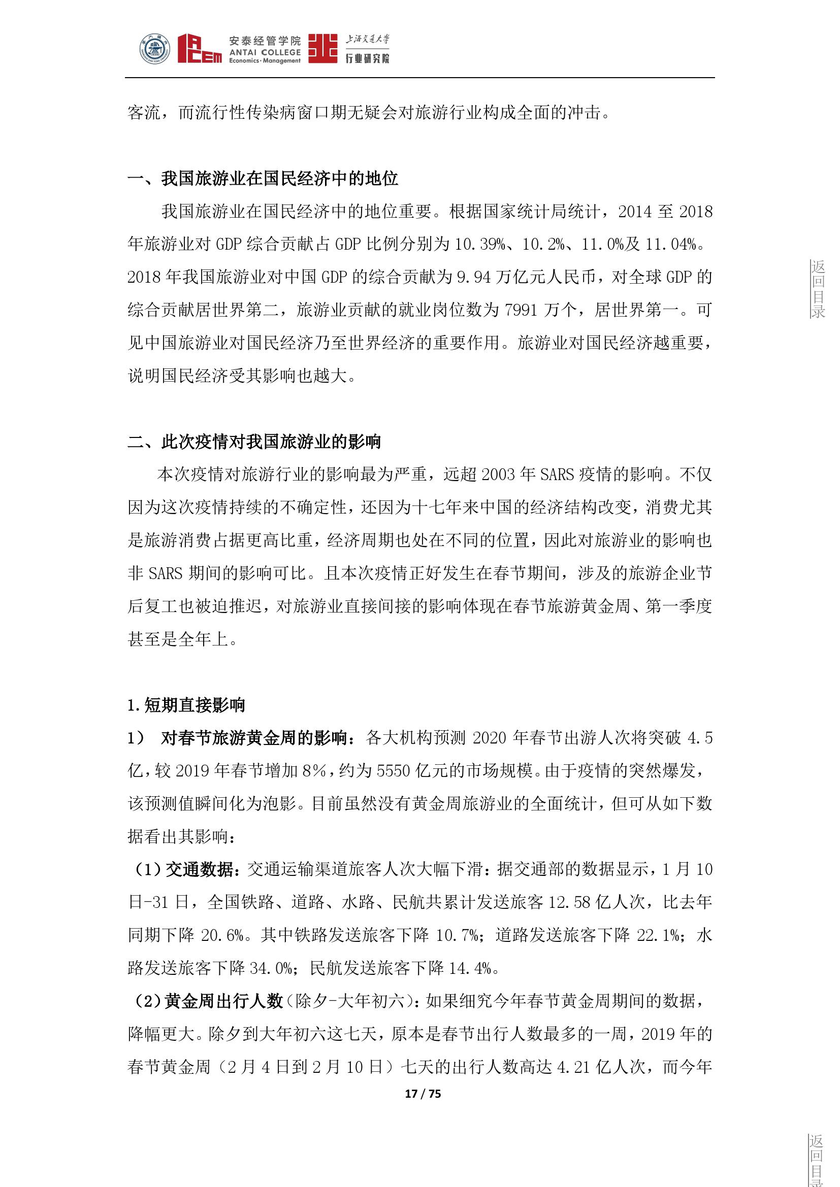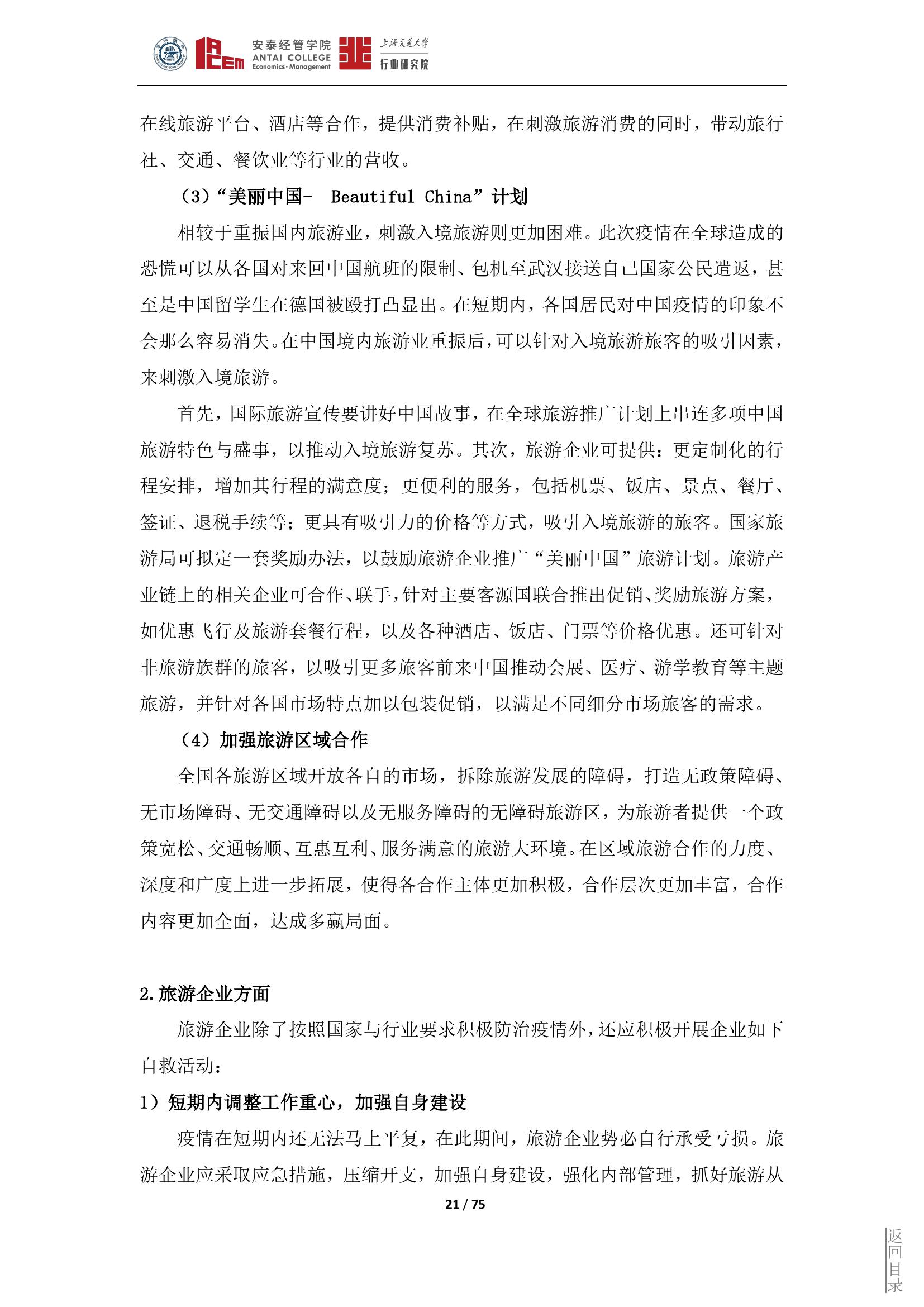 旅游产业是一个高度环境敏感性行业,这种敏感表现在非常容易遭受境内外突发事件的冲击和影响,从而导致严重的衰退和滑坡,形成旅游危机。此次疫情对旅游行业构成了全面的冲击。上海交大行业研究院旅游行业研究团队从政府和旅游企业两个层面提出应对措施,以应对此次疫情的冲击和挑战。