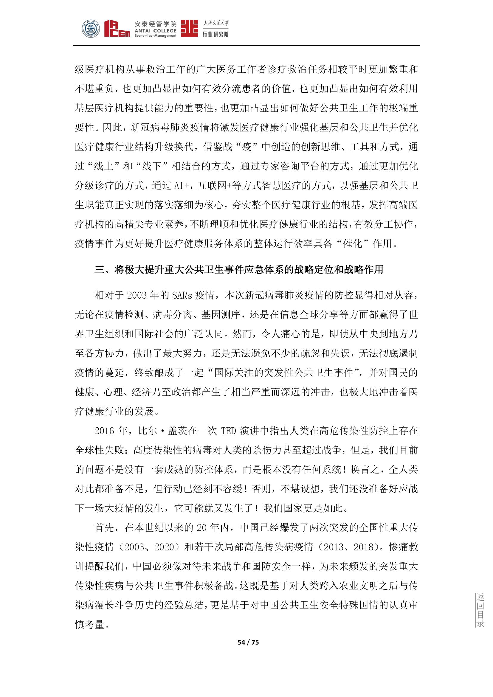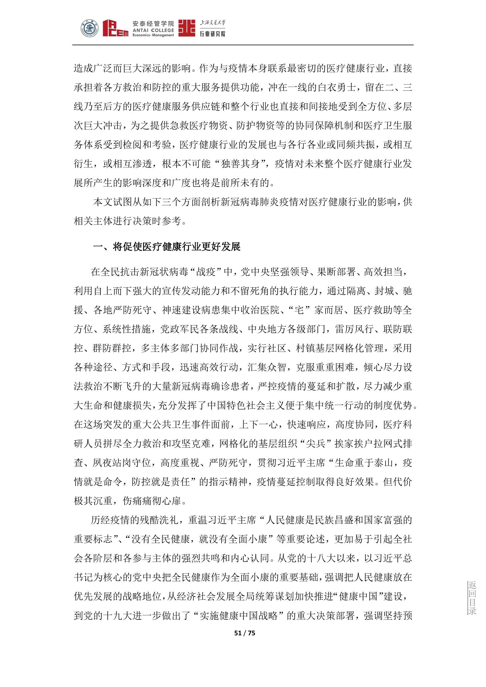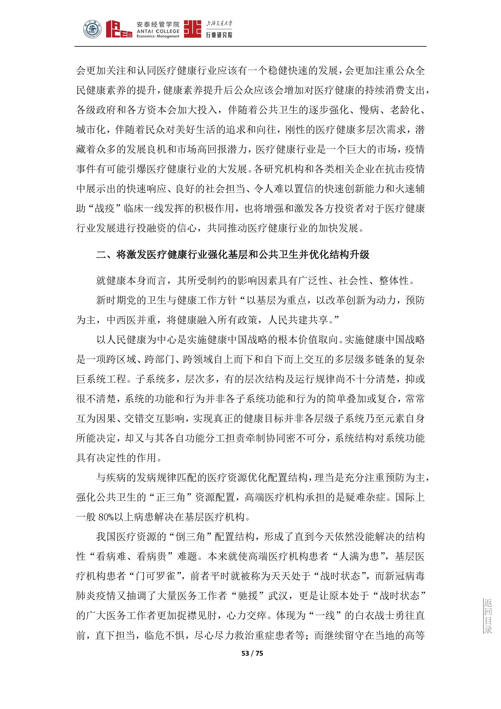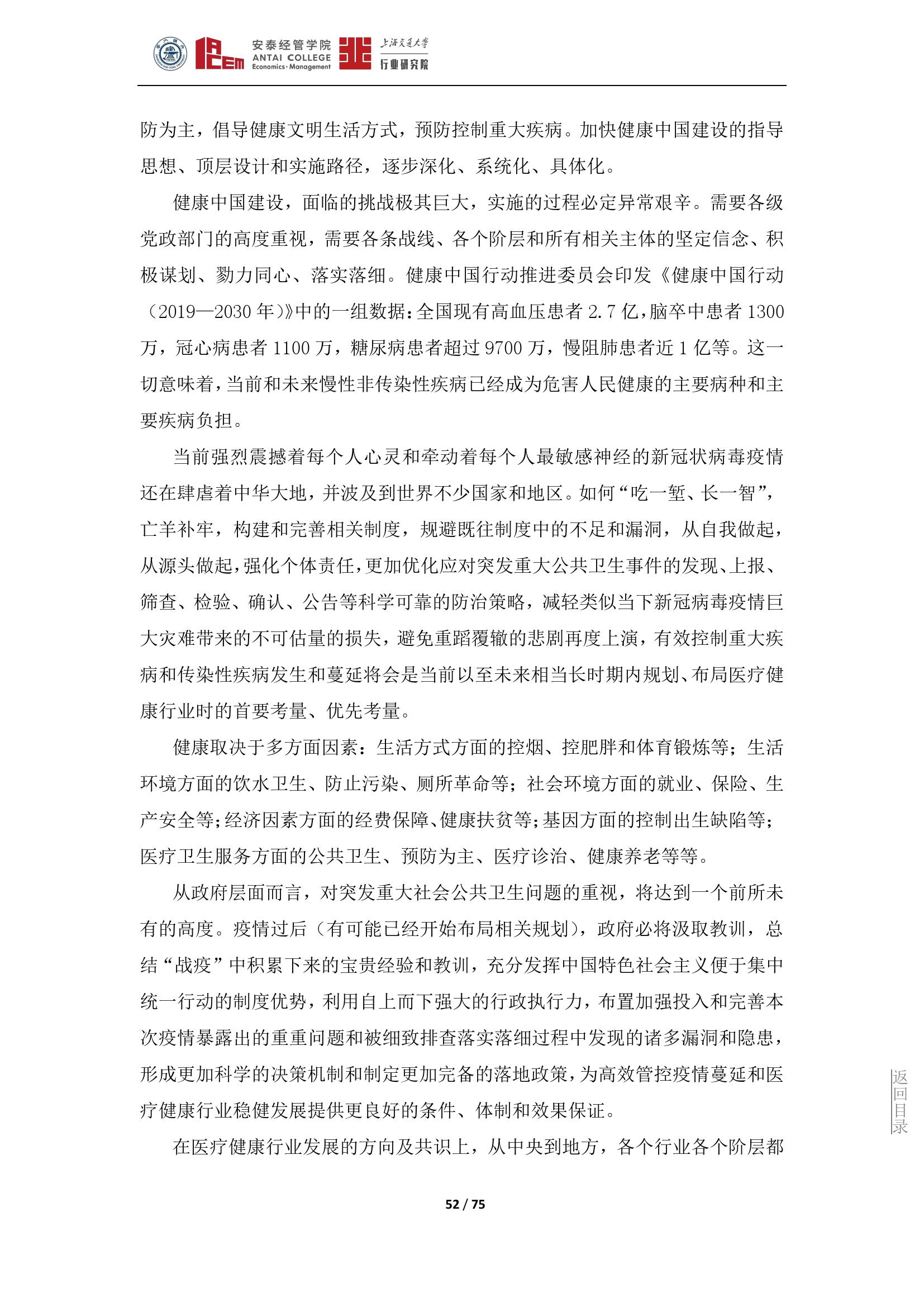 作为与疫情本身联系最密切的医疗健康行业,直接承担着各方救治和防控的重大服务提供功能,医疗健康行业的发展也与各行各业或同频共振,或相互衍生,或相互渗透,根本不可能“独善其身”,疫情对未来整个医疗健康行业发展所产生的影响深度和广度也将是前所未有的。