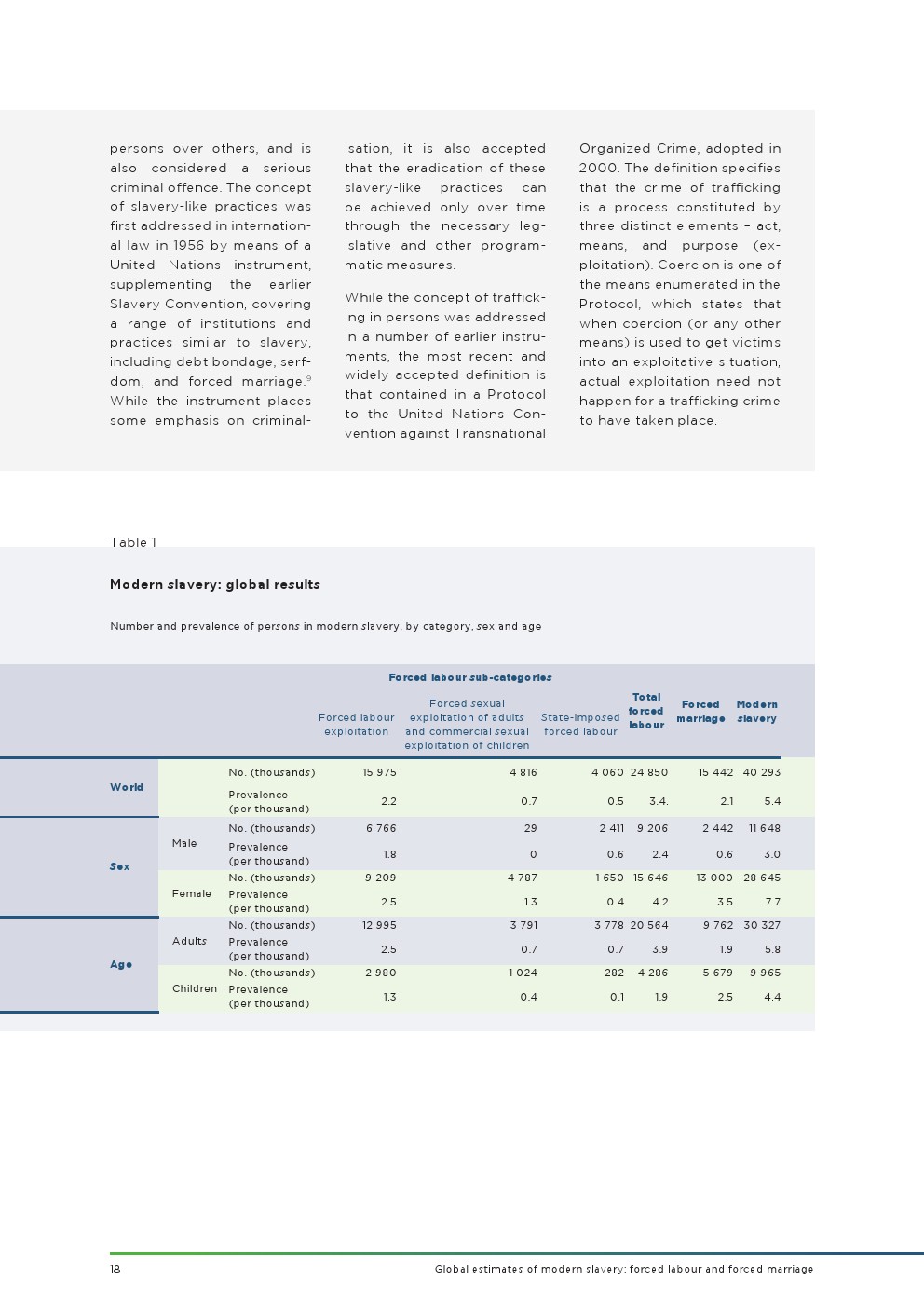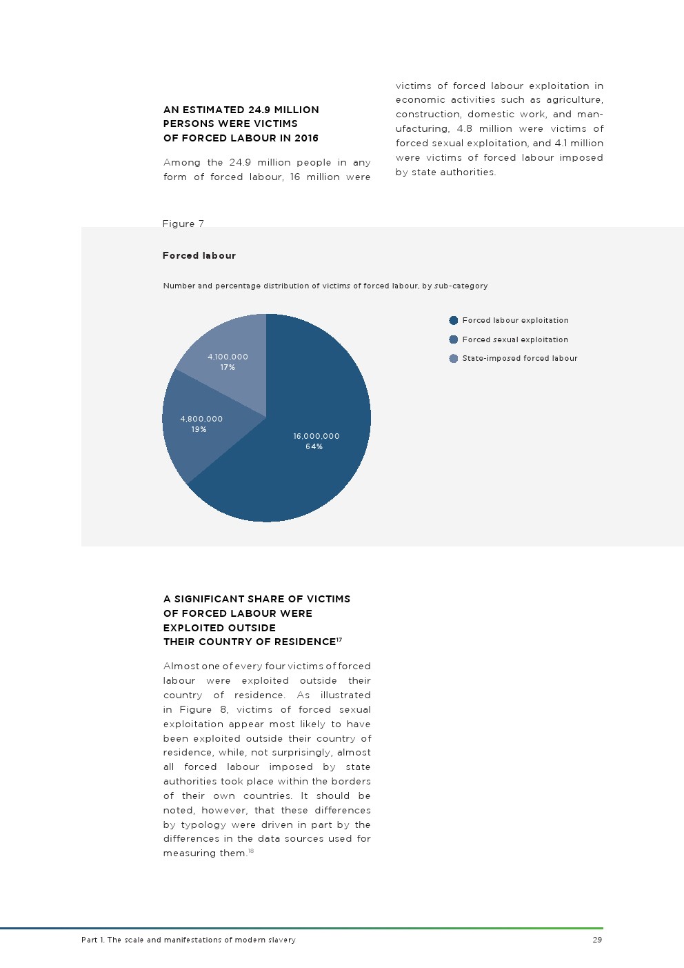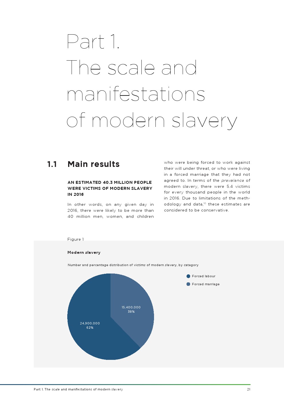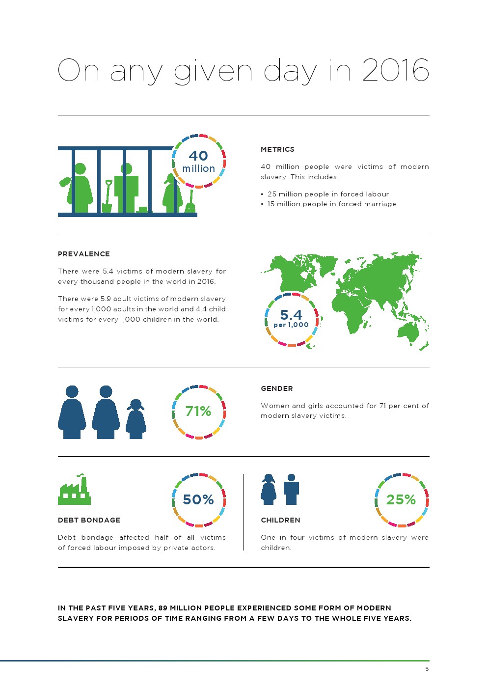 据估计,2016年有4030万人是现代奴隶制的受害者。换句话说,在2016年的任何一天都可能有超过4000万的男人、女人和儿童被迫工作,受到威胁,或者生活在他们没有同意的强迫婚姻中。
