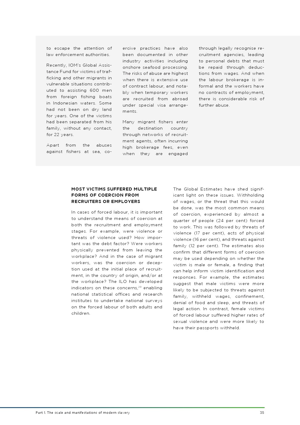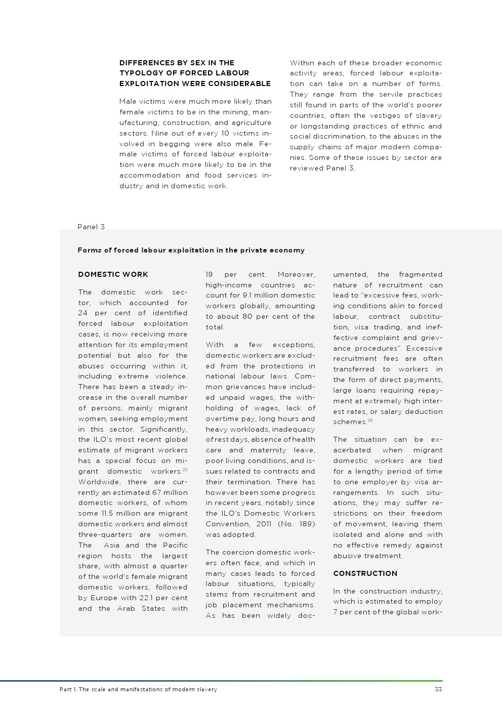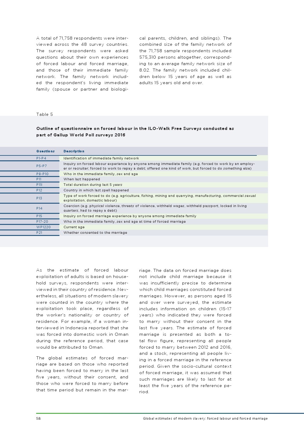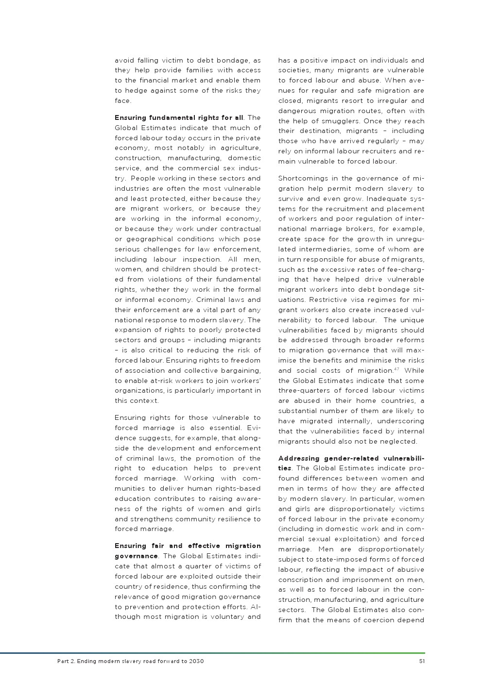 妇女和女童不成比例地受到现代奴隶制的影响,占总数的71%,即2870万人。更确切地说,妇女和女童占商业性行业强迫劳动受害者的99%,占其他行业强迫劳动受害者的58%,占国家当局强迫劳动受害者的40%,占强迫婚姻受害者的84%。