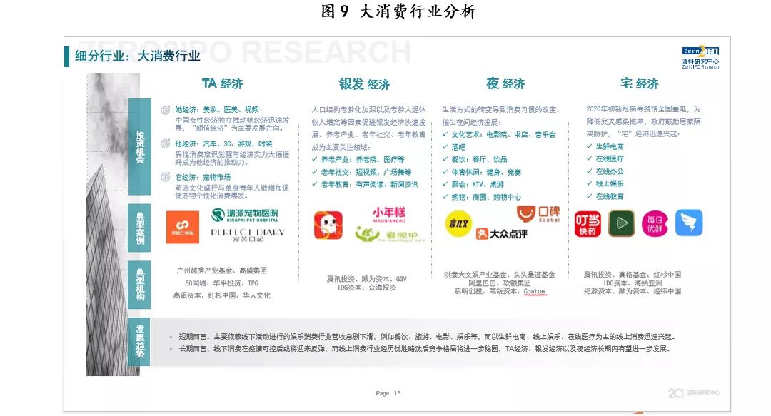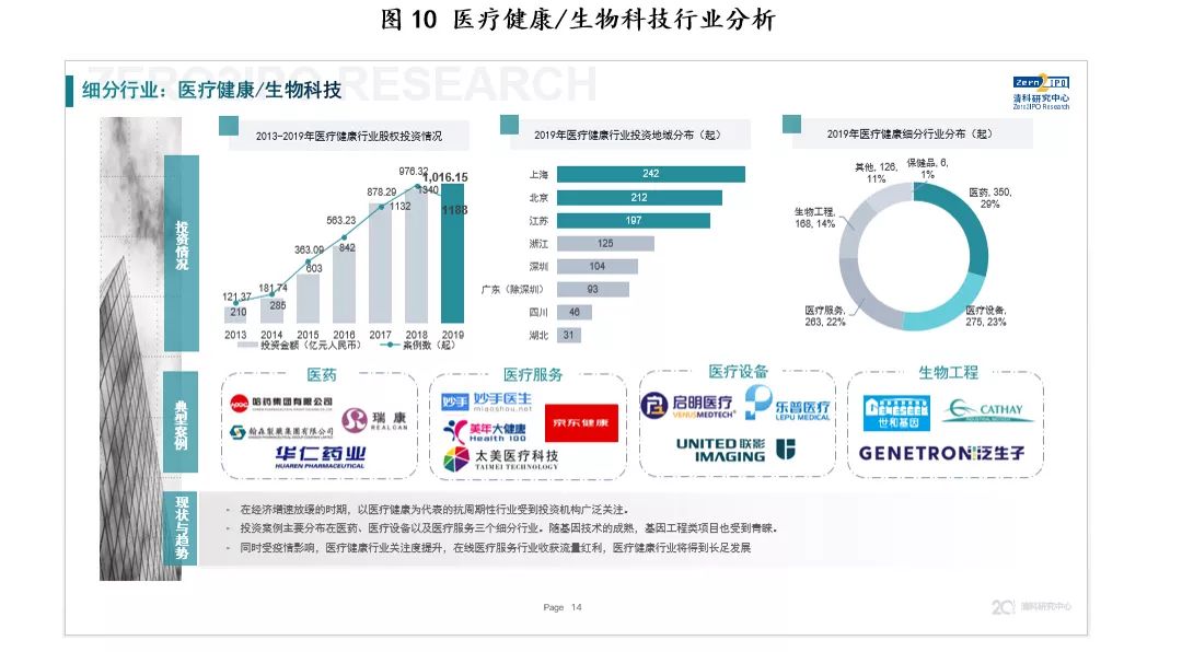 2019年底新型冠状病毒席卷全国,众多企业面临现金流紧张的经营困境。在此影响下,清科研究中心认为短期内线下消费行业,例如餐饮、旅游、住宿将受到严重打击,部分制造业也将面临产业链断裂的风险;部分线上服务行业迎来发展红利。同时,政府和社会对医疗健康的关注度提升,将继续引导长期资本投入医疗健康行业。