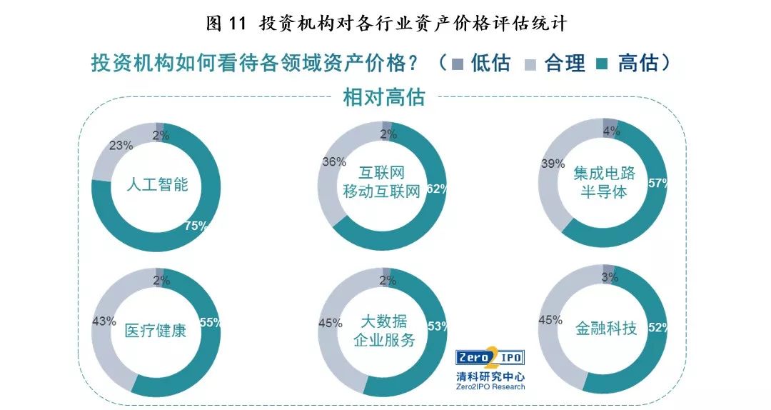 根据清科研究中心2019年底的调研显示,多数投资者认为人工智能、互联网和移动互联网、集成电路及半导体、医疗健康、大数据和企业服务、金融科技六个热门行业的企业价值依然存在高估。另外,根据清科数据统计,2019年上市的332家中国企业[1]中,上市后首日“破发”的概率达到14.8%,20日破发的概率为20.2%,其中,境外上市的中企“破发”最为严重,说明一些概念和企业在一级市场的估值被严重高估,并未得成熟资本市场的认可。