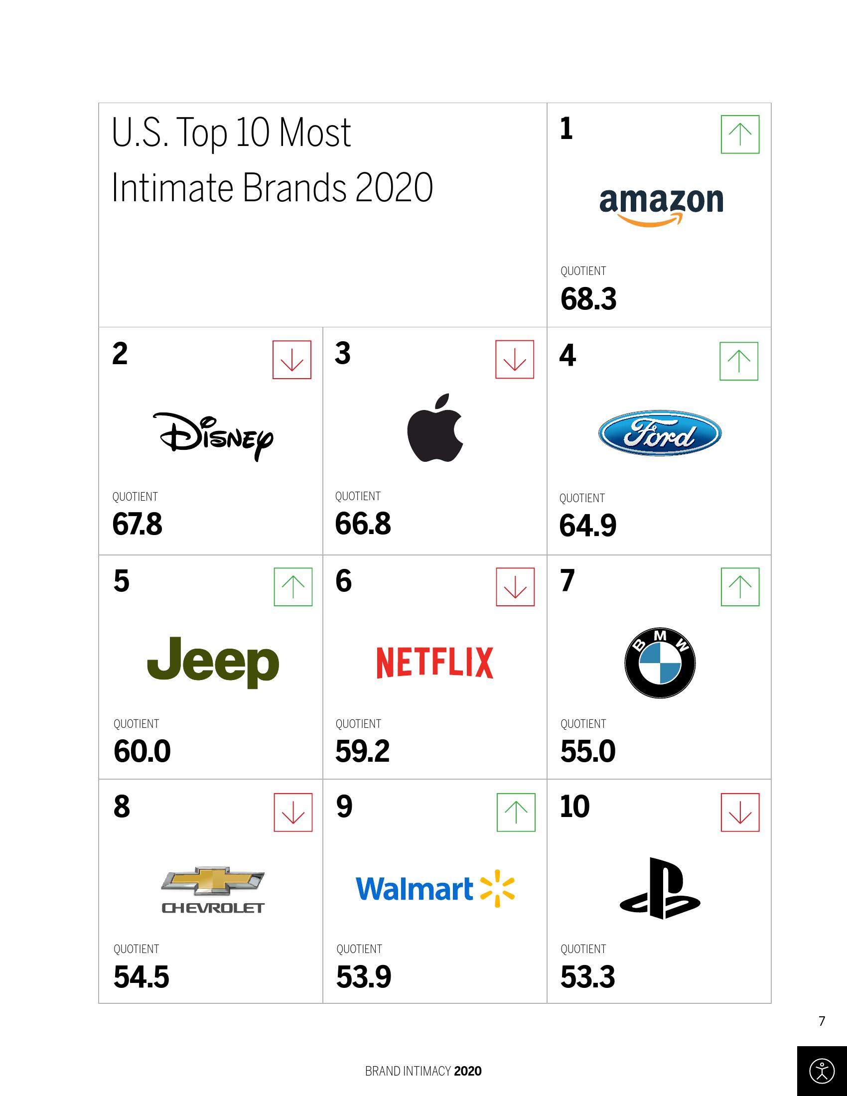 品牌研究机构MBLM发布2020年美国品牌亲密度调查。