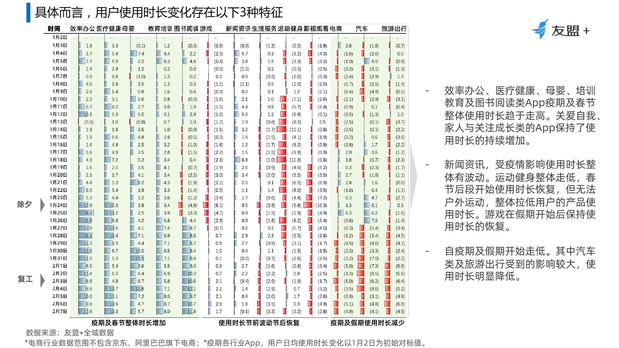 4、内容消费类,在春节期间保持了稳定的活跃度,用户使用时长也稳步提升;