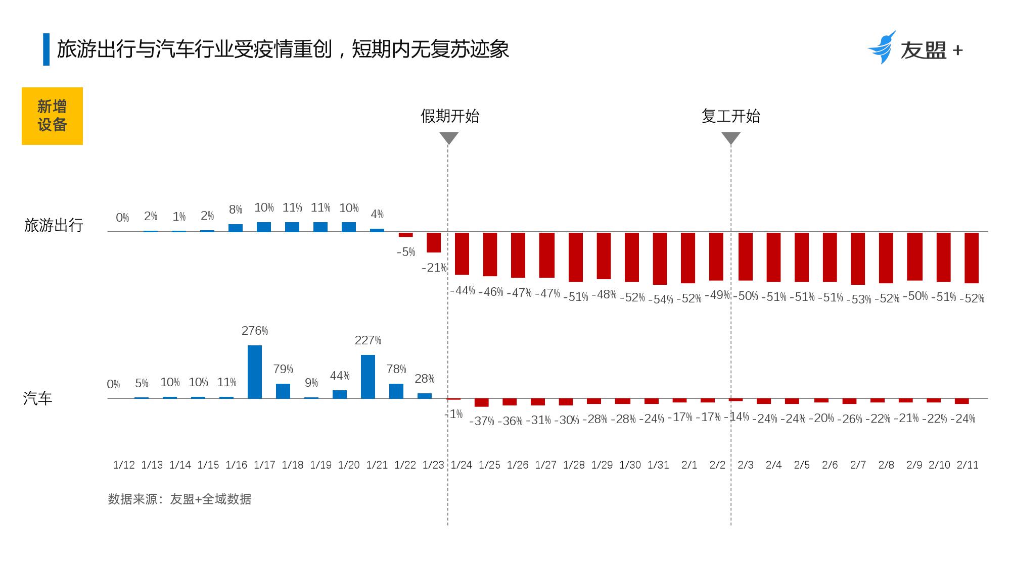 5、重线下服务的行业,如旅游出行与汽车行业受重创,短期内无复苏迹象;