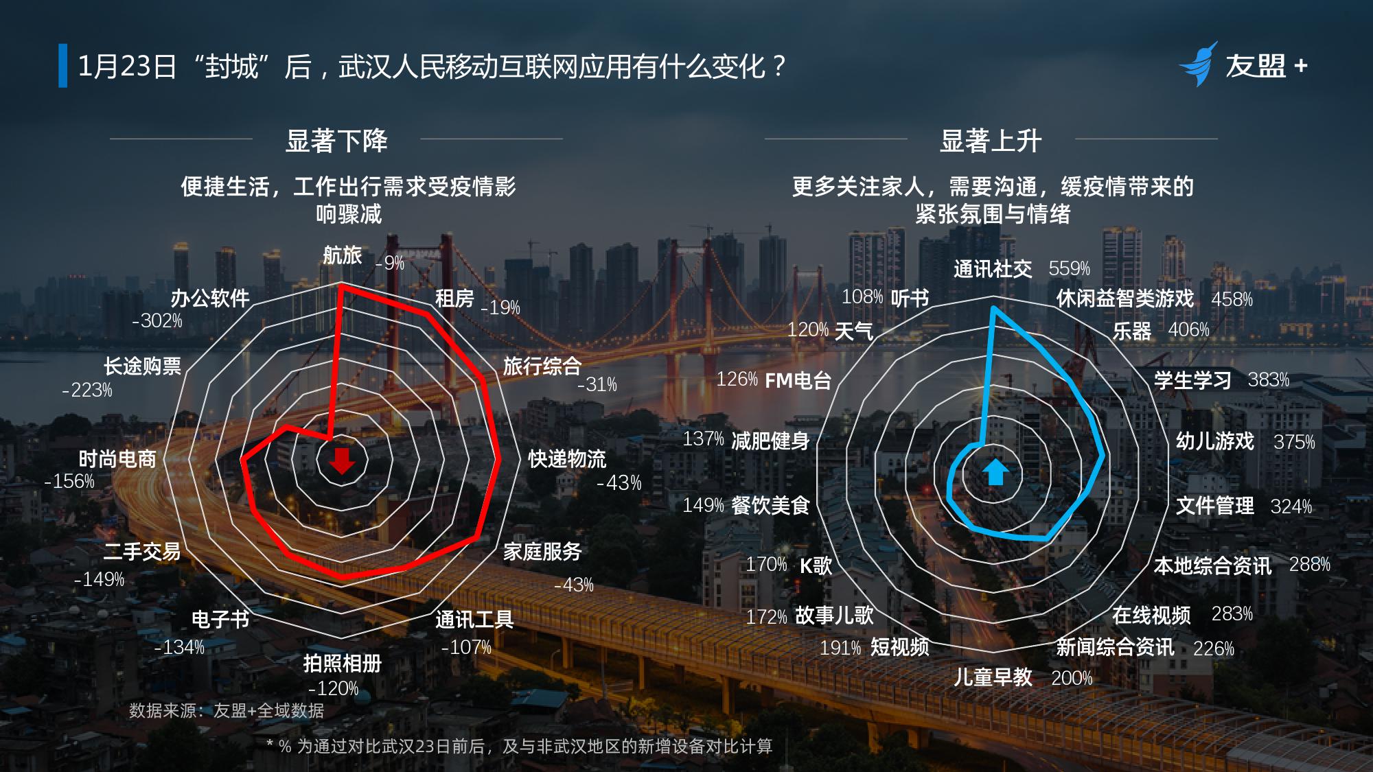 8、武汉地区的移动互联网应用显著变化,缓解疫情带来的紧张氛围与情绪类的 App新增比例显著高