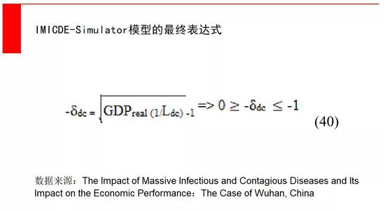 根据IMICDE-Simulator的最终测算,新型冠状病毒对中国经济造成的负面影响将是SARS的三倍。中国2020年GDP增长率的每1%的潜在增长,都将受到-0.45每单位的负面影响。(但这只是根据模型数据得出,与真实情况会因数据输入的问题产生偏差)