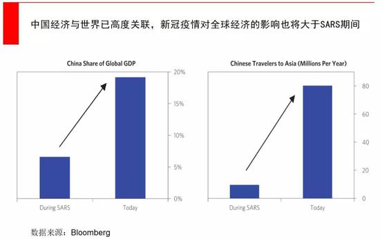 如今,中国GDP已经占到全球的16%,远高于2003年SARS爆发时的4%,中国居民外出旅游总量比2003年也增加了近10倍,这意味着新冠病毒的经济影响将更加深远。