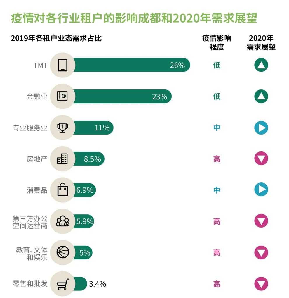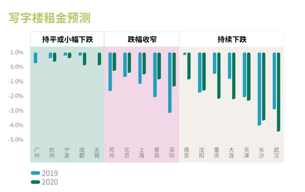 CBRE:2020大中华区房地产市场展望——写字楼篇 疫情对主力需求行业冲击较小:受疫情影响最大的行业,如酒店业、餐饮业、运输业和零售业的企业办公需求可能会受到重创。然而,我们的分析表明,疫情对主要需求驱动行业(TMT、金融业和专业服务业)的影响较小,甚至可能刺激某些科技类企业的办公租赁需求的加速增长,如在线游戏和教育、企业在线办公服务等。 2019年,TMT、金融业和专业服务业累计占中国写字楼租赁总量的60%,我们预计2020年这一占比将进一步提升。 金融业和TMT产业继续扩张:2020年,人寿保险、期货、基金和证券行业将全面取消外资持股比例的限制。对信用评级、支付等行业的外资企业也将实行国民待遇。外资金融机构的进驻或业务扩张将带来新的写字楼需求,成为驱动2020年租赁市场的新引擎,尤其将利好北上深等金融中心城市的核心商务区。 5G在基础设施完善的同时,也将提速相关行业的发展进程。ABC行业——人工智能(AI)、大数据(Big Data/Block Chain)、云计算(Cloud Computing)——将在5G环境下获得新的高速成长空间,并加快B端或C端的应用领域发展,如智能安防、智慧楼宇、无人驾驶、视频直播、网络游戏等。 市场仍然受制于供应压力:疫情的爆发将对写字楼市场的供需两端产生影响。CBRE预计,约13%的新增供应将延迟交付,故此,2020年的全年新增供应预测下调至890万平方米。核心商务区和新兴商务区都会有充裕的新增供应入市。 全年写字楼市场净吸纳量有望达到350万平方米,与2019年基本持平,但较此前预测下降了19%。预计2020年全国空置率将攀升至25%,15个城市的空置率或达历史最高水平。然而,供应减速和需求持续复苏将使得2021年后空置率回调。 去中心化趋势持续:拥有充裕的高品质供应和租金优势的新兴商务区将继续吸引租户迁入,尤以成本敏感型的行业为主。越来越多的租户亦看好新区不断改善的基础设施、商业配套以及优惠措施。 在“去中心化”趋势演进的同时,2020年核心商务区可租面积的攀升将令“中心化”重拾市场关注。以专业服务业和金融业为主的升级需求将成为吸纳核心商务区空置面积的主力。 业主必须关注空间和服务:租户对办公空间的诉求日趋多元化。多办公场景的租赁灵活性、建筑可持续性、员工福祉等非财务诉求日益受到租户重视。有经验的业主开始提供更具柔性的租赁条款、办公空间和服务。租赁策略方面,更为灵活的租期、押金支付方式、续租权限等都有助于提升项目的竞争力。 在空间和服务方面,通过提供灵活办公、精装修办公、多功能的公共会议设施、健身餐饮配套等以满足租户对租赁灵活性的需求并提升租户体验。疫情爆发后,楼宇空气净化监测设备、访客管理和物业管理品质也成为疫情爆发后租户关注的焦点。 此外,业主也应积极借助房地产科技打通从租户到员工的服务链条,从数据端切入完善服务内容。 租金仍处下行通道,但跌幅收窄:若疫情整体能在2-3个月内得到控制,其对大多数市场写字楼租金的影响将是有限的。尽管北京、上海和深圳将继续保持充足的供应,但基于中美贸易争端的缓解、金融和科技行业需求的复苏以及专业服务业的成熟发展,租金下跌的势头已经略有缓解。二线城市供过于求的局面在2020年改善的可能性较低,预计租金将同比下降1.8%以上。 逐渐增加的不确定性致使租赁活动减弱:全球经济风险不断升级,持续抑制着香港甲级写字楼市场的租赁需求。中国内地企业的租赁需求在2019年同比下降36%,共享工作空间的需求全年同比下降63%。 留在中央商务区的高昂成本以及非核心分区市场的新供应继续推动着租户在2019年迁离核心区。租户共将731,000平方英尺的租用面积迁离核心分区市场,是自2015年以来第二多的一年。 疲弱的租赁需求促致市场上的可租用空间上升。核心分区市场的空置率全都攀升,其中中环的空置率从2018年底的1.3%升至2019年底的3.4%,是自2014年以来最高的年末值。因此,该分区市场的租金同比下降了5.9%,是自2012年以来的年度最大跌幅。 成本控制为主导:成本控制将继续成为2020年的关键主题。刚竣工及具有成本效益的非核心区项目将继续受到追捧。一些较大的租户可能会在现时下调的情况下进行整合。 空置率的上升和市场气氛的疲弱将促使2020年甲级写字楼的租金进一步软化。其中,由于空置率正在攀升,而租户又避免支付过高租金,中央商务区的压力最大。港岛东将继续受益于低空置率,以及来自中环和湾仔及铜锣湾的搬迁需求。东九龙也是迁离核心区的理想地点,但该分区市场的空置率较高,致使在短期内租金难以上升。 续租成主要租赁活动:2020年台湾经济可望因本地需求增强而维持温和成长态势,预料将使整体劳动市场受惠。今年来自中小型企业的询问可望维持高档,然而市场上持续减少的空置单位将使企业租户难以觅得符合需求的搬迁地点,并进一步影响台北写字楼市场的去化速度。与去年相比,预测2020年台北甲级市场净吸纳量将下降至11,090坪(3万7千平方米),整体租赁活动将以续约为大宗,搬迁案例所占比例将下滑。 低空置率将影响搬迁活动:尽管2020年台北甲级写字楼去化速度将减缓,在租赁市场上没有任何新供给释出的助益下,预测甲级写字楼平均空置率将于年底前降至2.6%,为2001年以来最低水准。不少承租户将被迫留在现址,并可能在