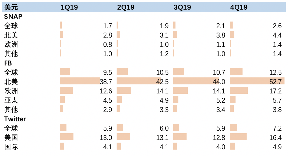 FB的人均收入贡献最高,是Twitter的1.7倍,Snap的4.8倍