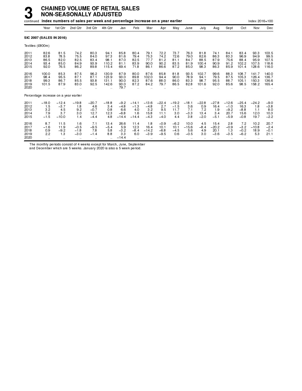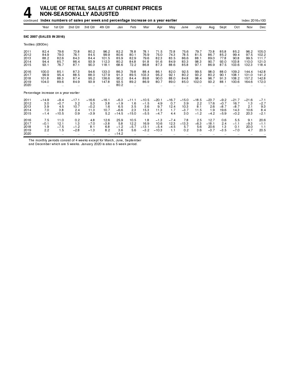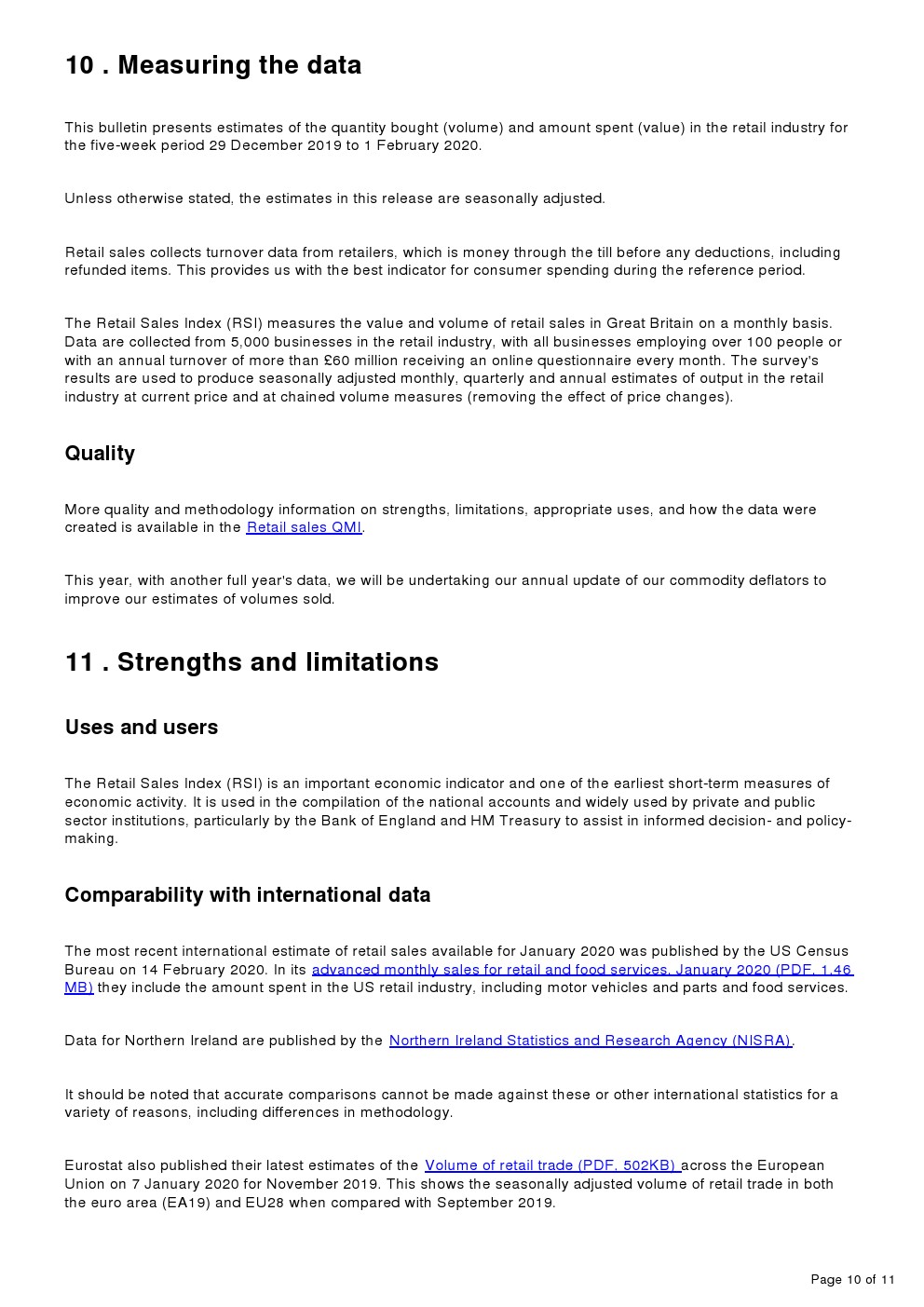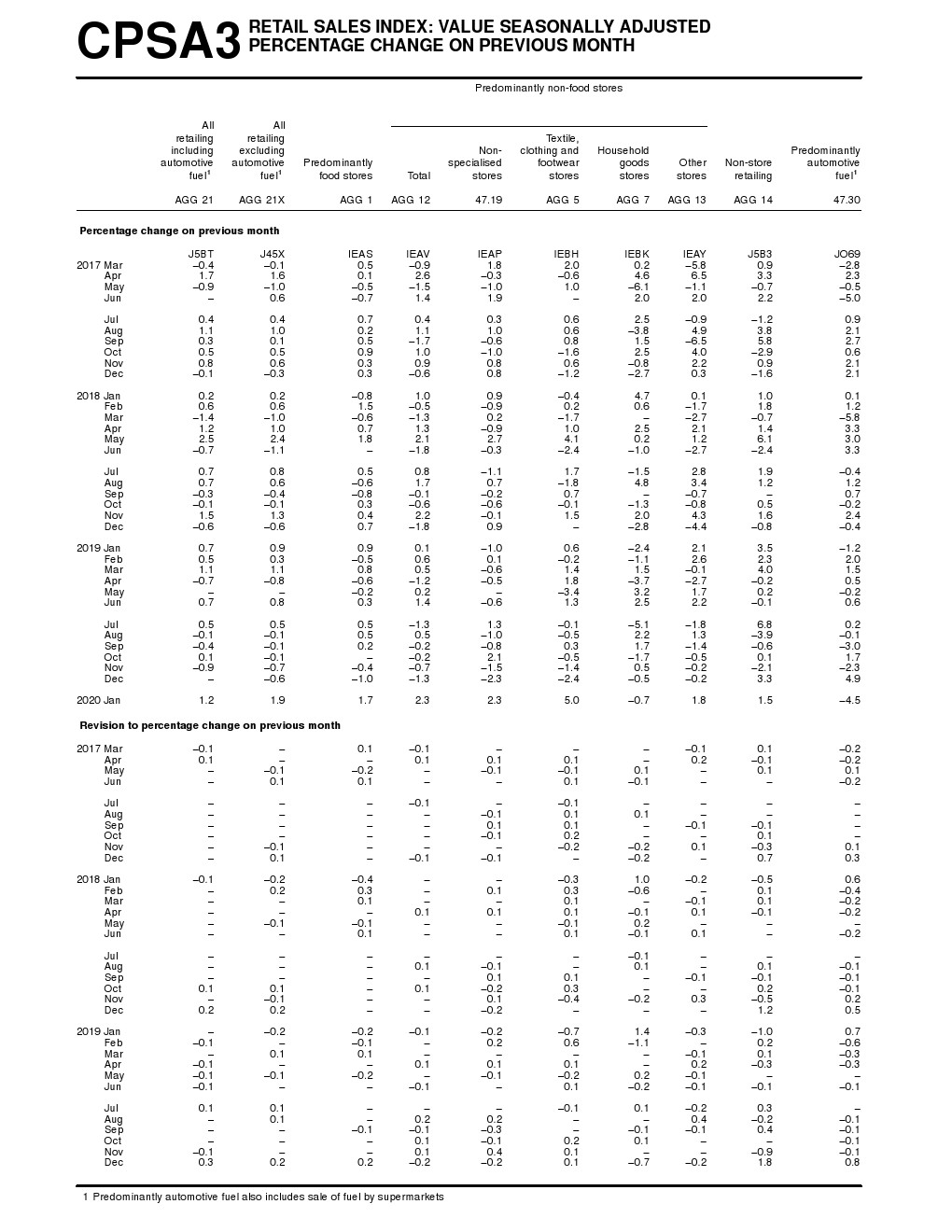英国国家统计局发布了“2020年首个零售报告”。截至2020年1月的三个月里,零售业销量与前三个月比下降了0.8%,所有行业都出现了下降。2020年1月零售销售额增长0.9%,从前两个月的下降中恢复过来;增长的主要动力是食品店(1.7%)和非食品店(1.3%)。与2019年12月相比,2020年1月燃油销售额下降5.7%,这与12月至1月期间燃油价格上涨有关。2020年1月,在线销售额占所有零售业销售额的19.0%,低于2019年12月的19.3%。