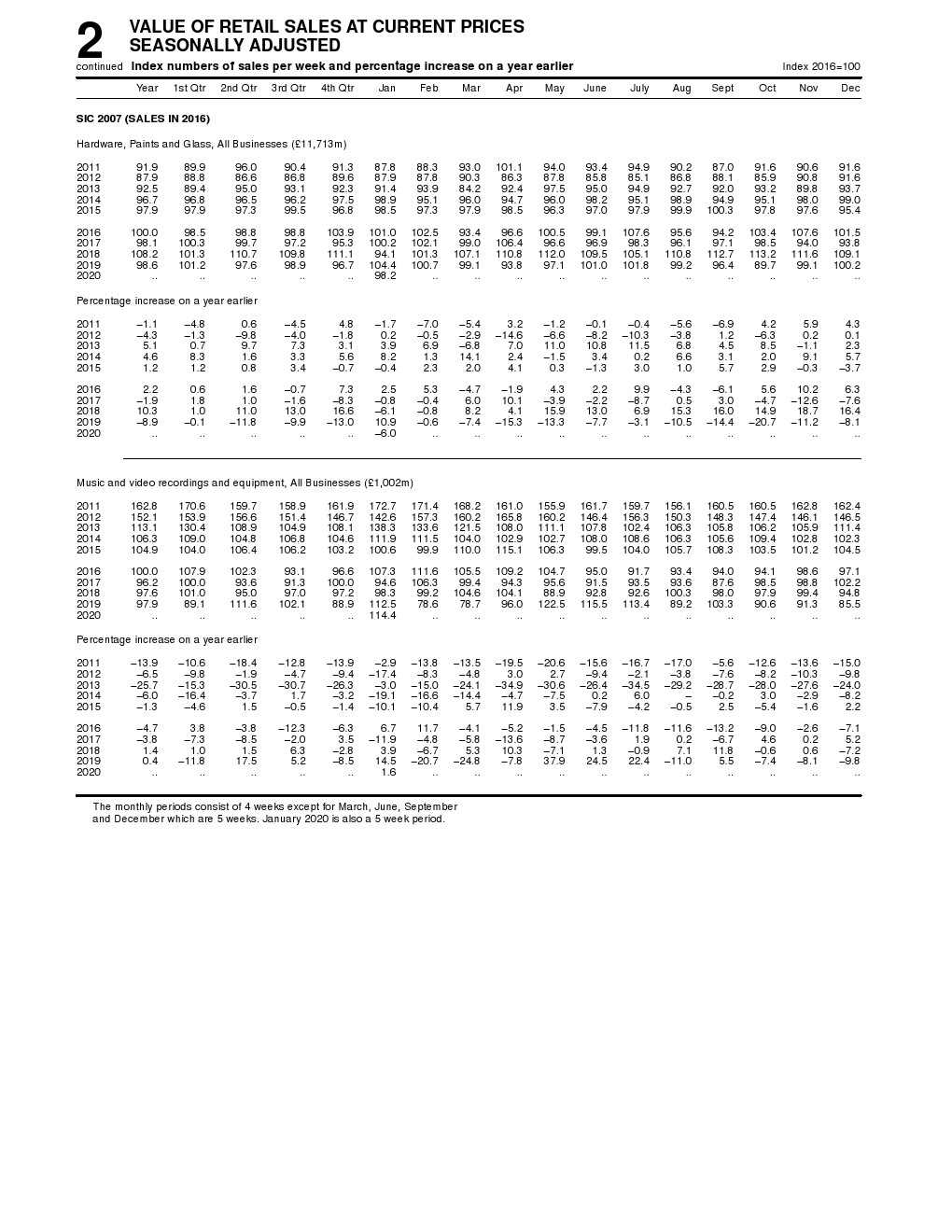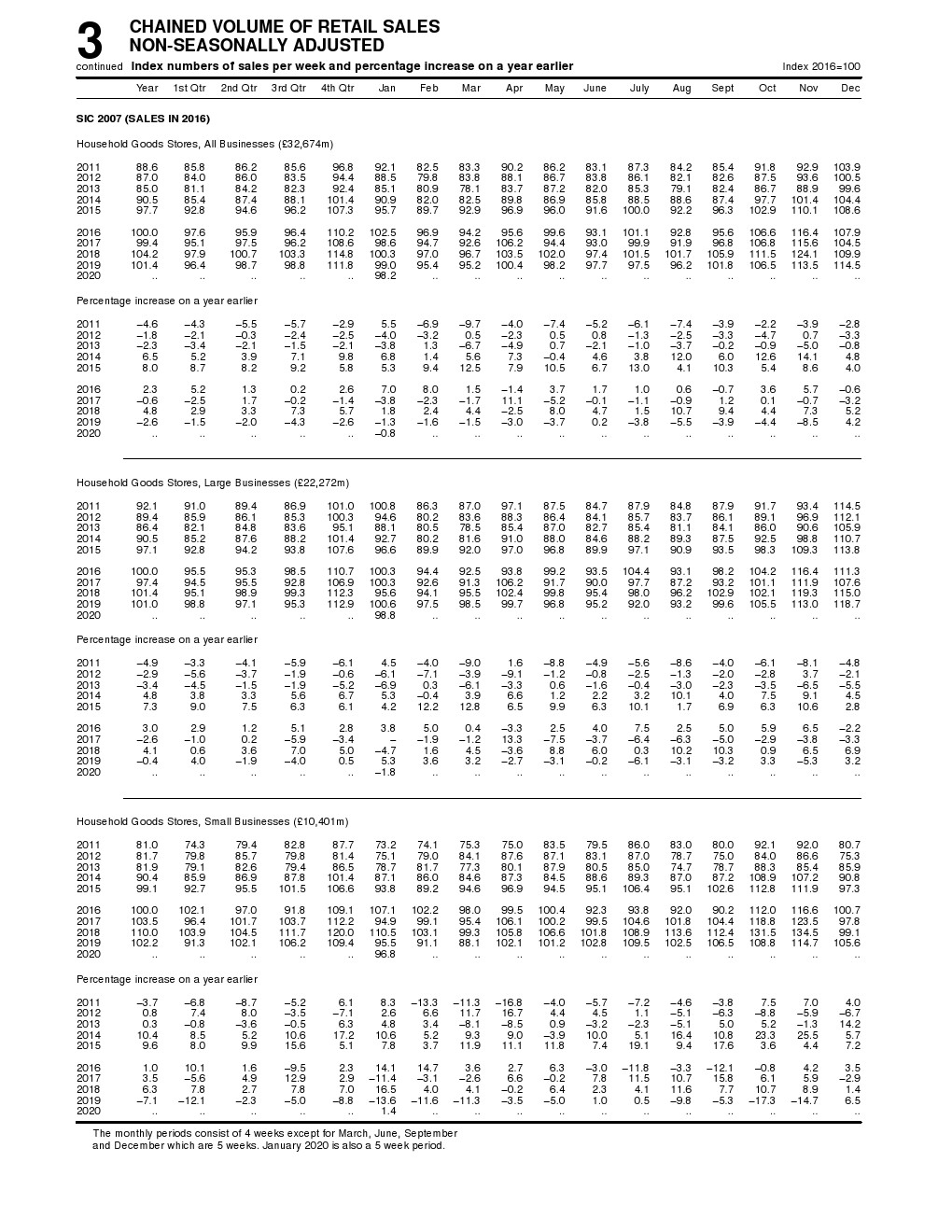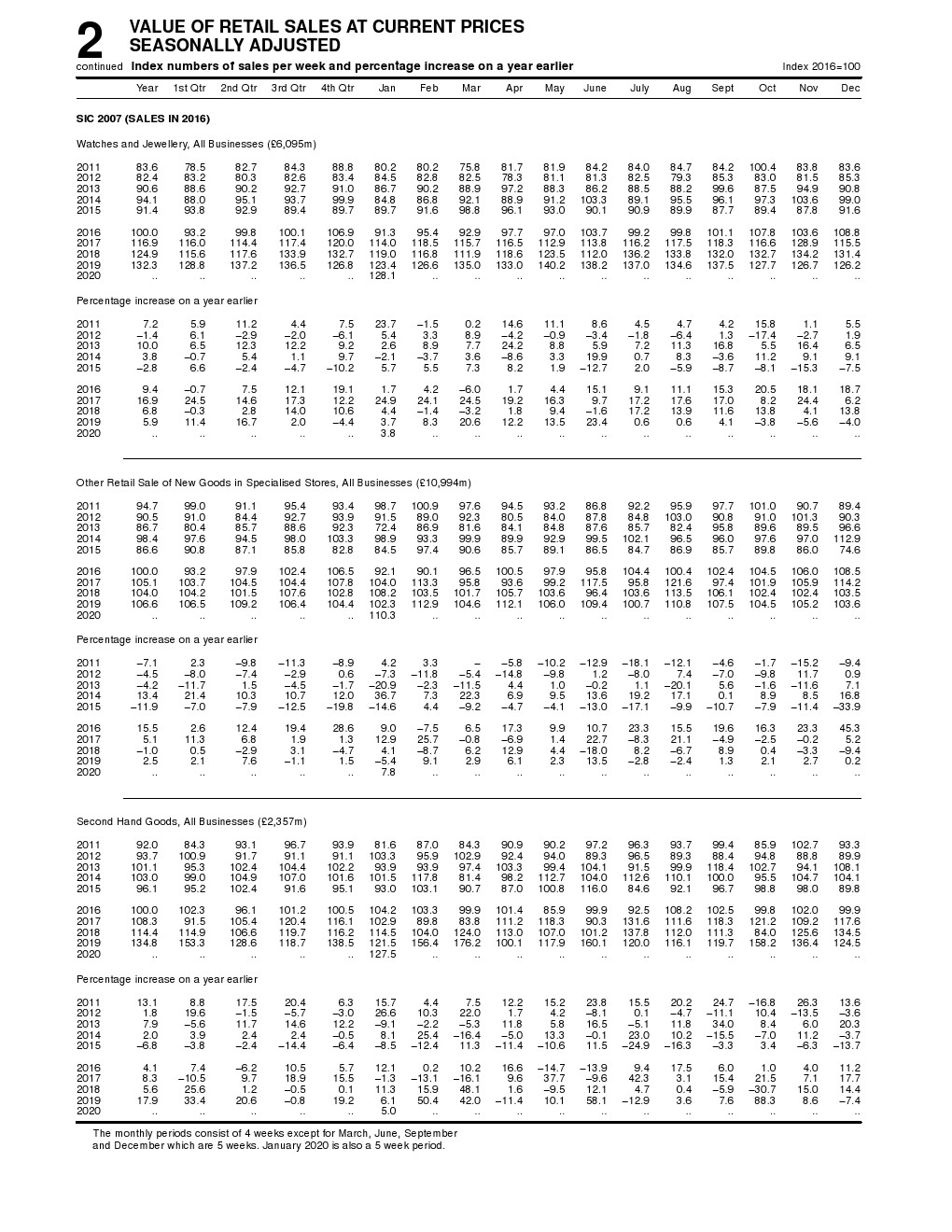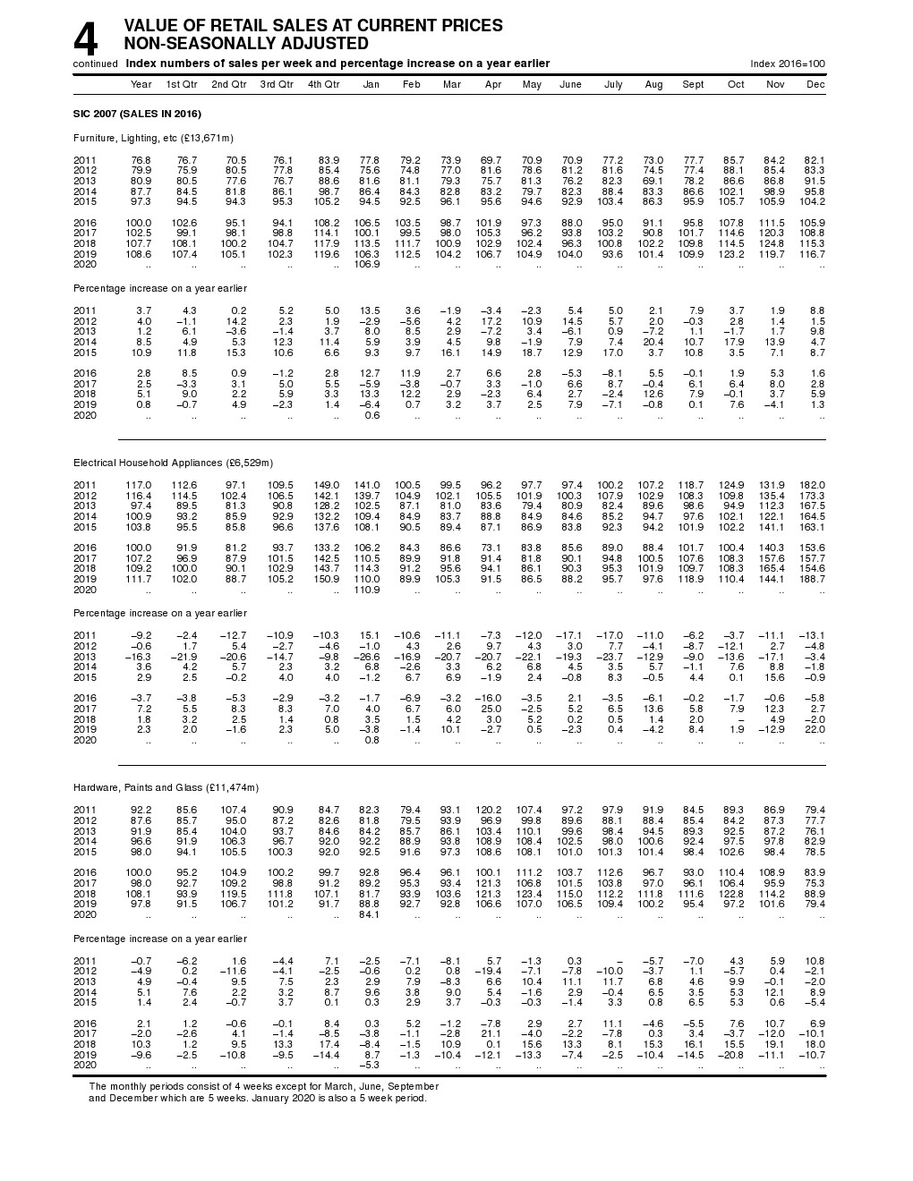 与2019年12月相比,2020年1月在线支出增长0.9%,其中食品店增长5.7%,非商店零售增长5.1%。非食品类商店出现6.8%的跌幅,很大程度上是由于百货公司(-4.8%)和家居用品商店(-26.7%)的大幅下降。这些商店在前一个月经历了强劲的增长,百货商店增长了16.9%,家居用品商店增长了19.6%。