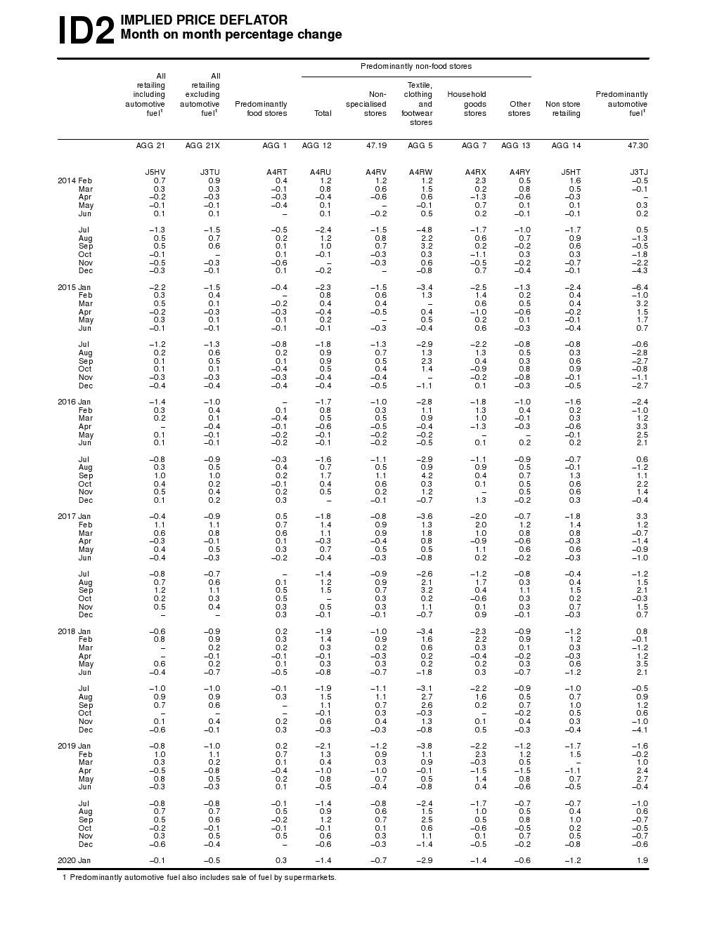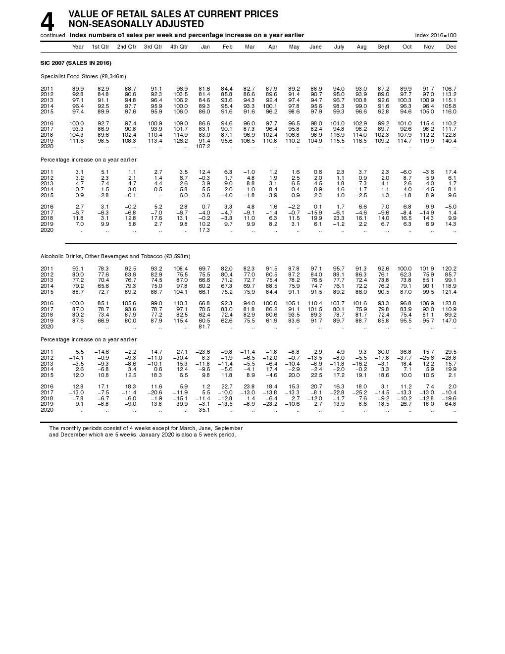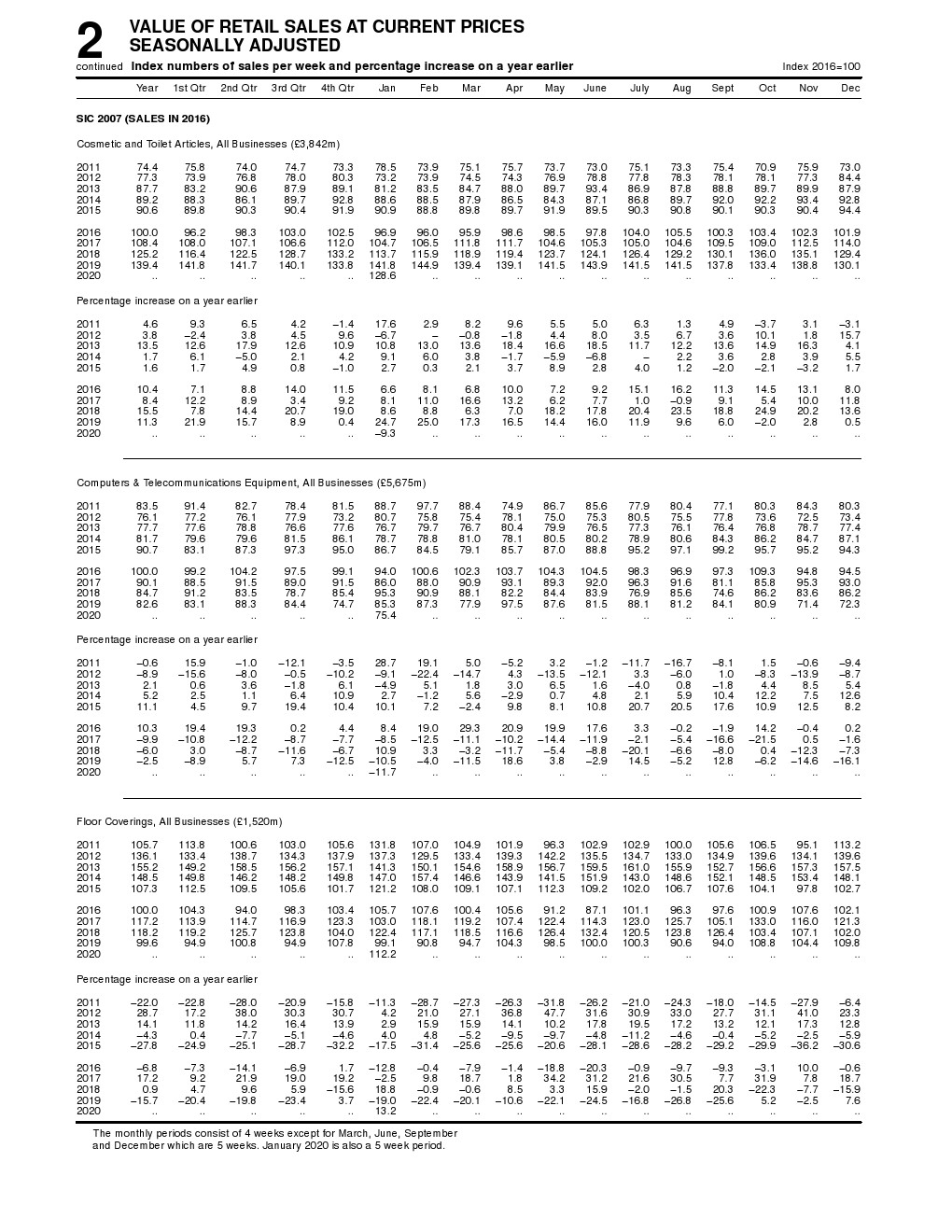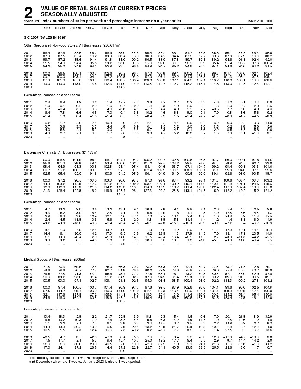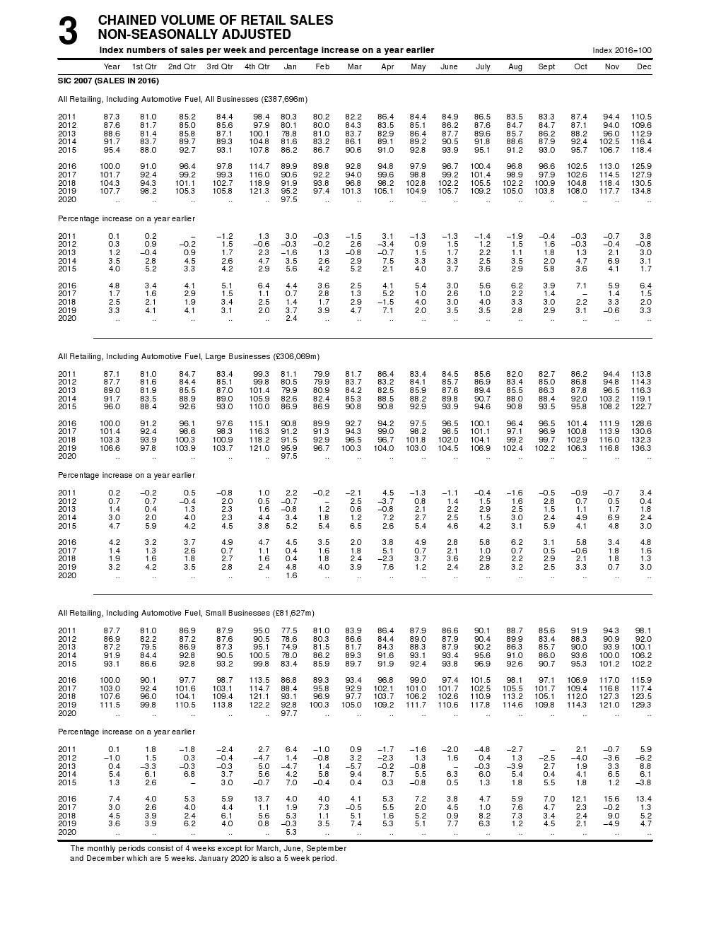 与2019年12月相比,2020年1月在线支出增长0.9%,其中食品店增长5.7%,非商店零售增长5.1%。非食品类商店出现6.8%的跌幅,很大程度上是由于百货公司(-4.8%)和家居用品商店(-26.7%)的大幅下降。这些商店在前一个月经历了强劲的增长,百货商店增长了16.9%,家居用品商店增长了19.6%。