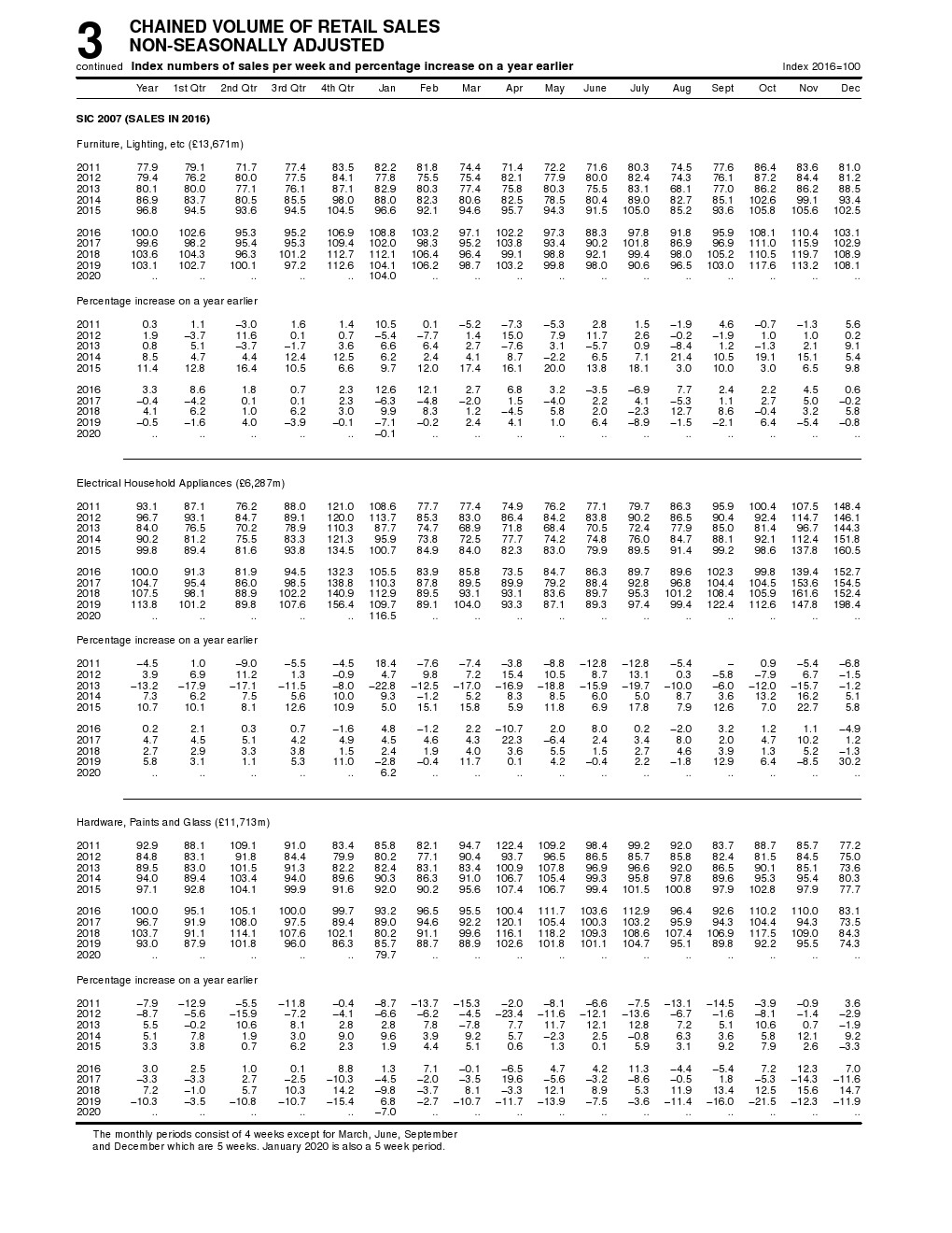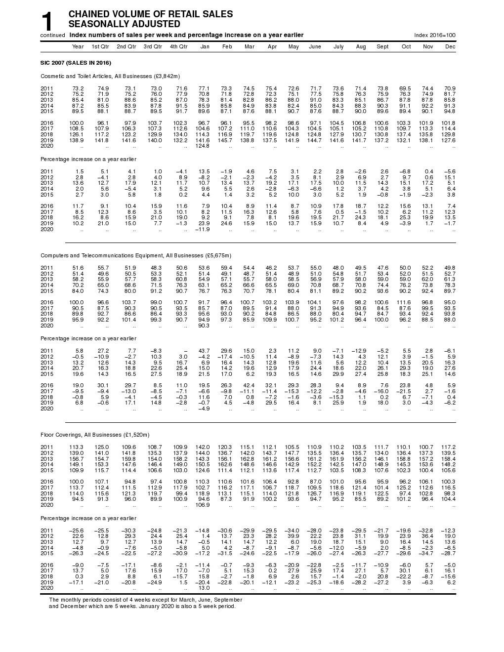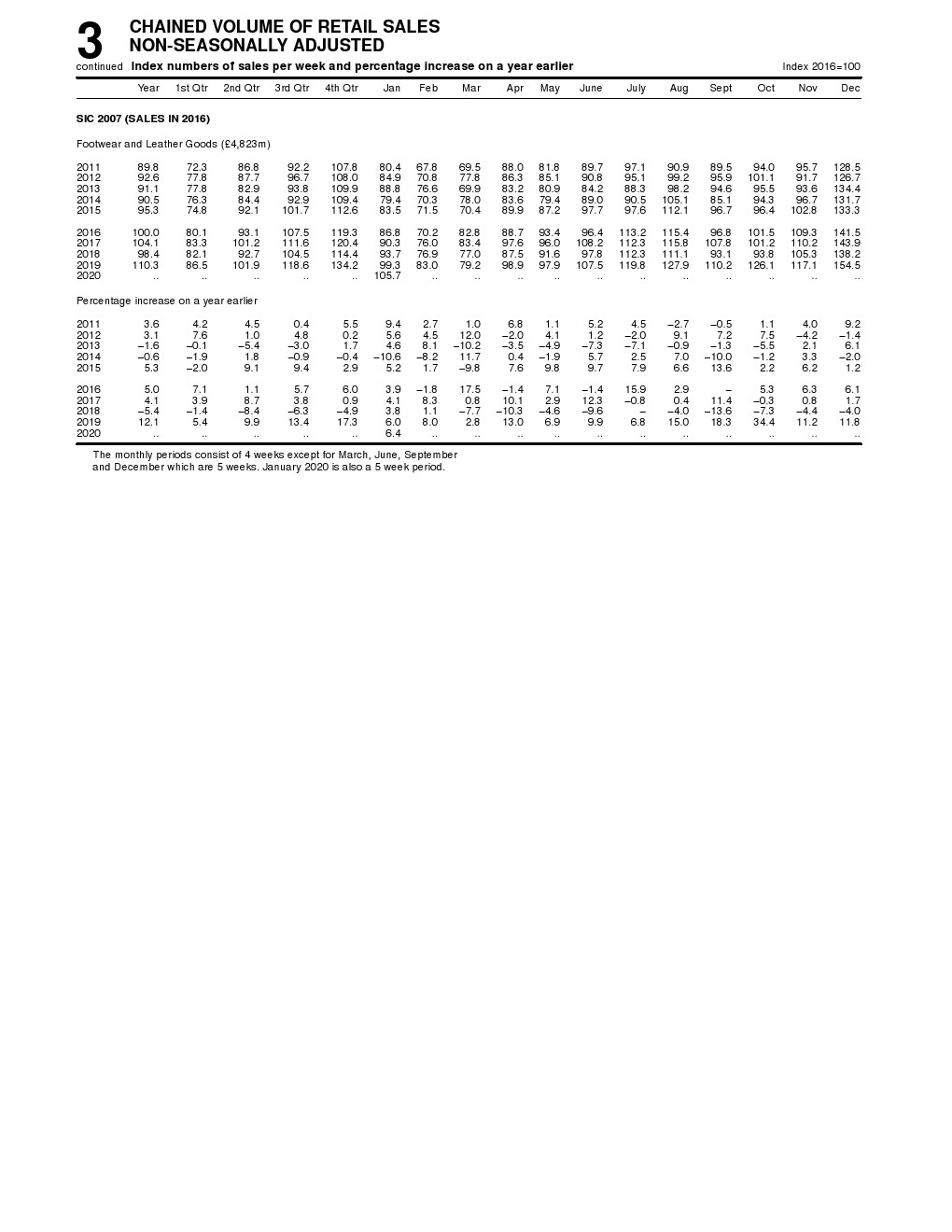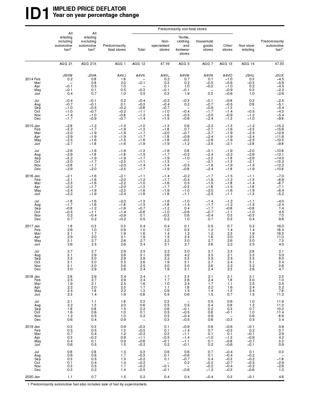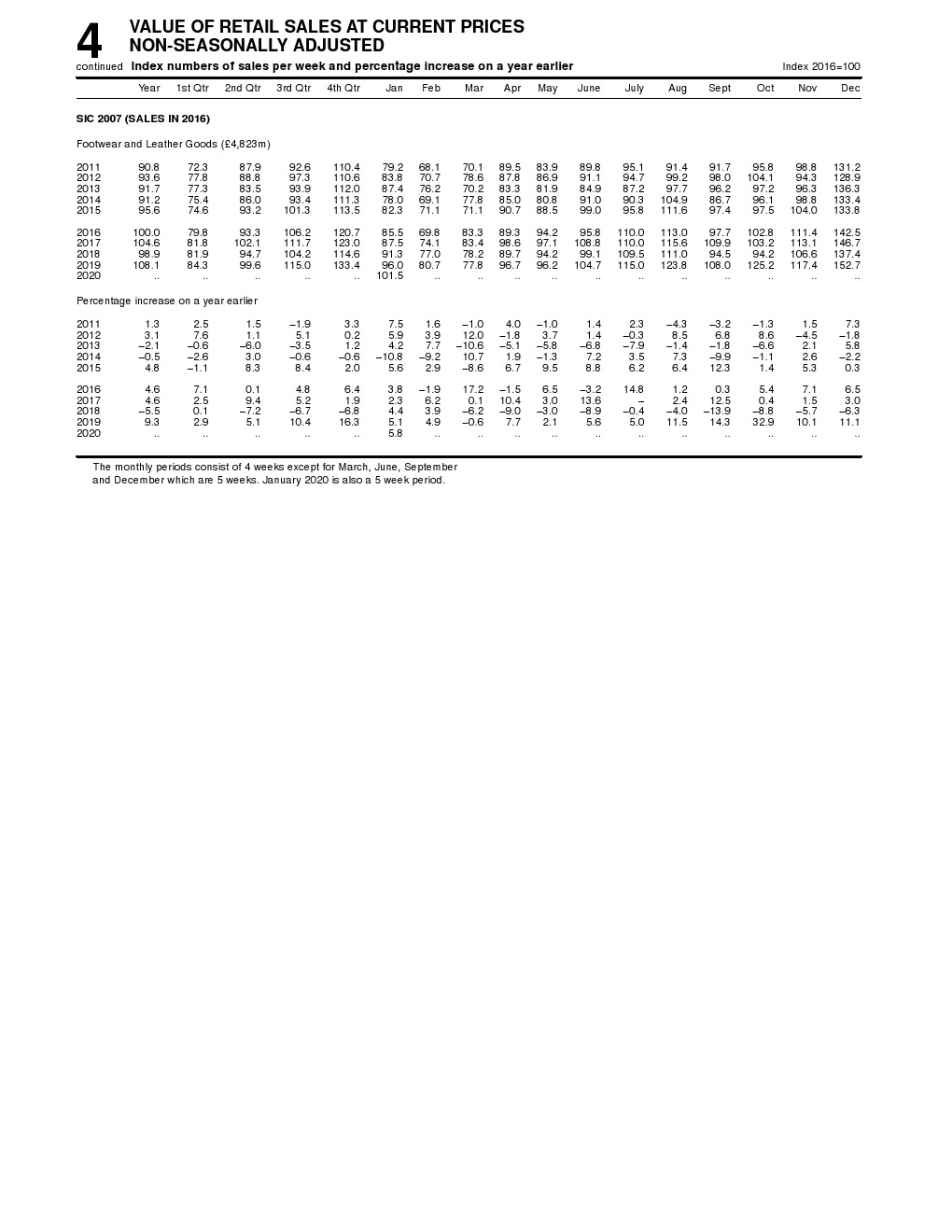 与2019年12月相比,2020年1月在线支出增长0.9%,其中食品店增长5.7%,非商店零售增长5.1%。非食品类商店出现6.8%的跌幅,很大程度上是由于百货公司(-4.8%)和家居用品商店(-26.7%)的大幅下降。这些商店在前一个月经历了强劲的增长,百货商店增长了16.9%,家居用品商店增长了19.6%。