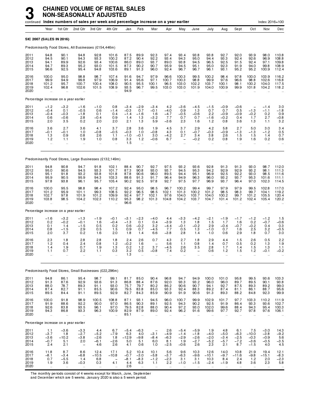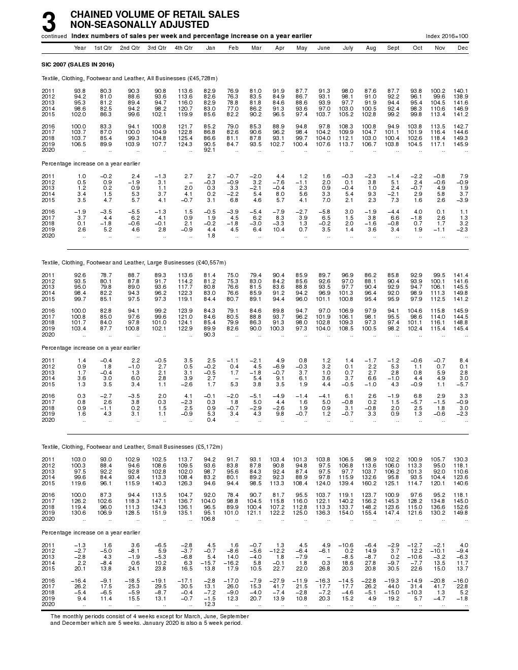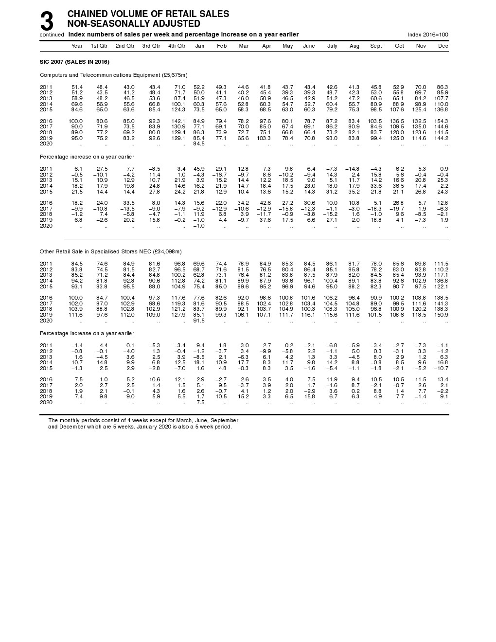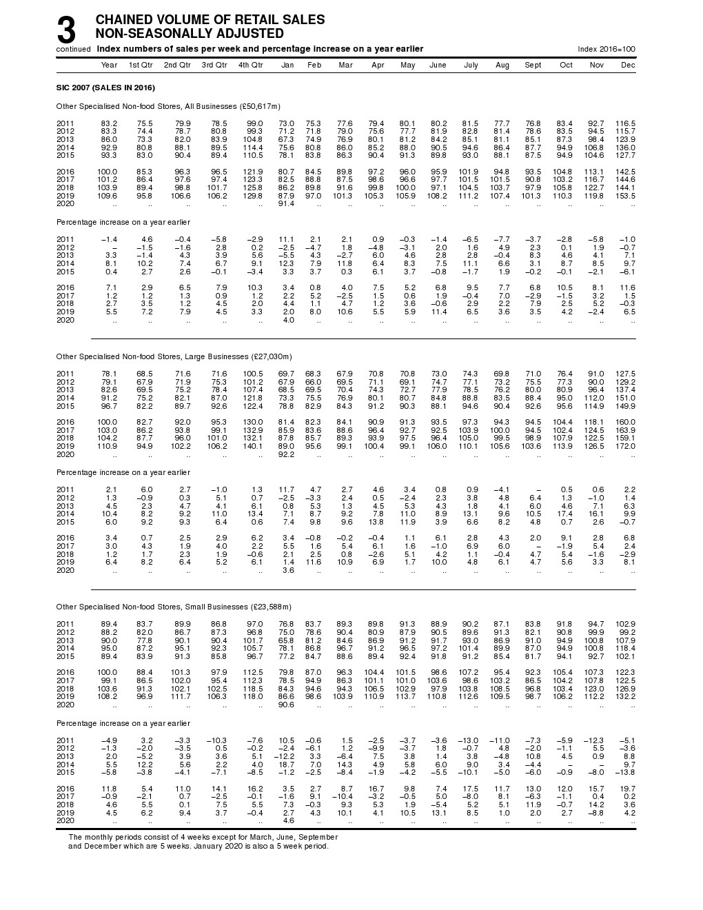 与2019年12月相比,2020年1月在线支出增长0.9%,其中食品店增长5.7%,非商店零售增长5.1%。非食品类商店出现6.8%的跌幅,很大程度上是由于百货公司(-4.8%)和家居用品商店(-26.7%)的大幅下降。这些商店在前一个月经历了强劲的增长,百货商店增长了16.9%,家居用品商店增长了19.6%。