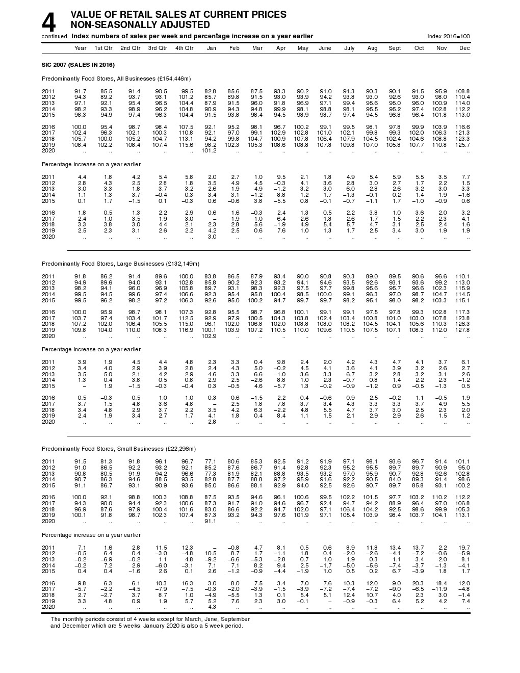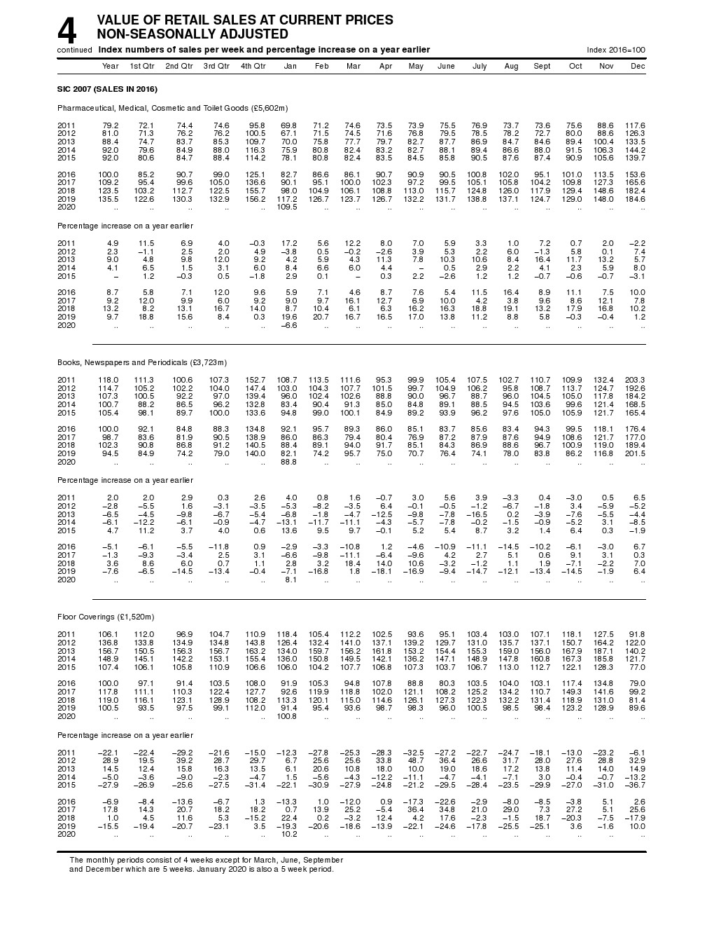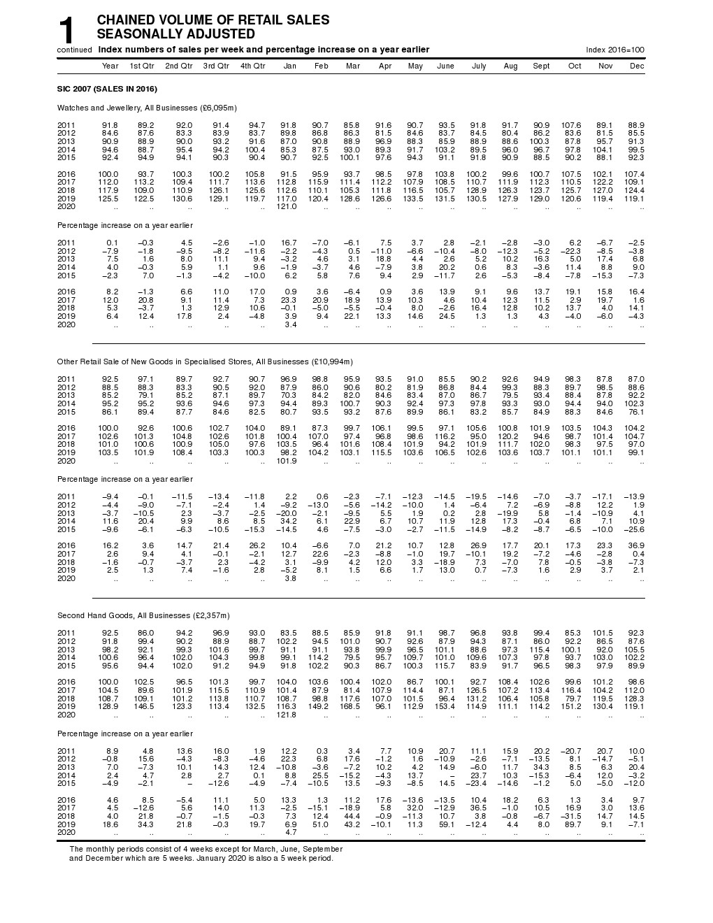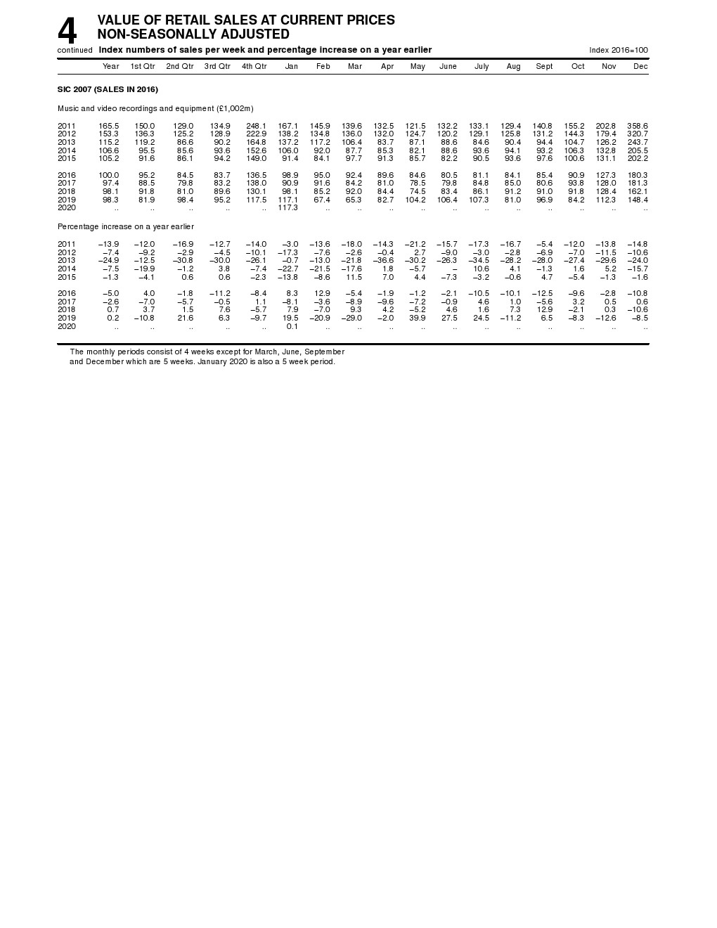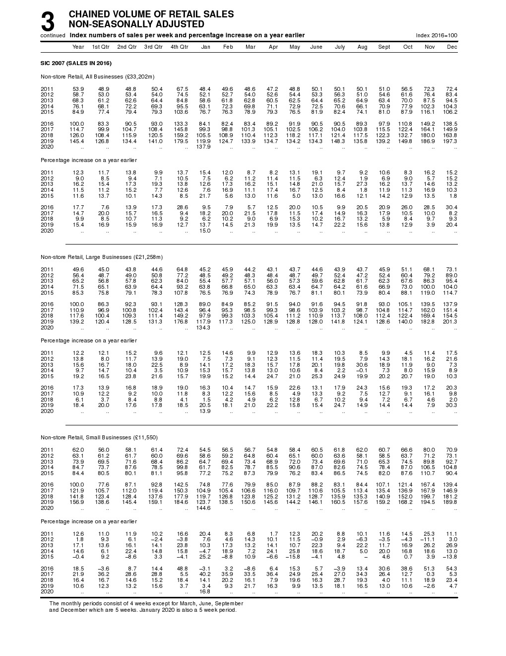 与2019年12月相比,2020年1月在线支出增长0.9%,其中食品店增长5.7%,非商店零售增长5.1%。非食品类商店出现6.8%的跌幅,很大程度上是由于百货公司(-4.8%)和家居用品商店(-26.7%)的大幅下降。这些商店在前一个月经历了强劲的增长,百货商店增长了16.9%,家居用品商店增长了19.6%。